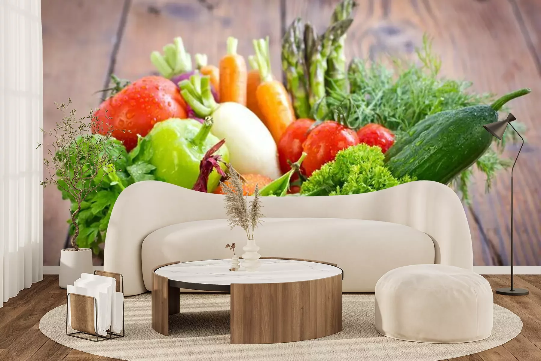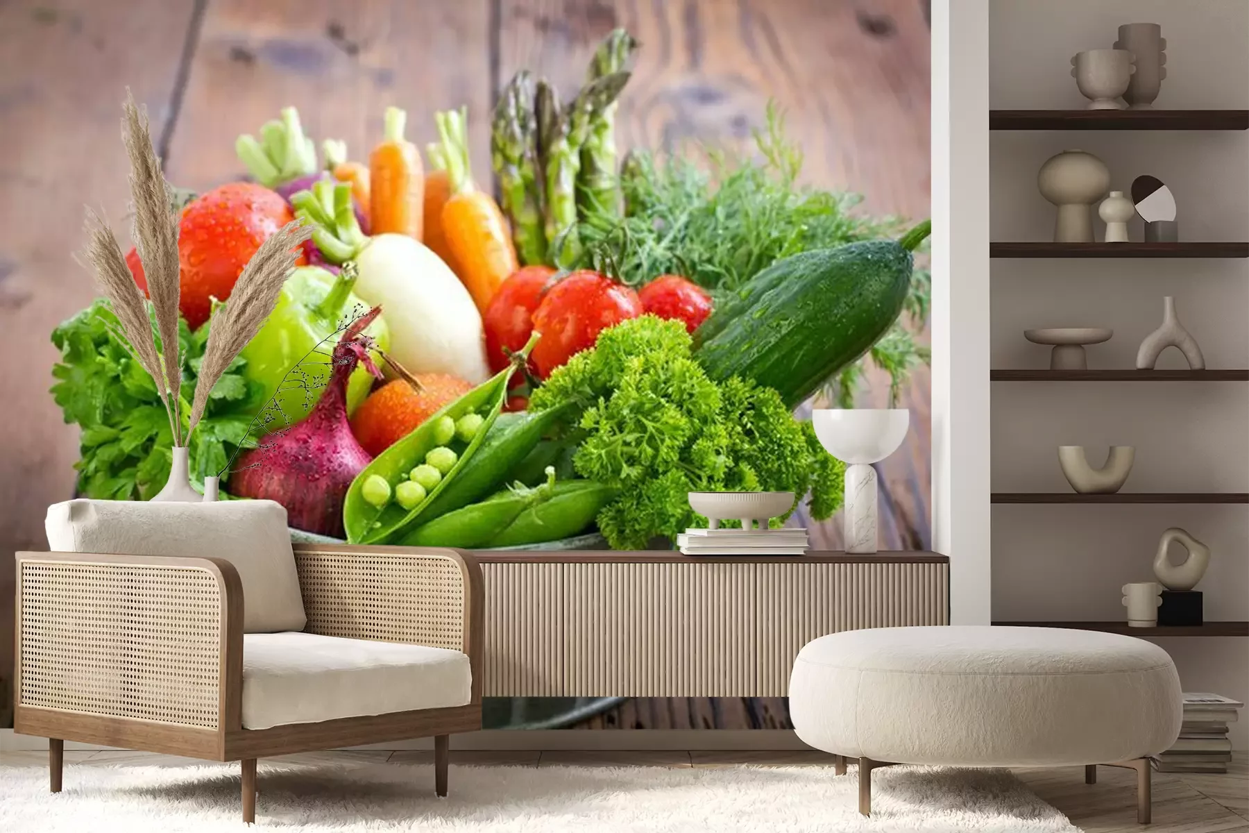 Het materiaal Premium is een glad vinyl op vlies, dat bestand is tegen uitrekken en vervorming. Het is dampdoorlatend – de muren kunnen vrij ademen – waardoor het geschikt is voor gebruik in de keuken en badkamer. Bij vervuiling kan het materiaal worden afgenomen met een vochtige doek. De maximale breedte van één baan bedraagt 95 of 105 cm, afhankelijk van de beschikbaarheid. Montage vindt plaats met de rand-aan-rand methode, wat een esthetisch resultaat zonder zichtbare naden oplevert. Omdat de lijm rechtstreeks op de muur wordt aangebracht, verloopt de installatie van het fotobehang snel en eenvoudig.