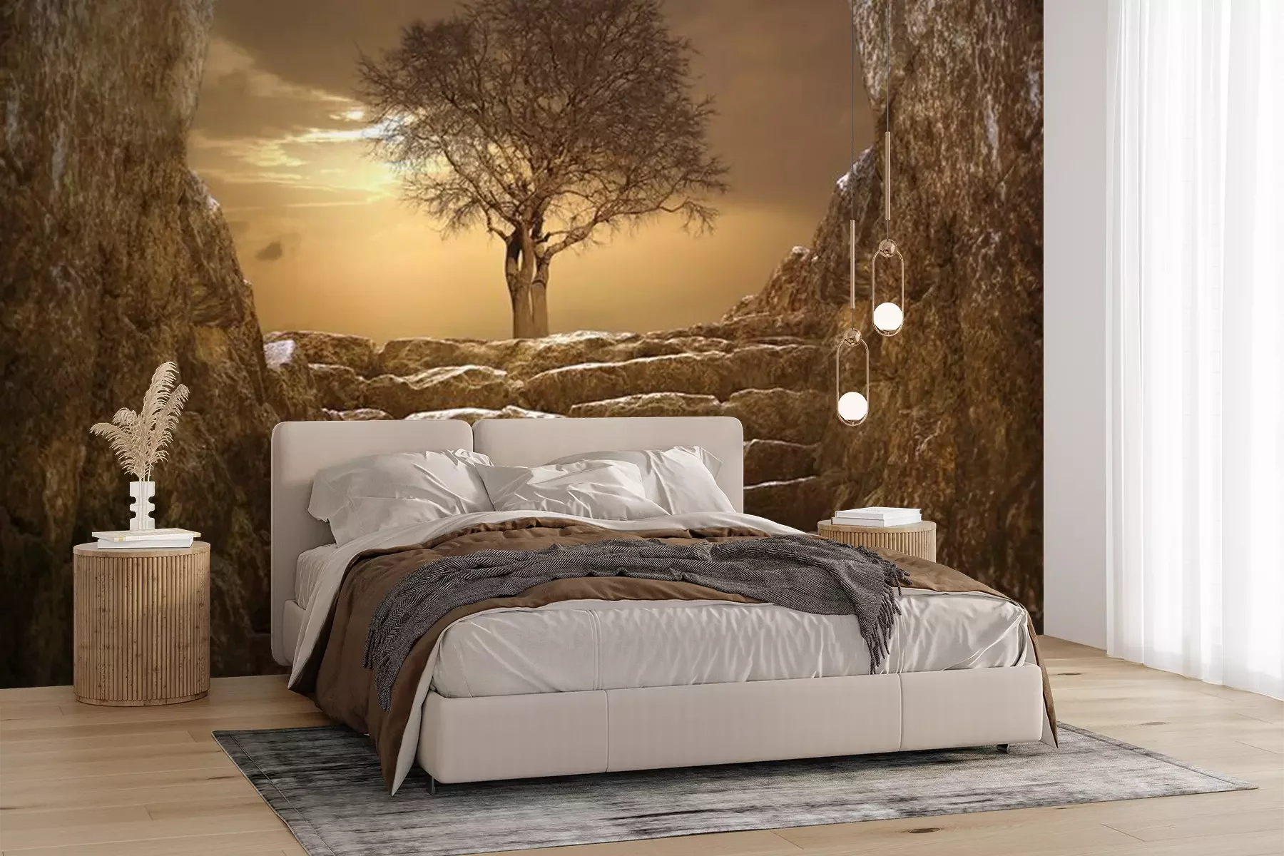 Het materiaal Premium+ is een gestructureerd vinyl op vlies met een gewicht van 255 g/m², dat kleine oneffenheden in de muur effectief camoufleert. De subtiele structuur van fijn zand geeft het oppervlak een exclusieve uitstraling, terwijl de halfmatte afwerking de diepte van de kleuren benadrukt. Het materiaal is dampdoorlatend, waardoor het ook in de keuken en badkamer kan worden gebruikt. De maximale breedte van één baan bedraagt 100 cm – bij grotere afmetingen wordt het fotobehang in meerdere gelijke banen verdeeld. De lijm wordt direct op de muur aangebracht en het behang wordt rand-aan-rand geplakt, wat zorgt voor een esthetisch resultaat zonder zichtbare naden. Het oppervlak kan gemakkelijk worden schoongemaakt door het voorzichtig af te nemen met een vochtige doek.