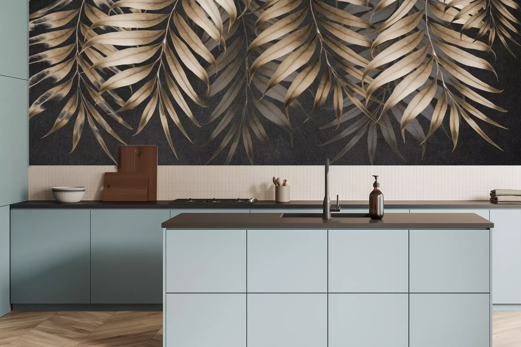 Het materiaal Premium is een glad vinyl op vlies, dat bestand is tegen uitrekken en vervorming. Het is dampdoorlatend – de muren kunnen vrij ademen – waardoor het geschikt is voor gebruik in de keuken en badkamer. Bij vervuiling kan het materiaal worden afgenomen met een vochtige doek. De maximale breedte van één baan bedraagt 95 of 105 cm, afhankelijk van de beschikbaarheid. Montage vindt plaats met de rand-aan-rand methode, wat een esthetisch resultaat zonder zichtbare naden oplevert. Omdat de lijm rechtstreeks op de muur wordt aangebracht, verloopt de installatie van het fotobehang snel en eenvoudig.