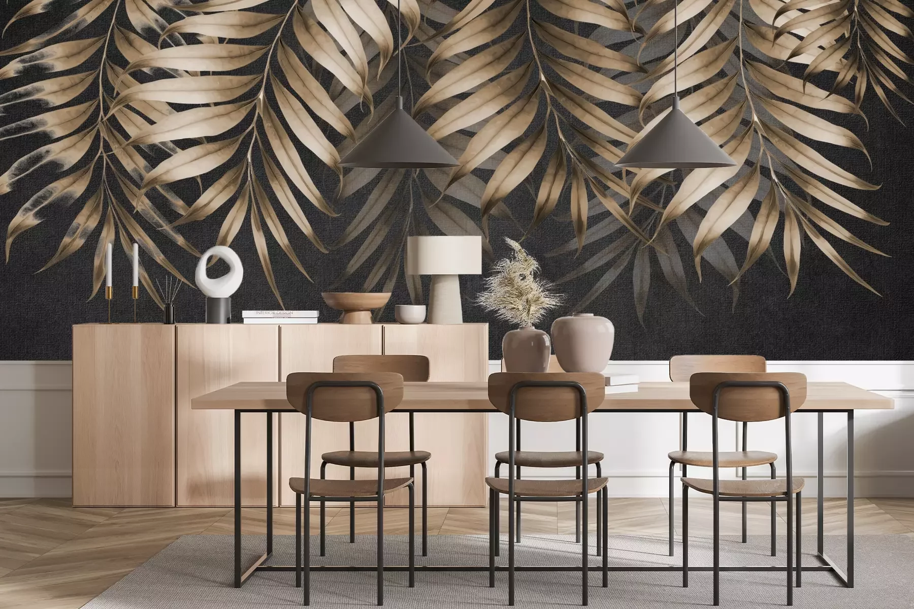 Het materiaal Standard is een hoogwaardig latexmateriaal met een glad, mat oppervlak. Dankzij de HP Latex-printtechnologie zijn de kleuren intens, duurzaam en UV-bestendig, waardoor het patroon jarenlang een onberispelijke uitstraling behoudt. Vervuilde oppervlakken kunnen voorzichtig worden afgeveegd met een droge doek. De maximale breedte van één baan bedraagt 95 cm of 105 cm – afhankelijk van de bestelde fotobehangbreedte. Bij grotere afmetingen wordt het patroon verdeeld over meerdere gelijkmatige banen. Het fotobehang wordt rand-aan-randaangebracht, wat vrijwel onzichtbare naden mogelijk maakt.