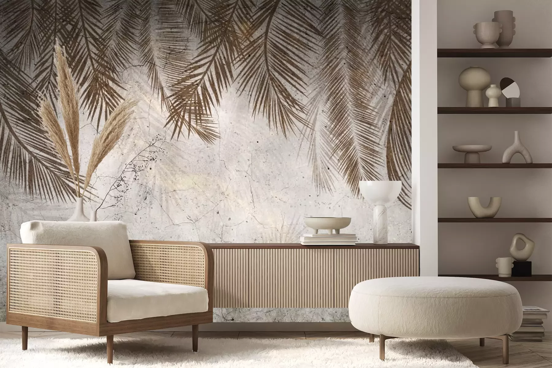 *Korting is niet van toepassing op lijmen, accessoires en cadeaubonnen.Als je op zoek bent naar een verrassende interieurdecoratie, is ons fotobehang de perfecte oplossing. Bladeren op beton combineren twee verschillende esthetieken en creëren een originele, maar toch harmonieuze uitstraling. Aan de ene kant breng je een rustgevende dosis natuur in je interieur met weelderige, palmachtige bladeren, en aan de andere kant decoreer je de muur met een trendy betonstructuur, die het interieur een modern en licht stoer karakter geeft. De hoge printkwaliteit zorgt ervoor dat de betonnen imitatie er bijzonder realistisch uitziet. Dit maakt het een uitstekende oplossing als je hebt overwogen om de muren te bekleden met architectonische betonplaten, maar werd afgeschrikt door de kosten en het installatieproces. Een vergelijkbaar visueel effect kun je bereiken met ons fotobehang. Betonstructuur past bij veel verschillende interieurstijlen – niet alleen bij een industriële inrichting. Je kunt het ook toepassen in minimalistische, eclectische, retro- of Scandinavische ruimtes. Het plantenmotief combineert ook prachtig met boho-, urban jungle- of eco-stijlen. In welke ruimte komt ons fotobehang het beste tot zijn recht? Bladeren zorgen niet alleen voor een warme uitstraling in de woonkamer en slaapkamer, maar zien er ook indrukwekkend uit in de hal, de thuiswerkplek of zelfs in de badkamer. Om ervoor te zorgen dat de wanddecoratie op deze plek jarenlang in perfecte staat blijft, is een waterbestendig fotobehang nodig. Tropische bladeren op een betonstructuur geven een ruimte die karakter mist, direct meer persoonlijkheid. Het enige wat je hoeft te doen, is tijdens het bestellen de optie voor laminering kiezen – dit betekent dat de banen worden bedekt met een beschermende folie – en je kunt het ontwerp zelfs aanbrengen op de muur bij het bad of de wastafel. De wanddecoraties van Redro zijn ook perfect voor commerciële ruimtes, omdat de materialen die we gebruiken van hoge kwaliteit zijn. Als je een café of bistro, een kapsalon of een schoonheidsinstituut runt, overweeg dan onze oplossing als fotobehang. Bladeren brengen een natuurlijk element in het interieur, terwijl de compositie ervoor zorgt dat het plantmotief het interieur niet overheerst.