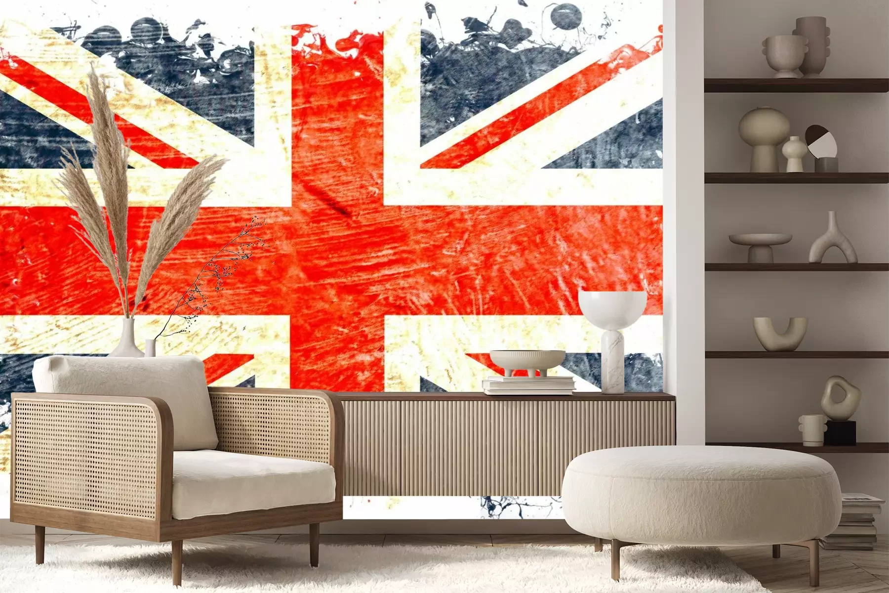 Het materiaal Premium+ is een gestructureerd vinyl op vlies met een gewicht van 255 g/m², dat kleine oneffenheden in de muur effectief camoufleert. De subtiele structuur van fijn zand geeft het oppervlak een exclusieve uitstraling, terwijl de halfmatte afwerking de diepte van de kleuren benadrukt. Het materiaal is dampdoorlatend, waardoor het ook in de keuken en badkamer kan worden gebruikt. De maximale breedte van één baan bedraagt 100 cm – bij grotere afmetingen wordt het fotobehang in meerdere gelijke banen verdeeld. De lijm wordt direct op de muur aangebracht en het behang wordt rand-aan-rand geplakt, wat zorgt voor een esthetisch resultaat zonder zichtbare naden. Het oppervlak kan gemakkelijk worden schoongemaakt door het voorzichtig af te nemen met een vochtige doek.