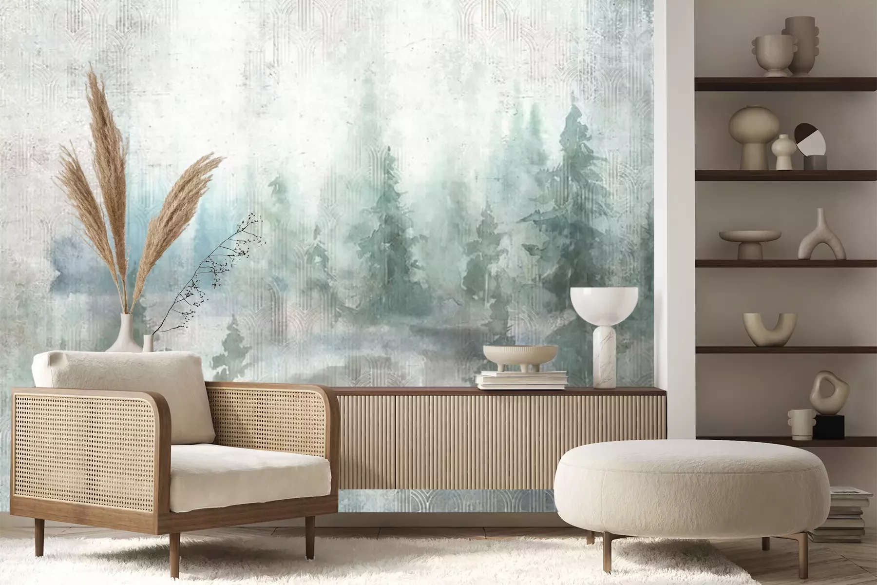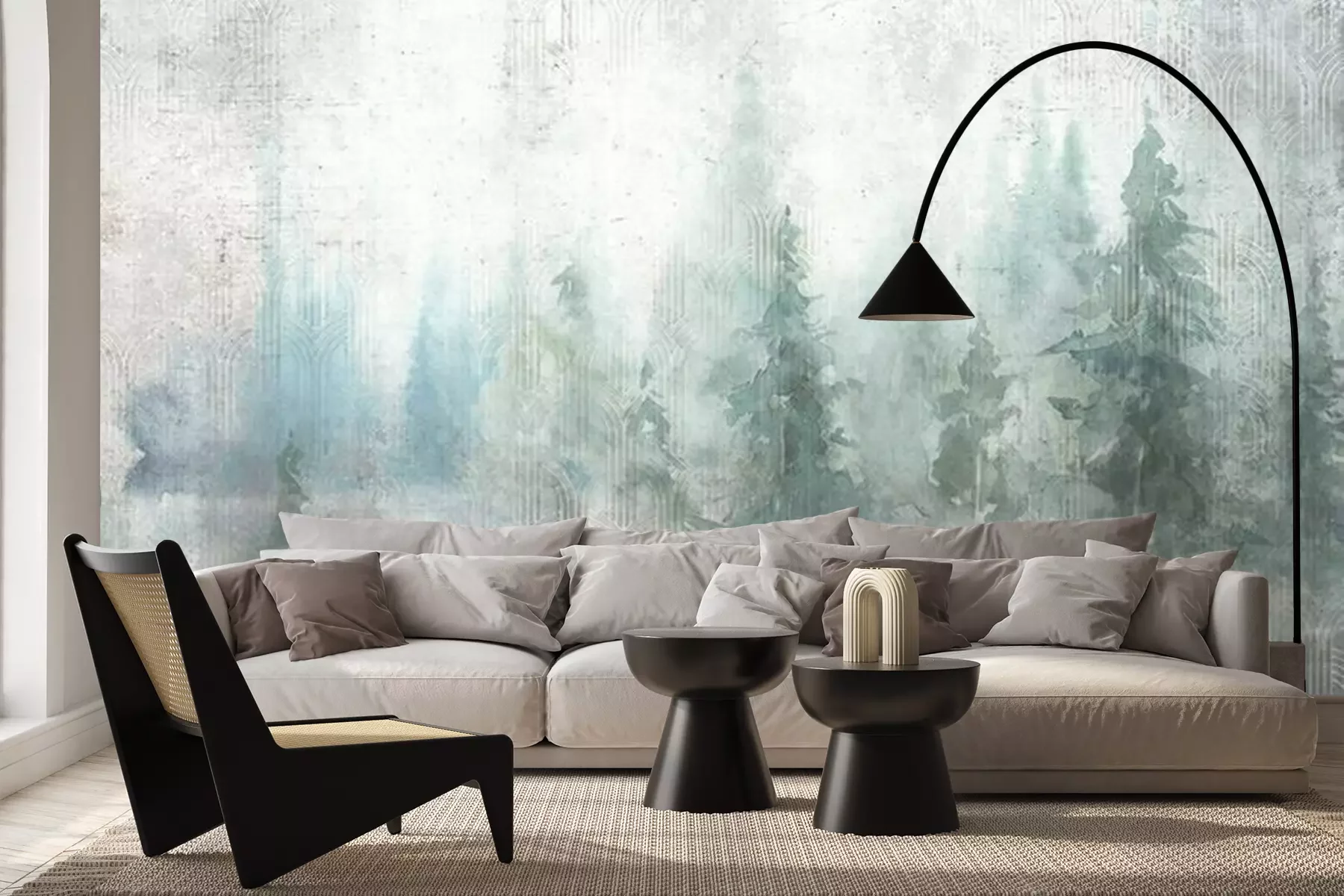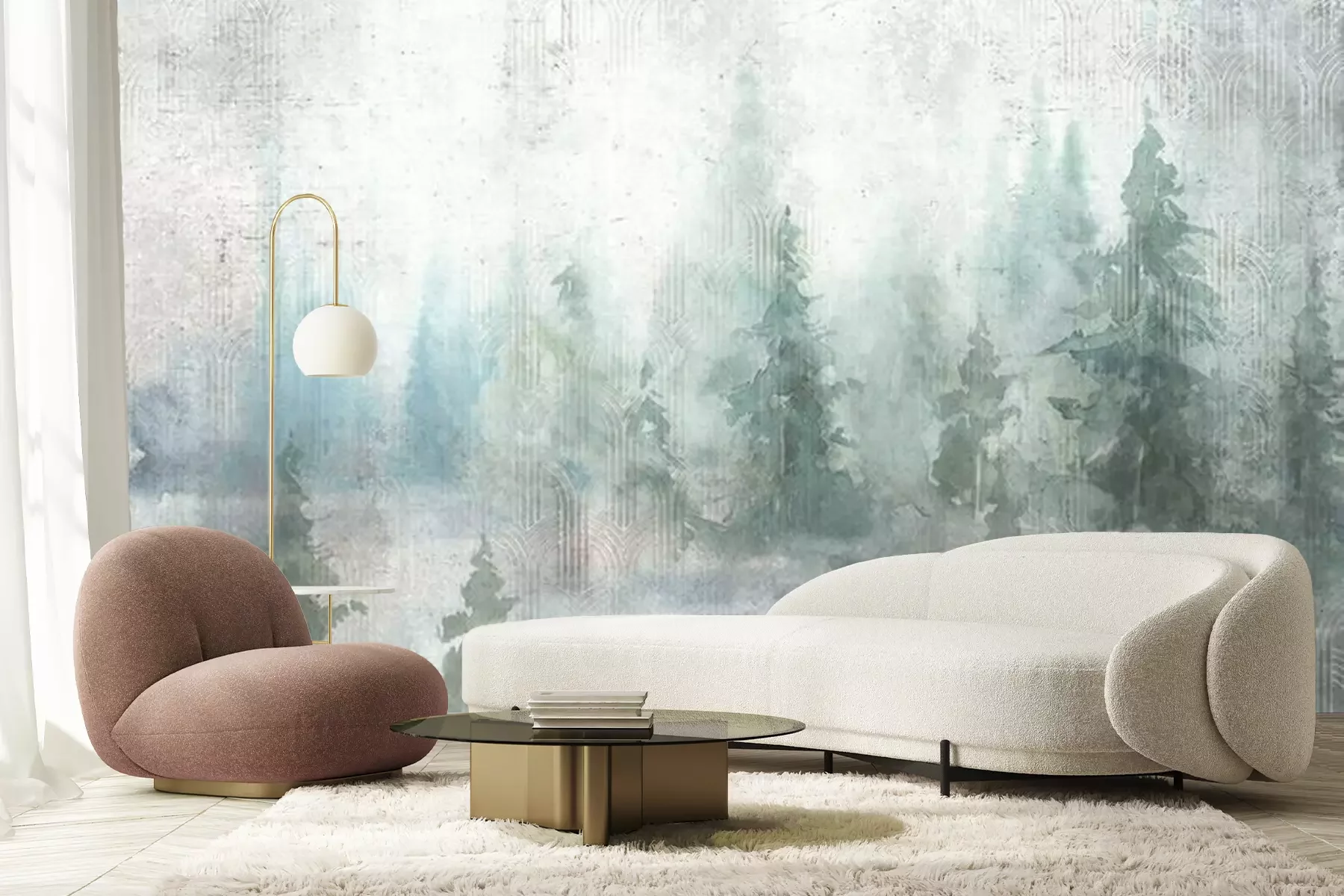 Berken op een geometrische achtergrondFotobehang