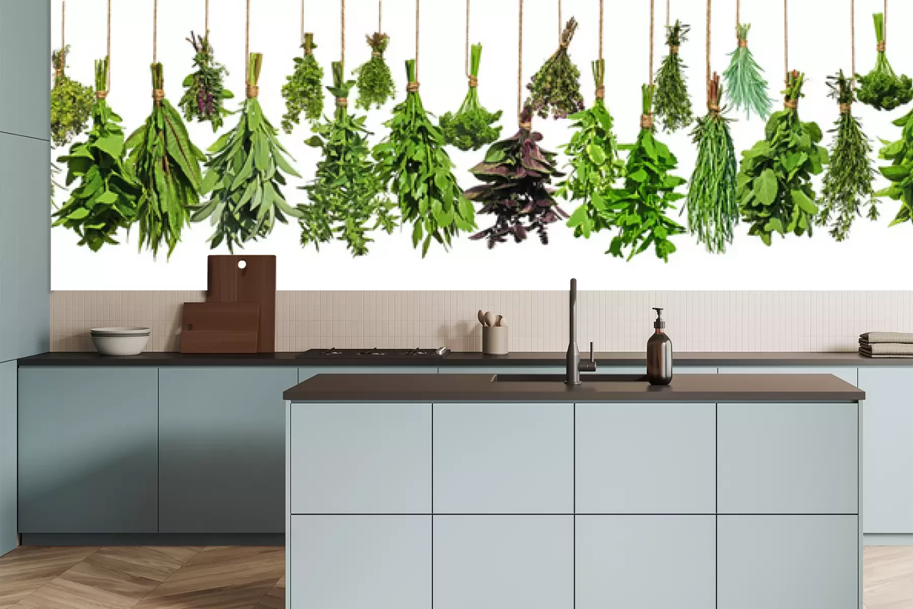 Het materiaal Premium is een glad vinyl op vlies, dat bestand is tegen uitrekken en vervorming. Het is dampdoorlatend – de muren kunnen vrij ademen – waardoor het geschikt is voor gebruik in de keuken en badkamer. Bij vervuiling kan het materiaal worden afgenomen met een vochtige doek. De maximale breedte van één baan bedraagt 95 of 105 cm, afhankelijk van de beschikbaarheid. Montage vindt plaats met de rand-aan-rand methode, wat een esthetisch resultaat zonder zichtbare naden oplevert. Omdat de lijm rechtstreeks op de muur wordt aangebracht, verloopt de installatie van het fotobehang snel en eenvoudig.