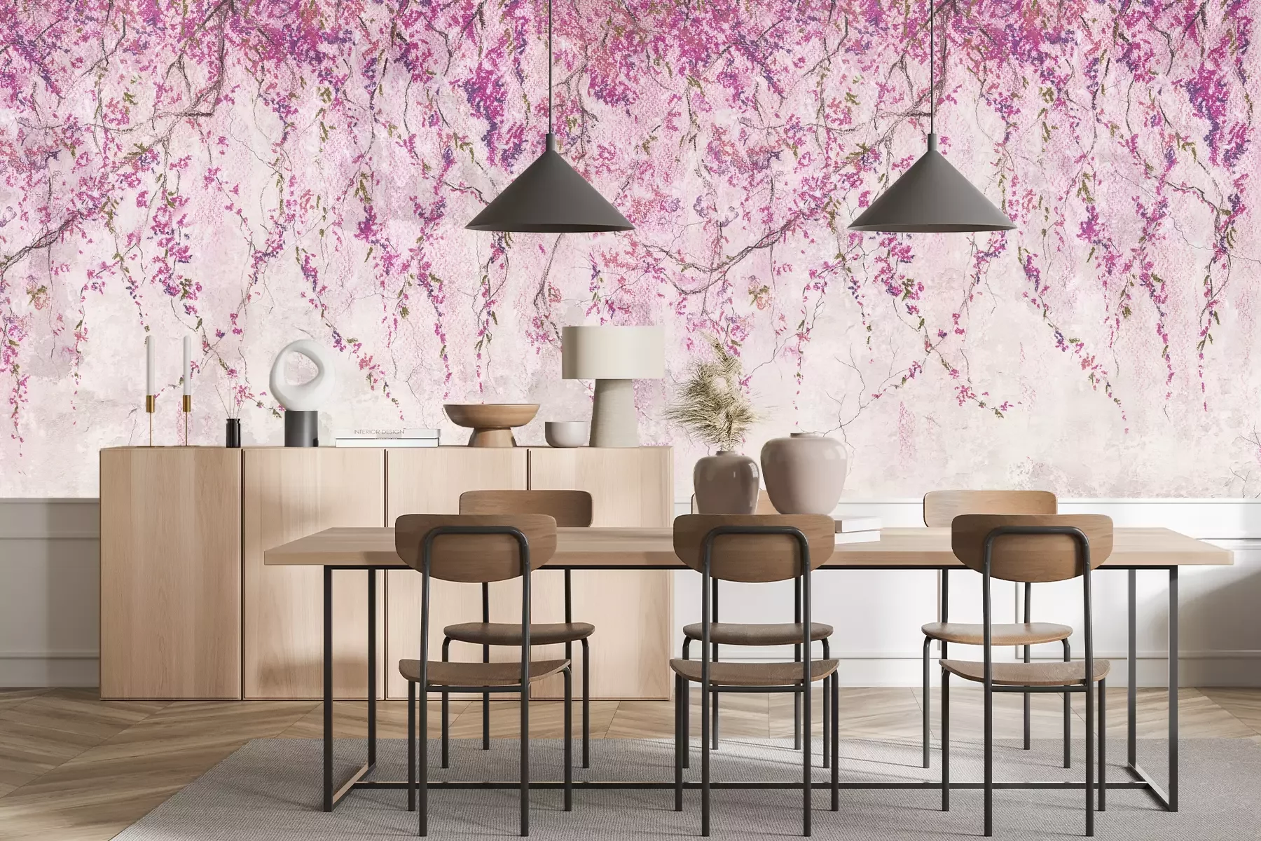 Het materiaal Premium+ is een gestructureerd vinyl op vlies met een gewicht van 255 g/m², dat kleine oneffenheden in de muur effectief camoufleert. De subtiele structuur van fijn zand geeft het oppervlak een exclusieve uitstraling, terwijl de halfmatte afwerking de diepte van de kleuren benadrukt. Het materiaal is dampdoorlatend, waardoor het ook in de keuken en badkamer kan worden gebruikt. De maximale breedte van één baan bedraagt 100 cm – bij grotere afmetingen wordt het fotobehang in meerdere gelijke banen verdeeld. De lijm wordt direct op de muur aangebracht en het behang wordt rand-aan-rand geplakt, wat zorgt voor een esthetisch resultaat zonder zichtbare naden. Het oppervlak kan gemakkelijk worden schoongemaakt door het voorzichtig af te nemen met een vochtige doek.