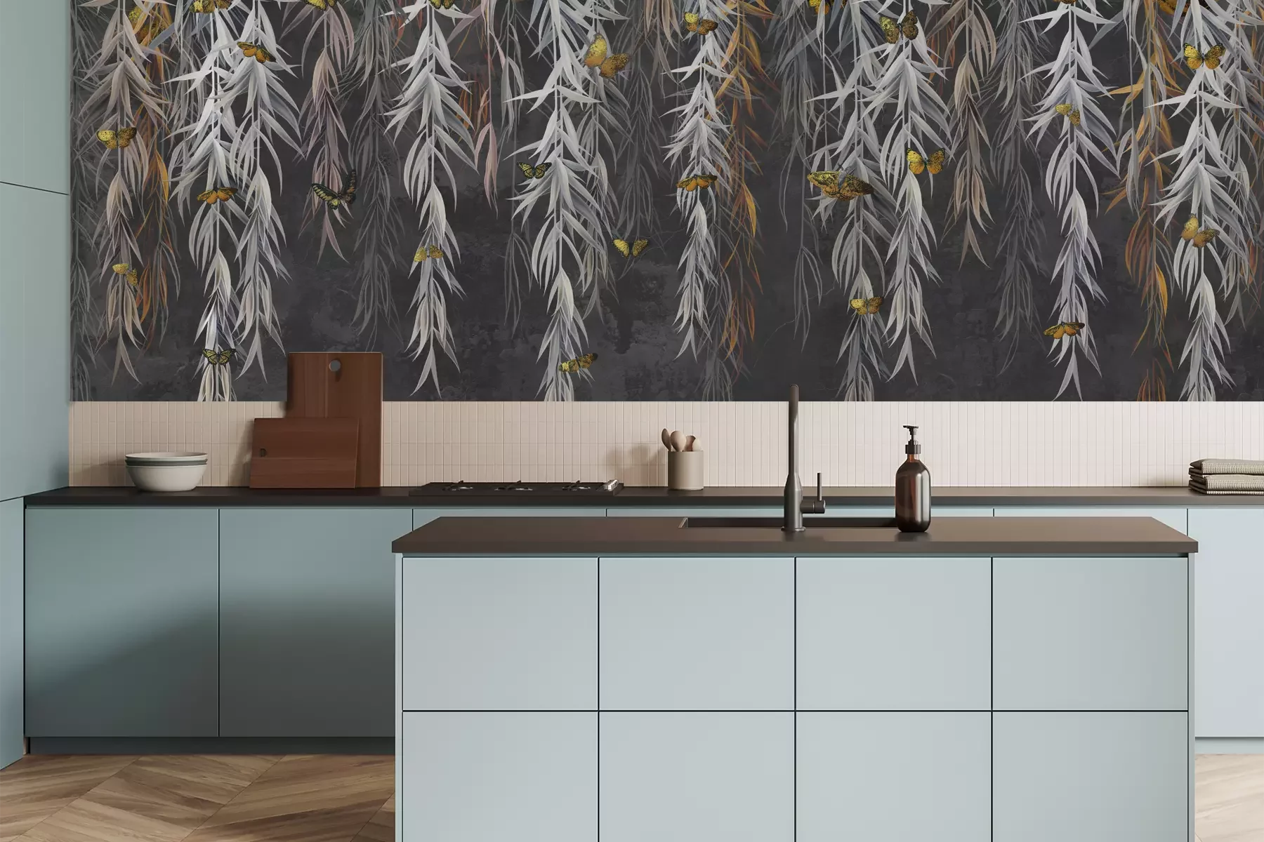 Het materiaal Premium is een glad vinyl op vlies, dat bestand is tegen uitrekken en vervorming. Het is dampdoorlatend – de muren kunnen vrij ademen – waardoor het geschikt is voor gebruik in de keuken en badkamer. Bij vervuiling kan het materiaal worden afgenomen met een vochtige doek. De maximale breedte van één baan bedraagt 95 of 105 cm, afhankelijk van de beschikbaarheid. Montage vindt plaats met de rand-aan-rand methode, wat een esthetisch resultaat zonder zichtbare naden oplevert. Omdat de lijm rechtstreeks op de muur wordt aangebracht, verloopt de installatie van het fotobehang snel en eenvoudig.