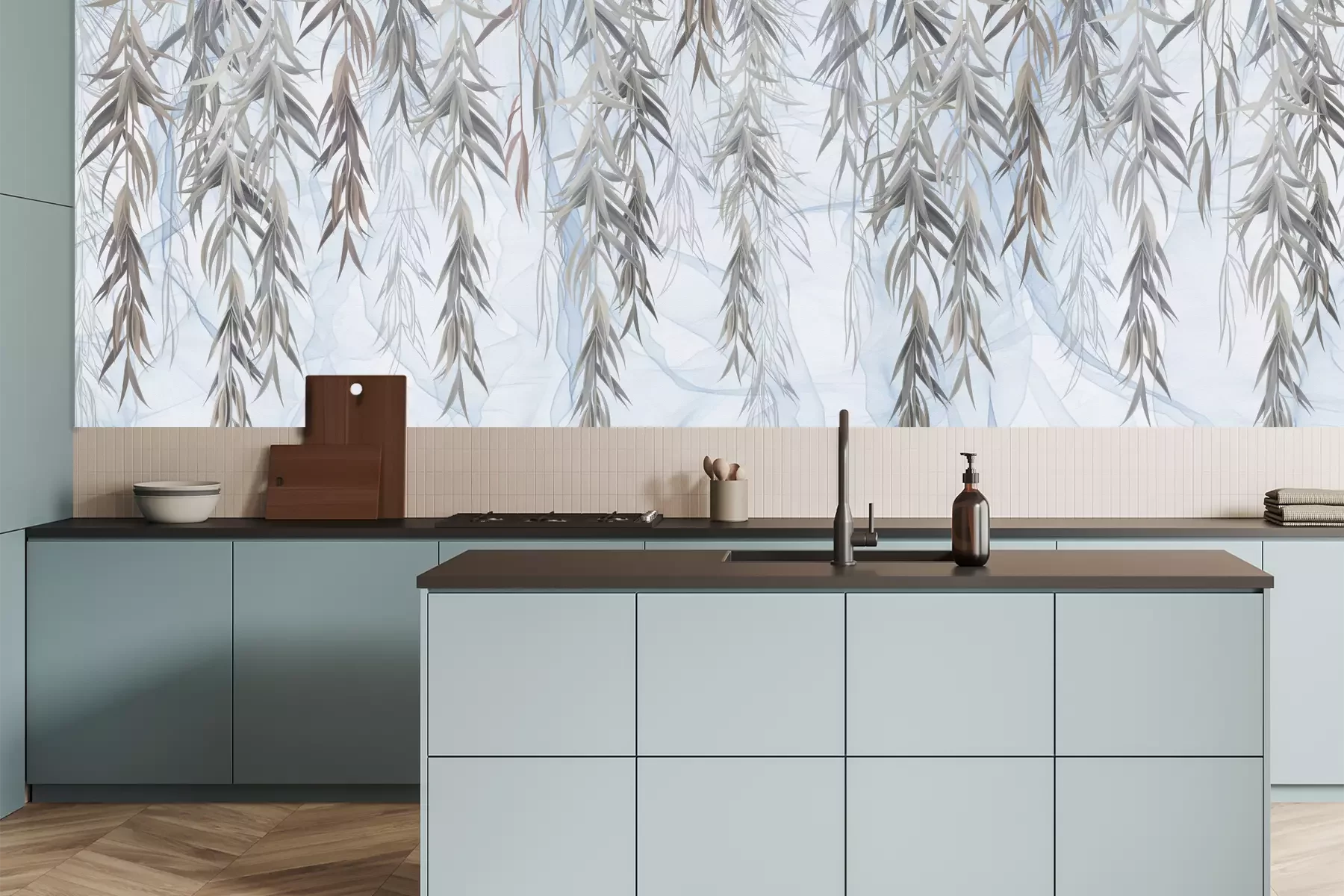 Het materiaal Premium is een glad vinyl op vlies, dat bestand is tegen uitrekken en vervorming. Het is dampdoorlatend – de muren kunnen vrij ademen – waardoor het geschikt is voor gebruik in de keuken en badkamer. Bij vervuiling kan het materiaal worden afgenomen met een vochtige doek. De maximale breedte van één baan bedraagt 95 of 105 cm, afhankelijk van de beschikbaarheid. Montage vindt plaats met de rand-aan-rand methode, wat een esthetisch resultaat zonder zichtbare naden oplevert. Omdat de lijm rechtstreeks op de muur wordt aangebracht, verloopt de installatie van het fotobehang snel en eenvoudig.