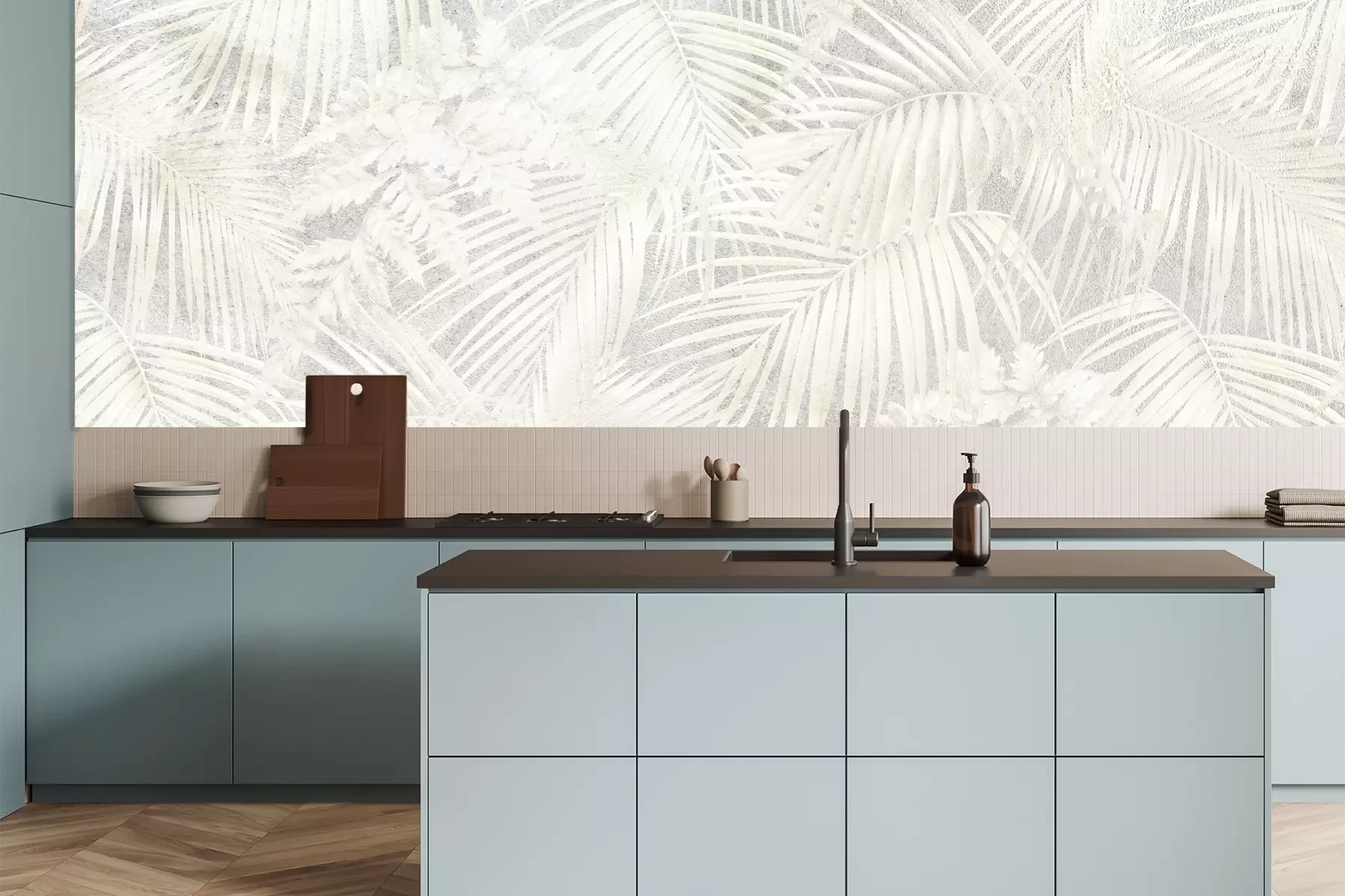 Het materiaal Premium is een glad vinyl op vlies, dat bestand is tegen uitrekken en vervorming. Het is dampdoorlatend – de muren kunnen vrij ademen – waardoor het geschikt is voor gebruik in de keuken en badkamer. Bij vervuiling kan het materiaal worden afgenomen met een vochtige doek. De maximale breedte van één baan bedraagt 95 of 105 cm, afhankelijk van de beschikbaarheid. Montage vindt plaats met de rand-aan-rand methode, wat een esthetisch resultaat zonder zichtbare naden oplevert. Omdat de lijm rechtstreeks op de muur wordt aangebracht, verloopt de installatie van het fotobehang snel en eenvoudig.