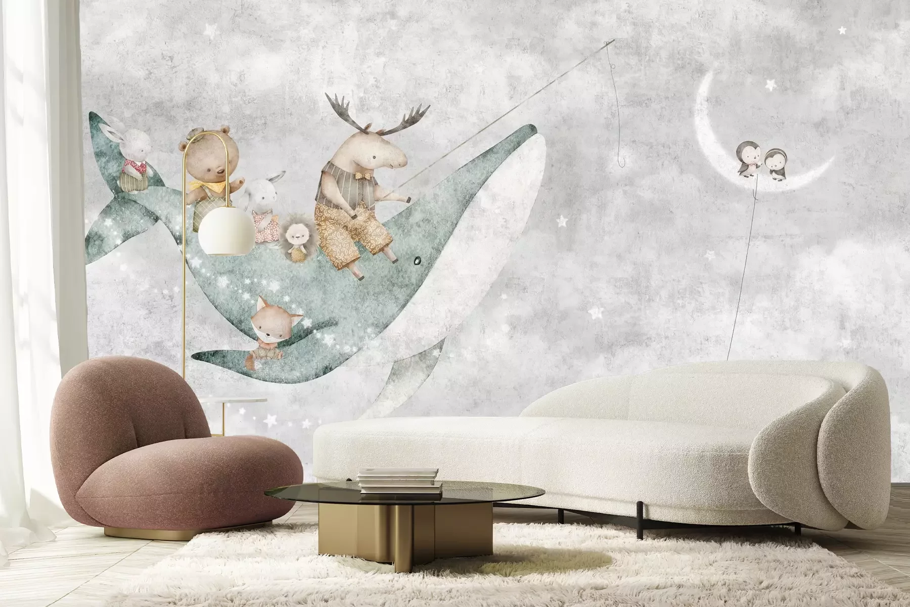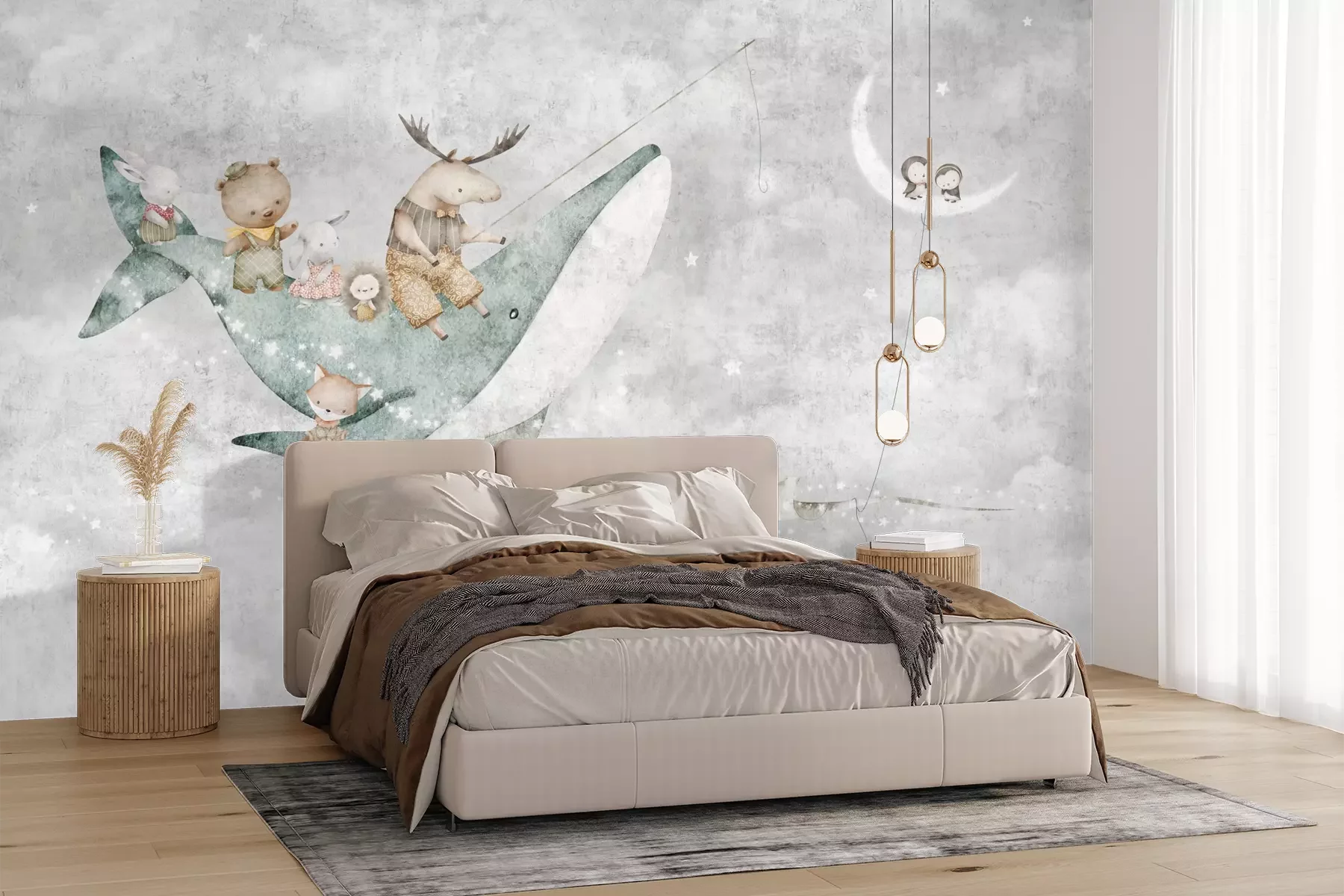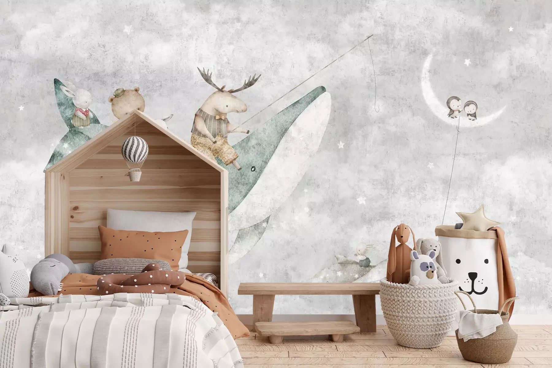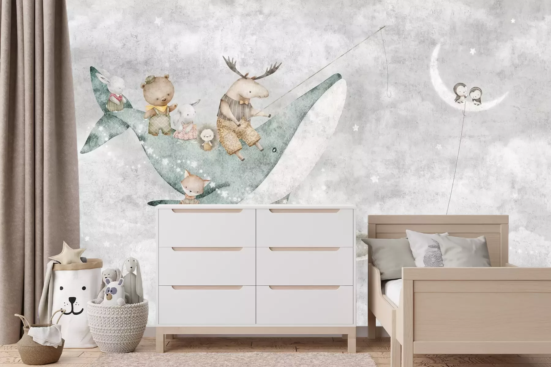 Hemel met walvis, maan en dieren, sprookjespatroon voor kinderen