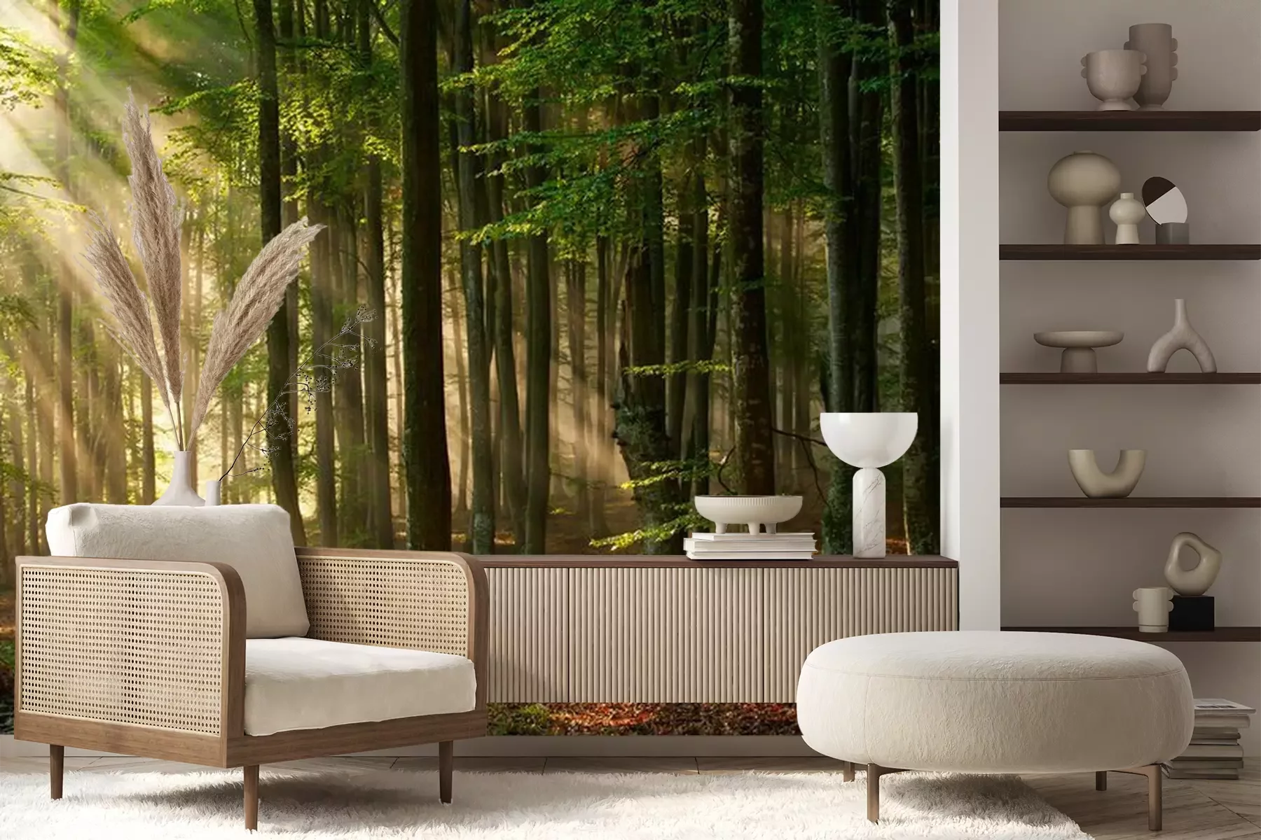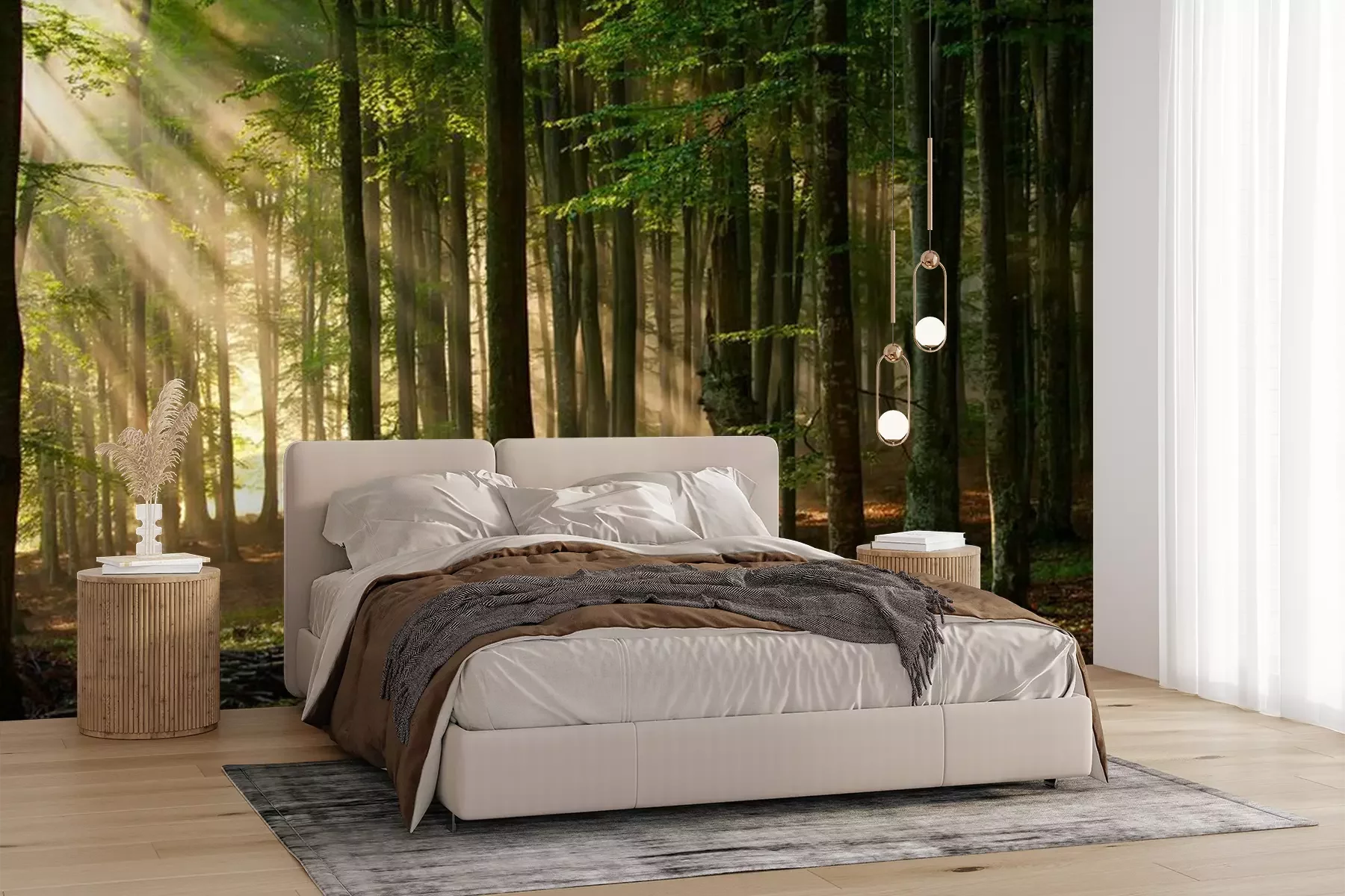 Het materiaal Premium+ is een gestructureerd vinyl op vlies met een gewicht van 255 g/m², dat kleine oneffenheden in de muur effectief camoufleert. De subtiele structuur van fijn zand geeft het oppervlak een exclusieve uitstraling, terwijl de halfmatte afwerking de diepte van de kleuren benadrukt. Het materiaal is dampdoorlatend, waardoor het ook in de keuken en badkamer kan worden gebruikt. De maximale breedte van één baan bedraagt 100 cm – bij grotere afmetingen wordt het fotobehang in meerdere gelijke banen verdeeld. De lijm wordt direct op de muur aangebracht en het behang wordt rand-aan-rand geplakt, wat zorgt voor een esthetisch resultaat zonder zichtbare naden. Het oppervlak kan gemakkelijk worden schoongemaakt door het voorzichtig af te nemen met een vochtige doek.