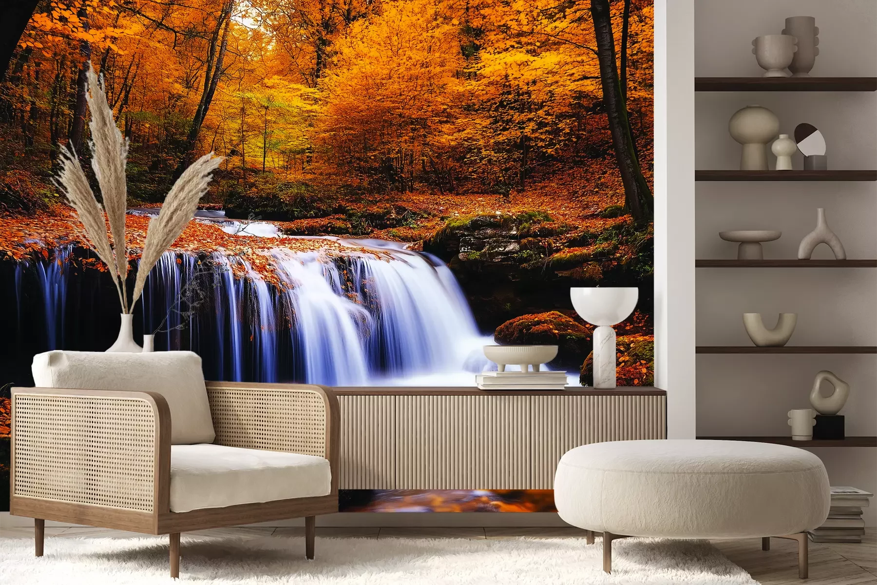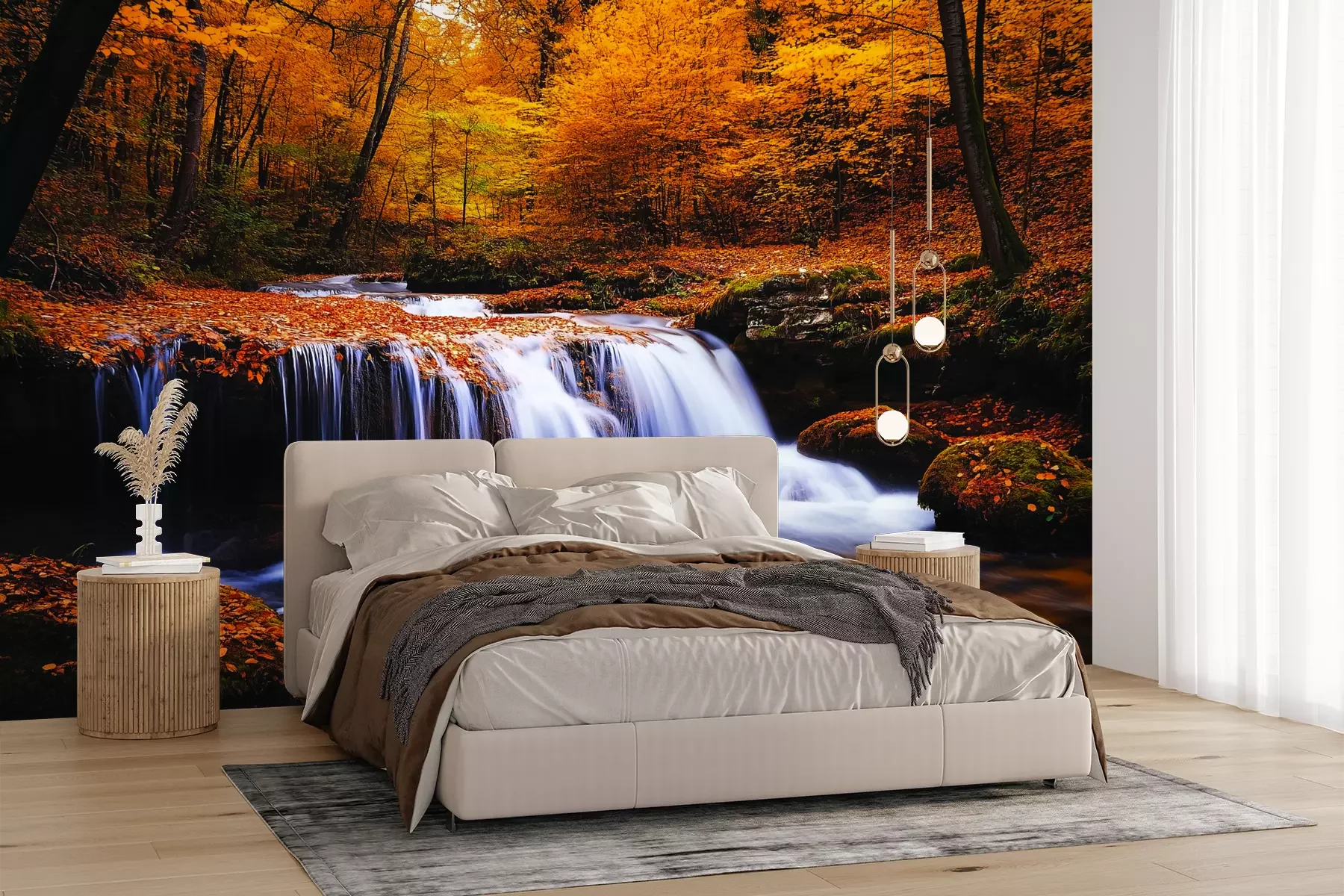 Het materiaal Premium+ is een gestructureerd vinyl op vlies met een gewicht van 255 g/m², dat kleine oneffenheden in de muur effectief camoufleert. De subtiele structuur van fijn zand geeft het oppervlak een exclusieve uitstraling, terwijl de halfmatte afwerking de diepte van de kleuren benadrukt. Het materiaal is dampdoorlatend, waardoor het ook in de keuken en badkamer kan worden gebruikt. De maximale breedte van één baan bedraagt 100 cm – bij grotere afmetingen wordt het fotobehang in meerdere gelijke banen verdeeld. De lijm wordt direct op de muur aangebracht en het behang wordt rand-aan-rand geplakt, wat zorgt voor een esthetisch resultaat zonder zichtbare naden. Het oppervlak kan gemakkelijk worden schoongemaakt door het voorzichtig af te nemen met een vochtige doek.