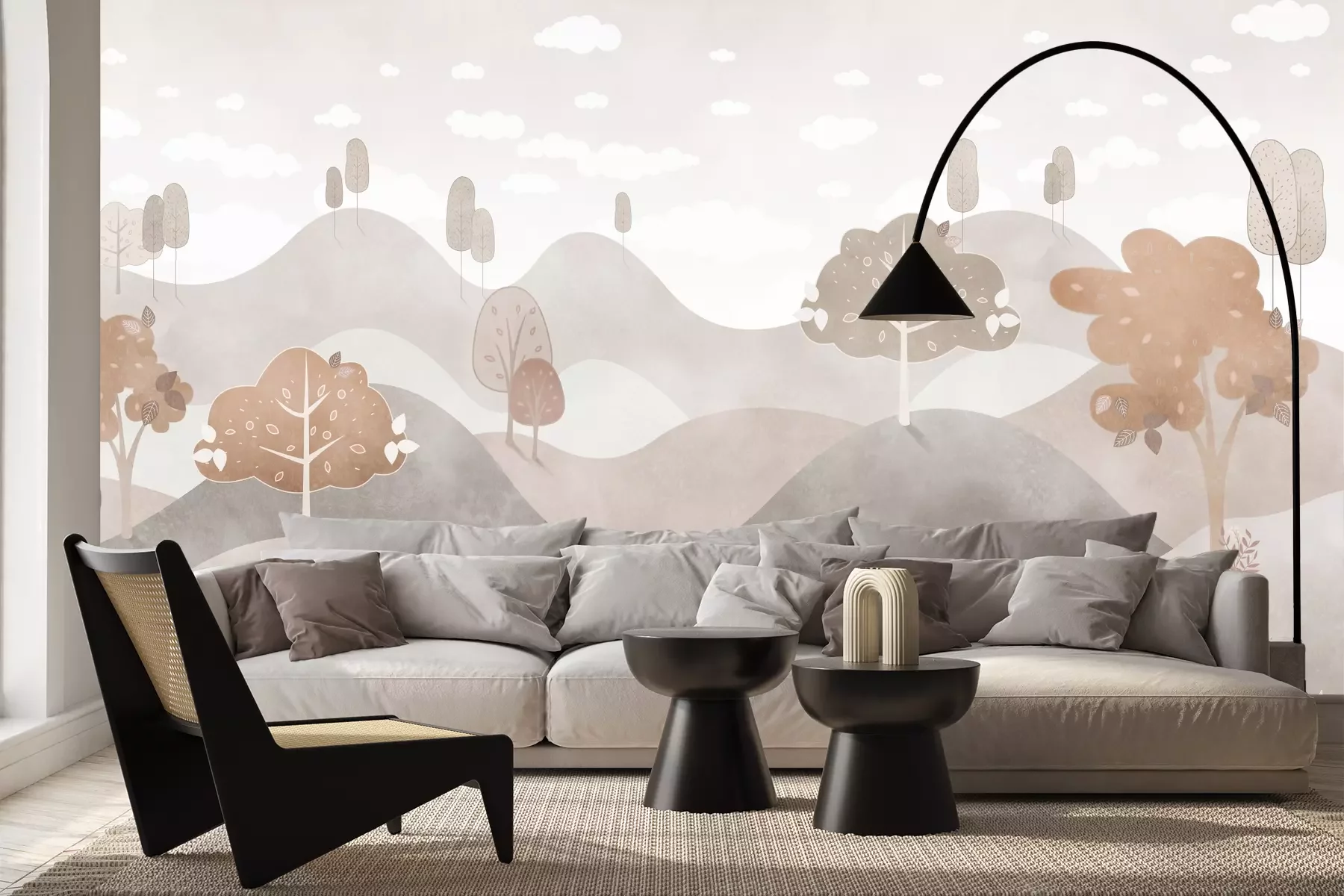 Het materiaal Premium+ is een gestructureerd vinyl op vlies met een gewicht van 255 g/m², dat kleine oneffenheden in de muur effectief camoufleert. De subtiele structuur van fijn zand geeft het oppervlak een exclusieve uitstraling, terwijl de halfmatte afwerking de diepte van de kleuren benadrukt. Het materiaal is dampdoorlatend, waardoor het ook in de keuken en badkamer kan worden gebruikt. De maximale breedte van één baan bedraagt 100 cm – bij grotere afmetingen wordt het fotobehang in meerdere gelijke banen verdeeld. De lijm wordt direct op de muur aangebracht en het behang wordt rand-aan-rand geplakt, wat zorgt voor een esthetisch resultaat zonder zichtbare naden. Het oppervlak kan gemakkelijk worden schoongemaakt door het voorzichtig af te nemen met een vochtige doek.