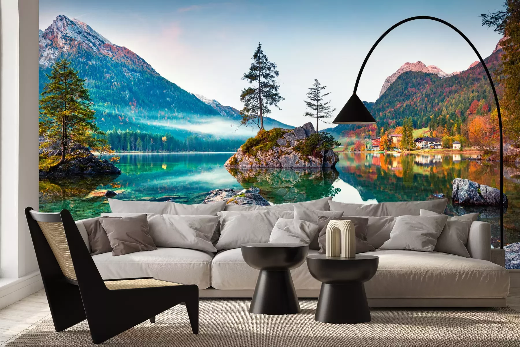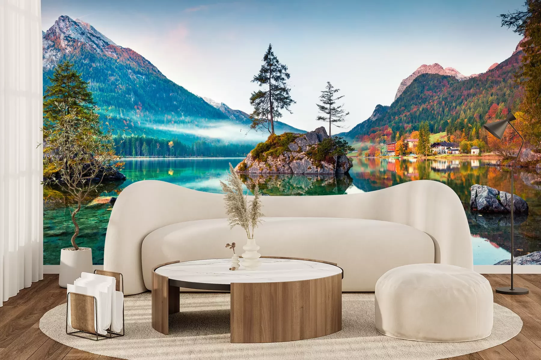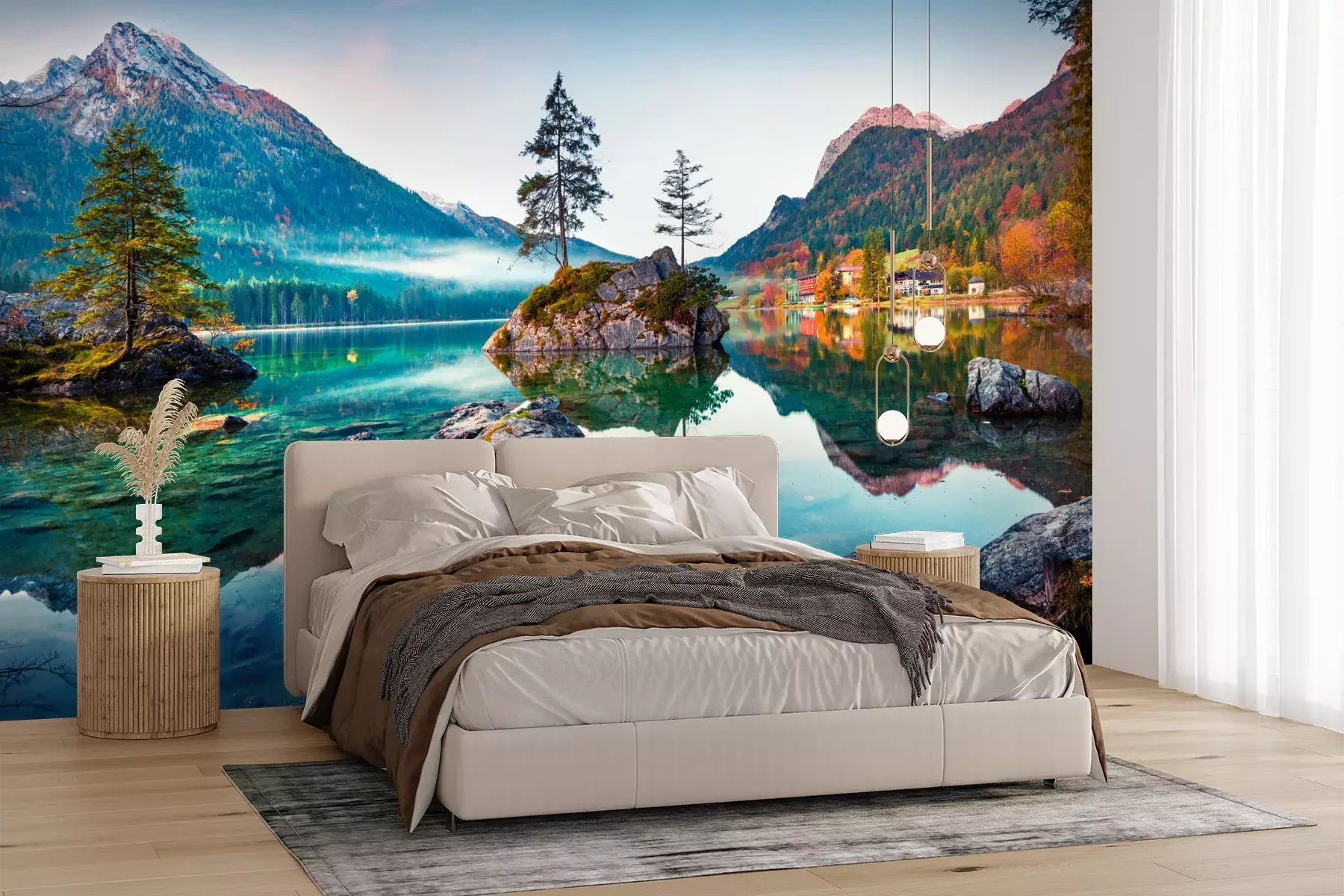 Het materiaal Premium+ is een gestructureerd vinyl op vlies met een gewicht van 255 g/m², dat kleine oneffenheden in de muur effectief camoufleert. De subtiele structuur van fijn zand geeft het oppervlak een exclusieve uitstraling, terwijl de halfmatte afwerking de diepte van de kleuren benadrukt. Het materiaal is dampdoorlatend, waardoor het ook in de keuken en badkamer kan worden gebruikt. De maximale breedte van één baan bedraagt 100 cm – bij grotere afmetingen wordt het fotobehang in meerdere gelijke banen verdeeld. De lijm wordt direct op de muur aangebracht en het behang wordt rand-aan-rand geplakt, wat zorgt voor een esthetisch resultaat zonder zichtbare naden. Het oppervlak kan gemakkelijk worden schoongemaakt door het voorzichtig af te nemen met een vochtige doek.