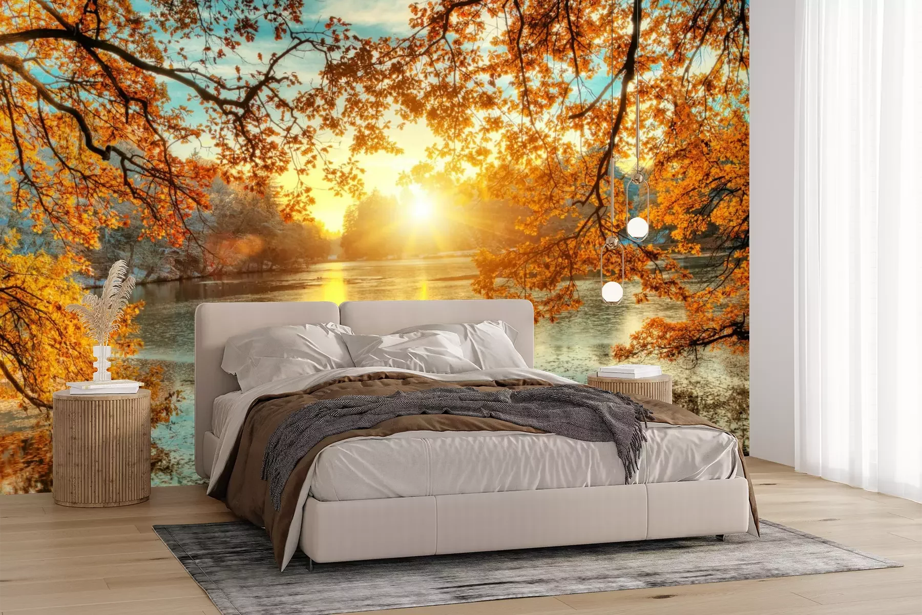 Het materiaal Premium+ is een gestructureerd vinyl op vlies met een gewicht van 255 g/m², dat kleine oneffenheden in de muur effectief camoufleert. De subtiele structuur van fijn zand geeft het oppervlak een exclusieve uitstraling, terwijl de halfmatte afwerking de diepte van de kleuren benadrukt. Het materiaal is dampdoorlatend, waardoor het ook in de keuken en badkamer kan worden gebruikt. De maximale breedte van één baan bedraagt 100 cm – bij grotere afmetingen wordt het fotobehang in meerdere gelijke banen verdeeld. De lijm wordt direct op de muur aangebracht en het behang wordt rand-aan-rand geplakt, wat zorgt voor een esthetisch resultaat zonder zichtbare naden. Het oppervlak kan gemakkelijk worden schoongemaakt door het voorzichtig af te nemen met een vochtige doek.