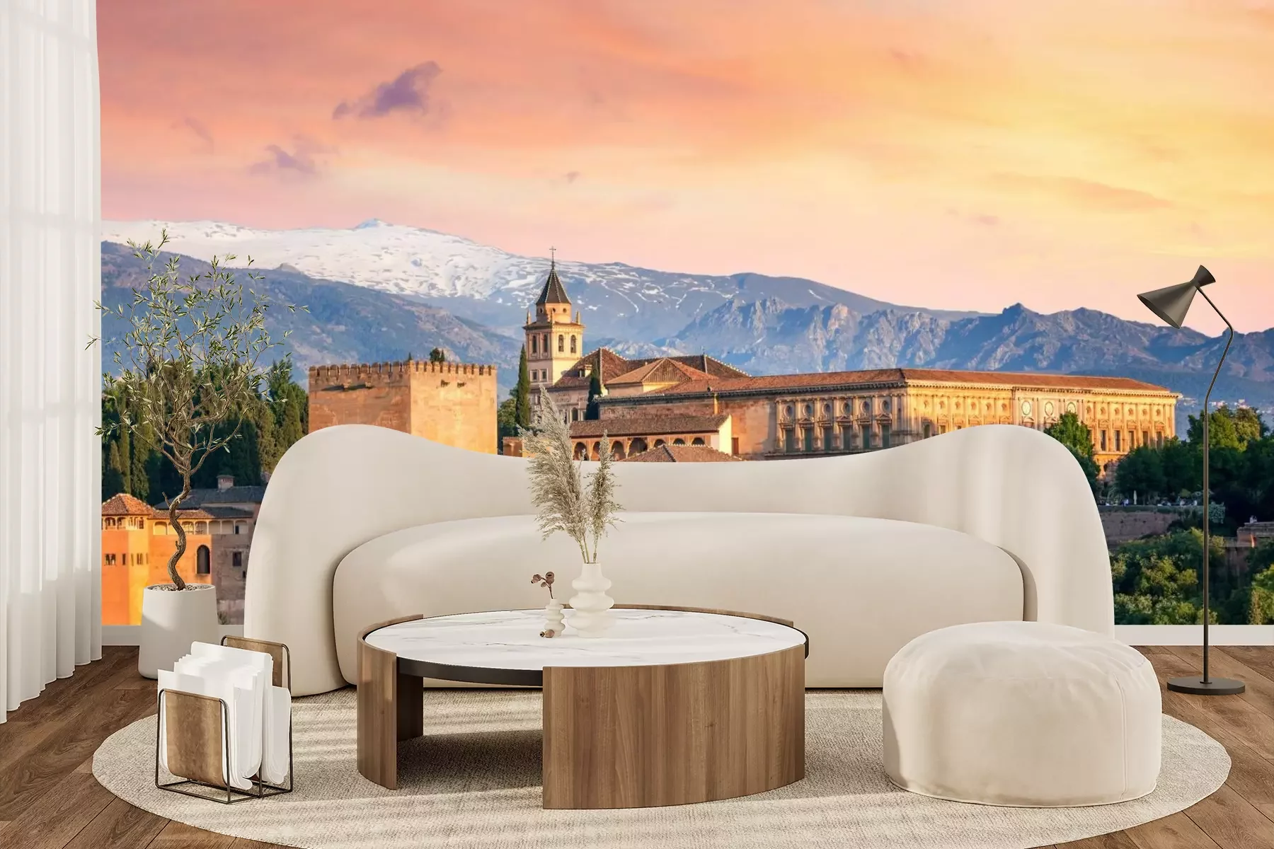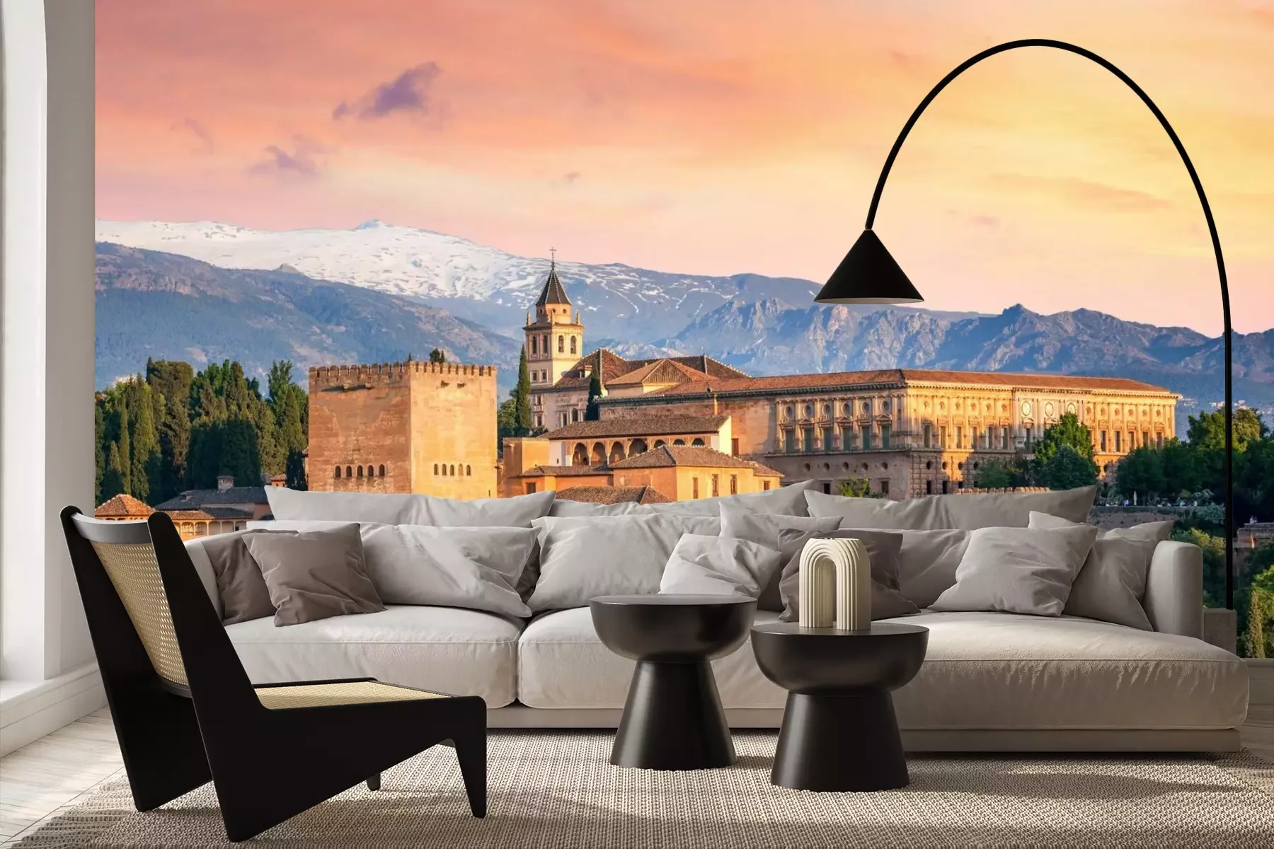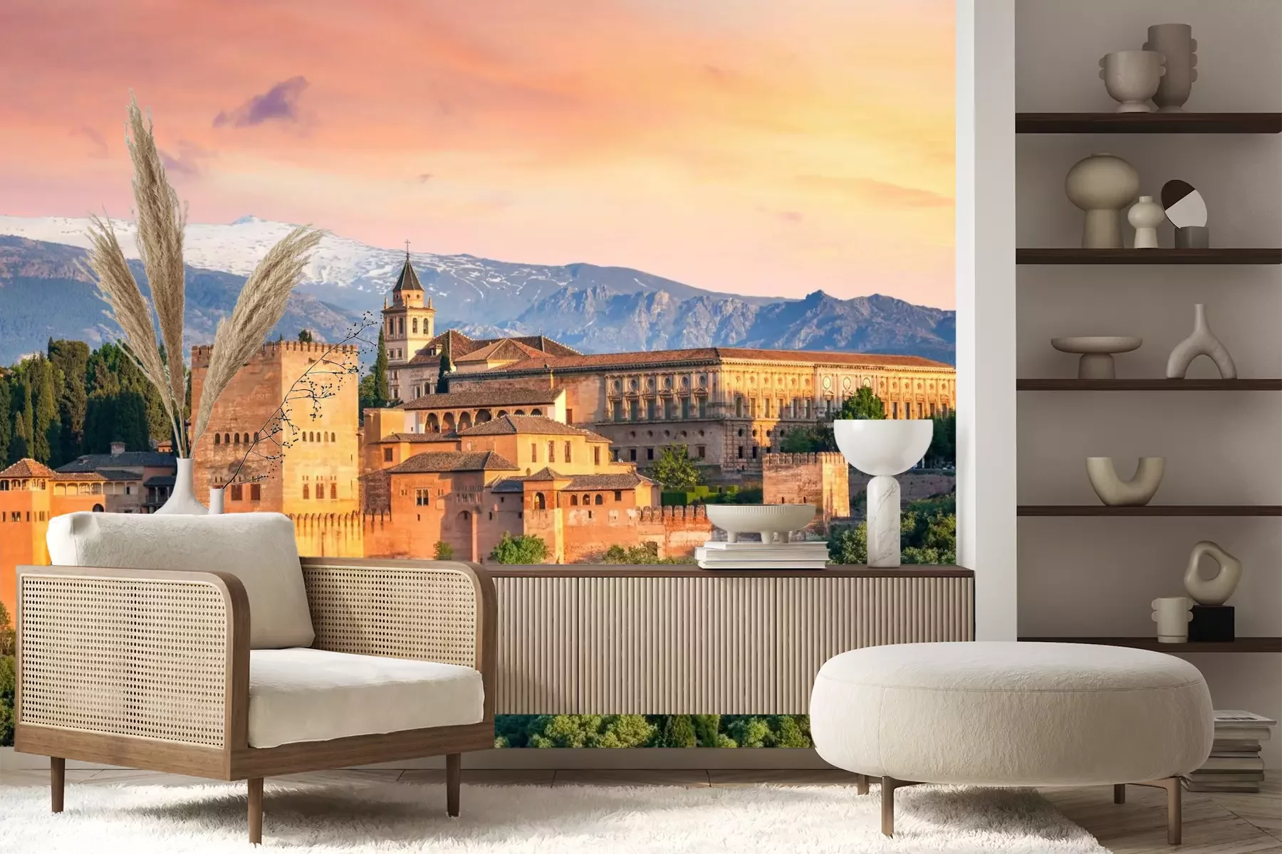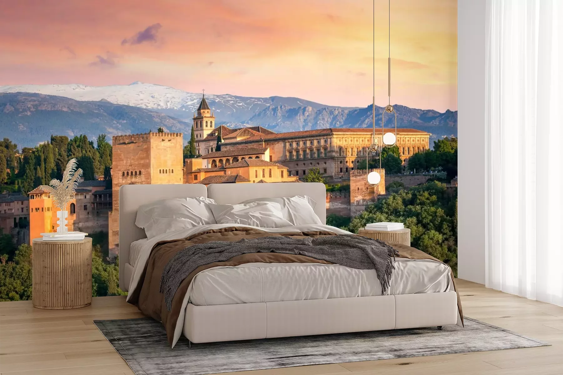 Het materiaal Premium+ is een gestructureerd vinyl op vlies met een gewicht van 255 g/m², dat kleine oneffenheden in de muur effectief camoufleert. De subtiele structuur van fijn zand geeft het oppervlak een exclusieve uitstraling, terwijl de halfmatte afwerking de diepte van de kleuren benadrukt. Het materiaal is dampdoorlatend, waardoor het ook in de keuken en badkamer kan worden gebruikt. De maximale breedte van één baan bedraagt 100 cm – bij grotere afmetingen wordt het fotobehang in meerdere gelijke banen verdeeld. De lijm wordt direct op de muur aangebracht en het behang wordt rand-aan-rand geplakt, wat zorgt voor een esthetisch resultaat zonder zichtbare naden. Het oppervlak kan gemakkelijk worden schoongemaakt door het voorzichtig af te nemen met een vochtige doek.