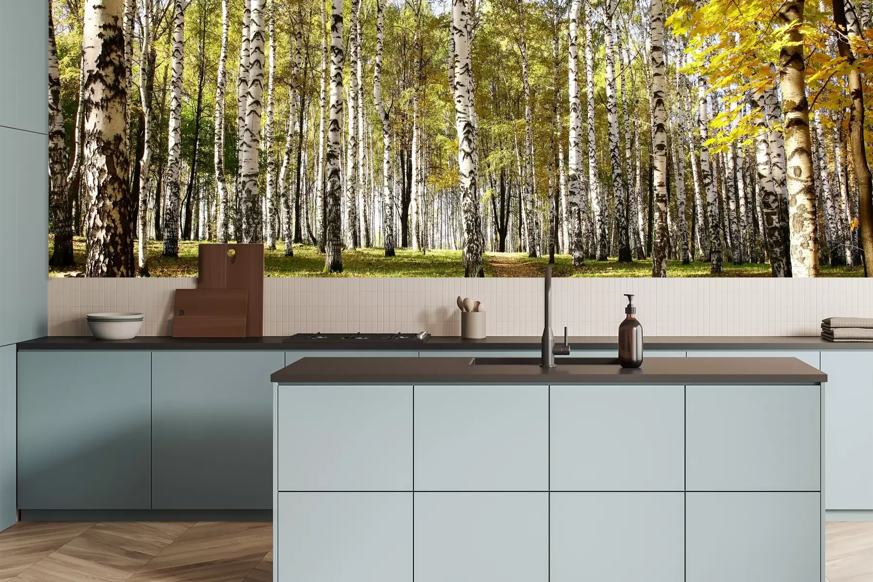 Het materiaal Premium is een glad vinyl op vlies, dat bestand is tegen uitrekken en vervorming. Het is dampdoorlatend – de muren kunnen vrij ademen – waardoor het geschikt is voor gebruik in de keuken en badkamer. Bij vervuiling kan het materiaal worden afgenomen met een vochtige doek. De maximale breedte van één baan bedraagt 95 of 105 cm, afhankelijk van de beschikbaarheid. Montage vindt plaats met de rand-aan-rand methode, wat een esthetisch resultaat zonder zichtbare naden oplevert. Omdat de lijm rechtstreeks op de muur wordt aangebracht, verloopt de installatie van het fotobehang snel en eenvoudig.