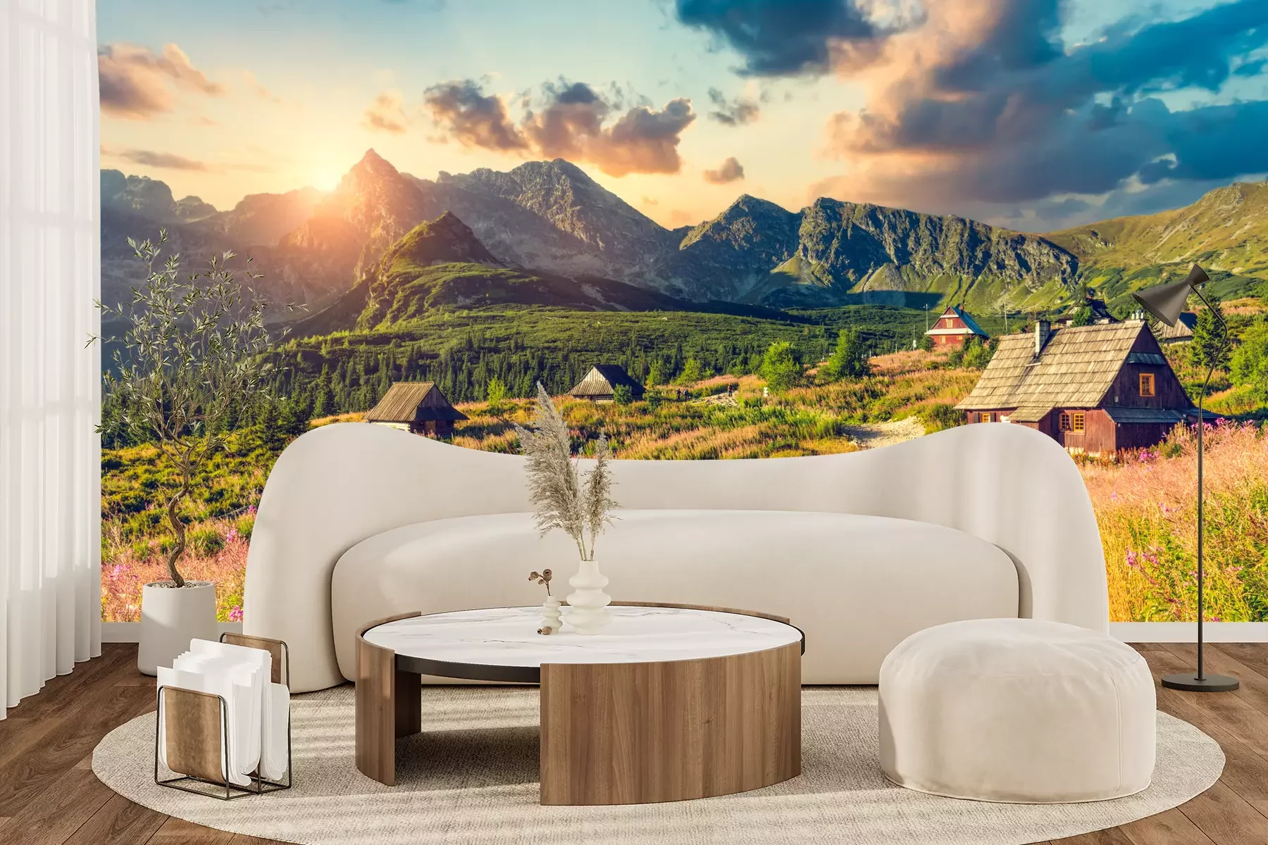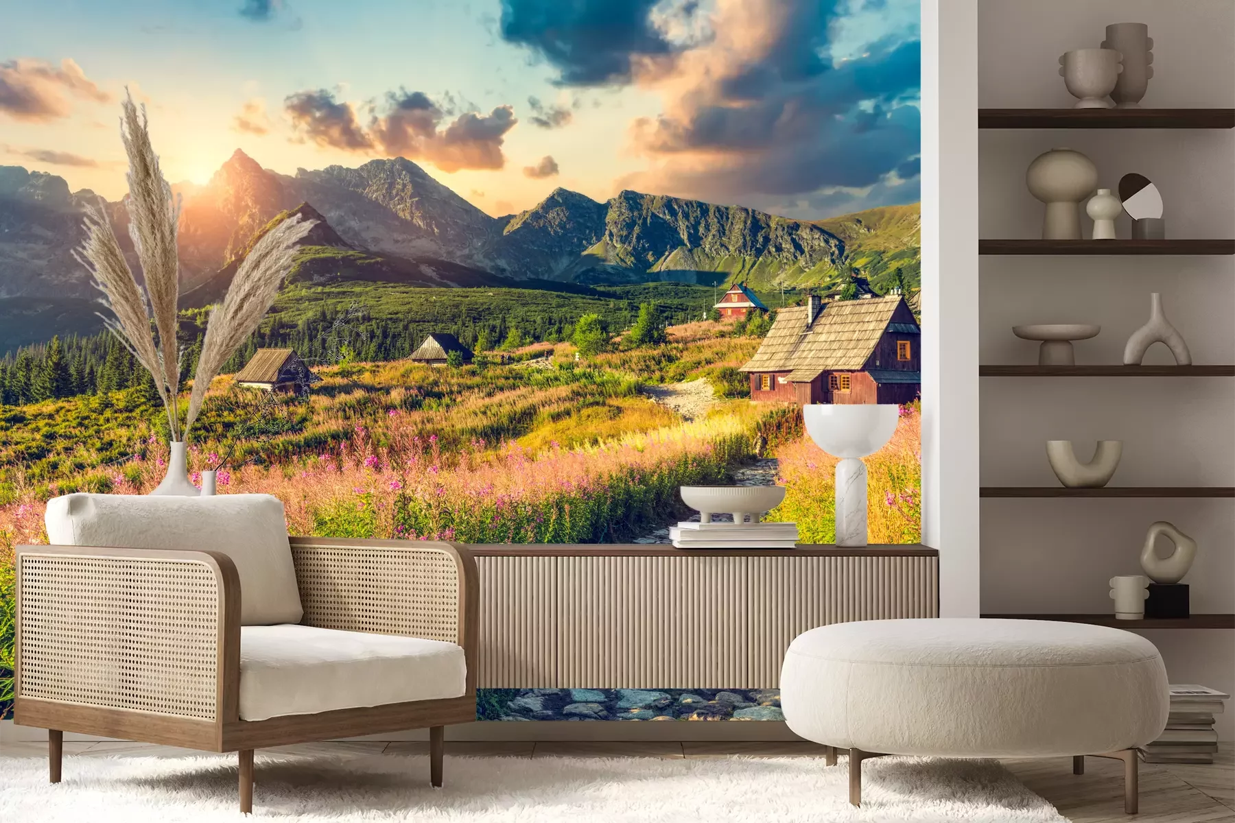 Het materiaal Premium+ is een gestructureerd vinyl op vlies met een gewicht van 255 g/m², dat kleine oneffenheden in de muur effectief camoufleert. De subtiele structuur van fijn zand geeft het oppervlak een exclusieve uitstraling, terwijl de halfmatte afwerking de diepte van de kleuren benadrukt. Het materiaal is dampdoorlatend, waardoor het ook in de keuken en badkamer kan worden gebruikt. De maximale breedte van één baan bedraagt 100 cm – bij grotere afmetingen wordt het fotobehang in meerdere gelijke banen verdeeld. De lijm wordt direct op de muur aangebracht en het behang wordt rand-aan-rand geplakt, wat zorgt voor een esthetisch resultaat zonder zichtbare naden. Het oppervlak kan gemakkelijk worden schoongemaakt door het voorzichtig af te nemen met een vochtige doek.