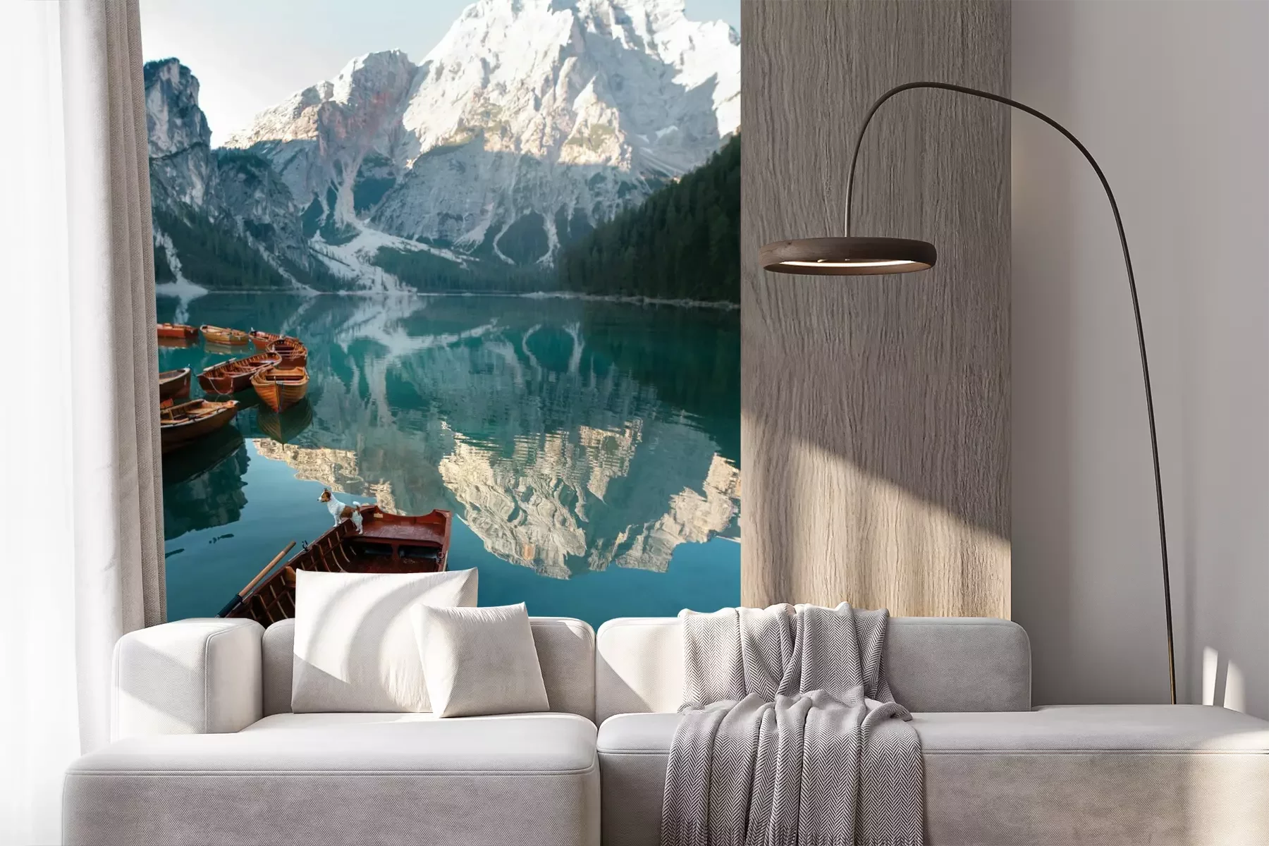 Het materiaal Premium+ is een gestructureerd vinyl op vlies met een gewicht van 255 g/m², dat kleine oneffenheden in de muur effectief camoufleert. De subtiele structuur van fijn zand geeft het oppervlak een exclusieve uitstraling, terwijl de halfmatte afwerking de diepte van de kleuren benadrukt. Het materiaal is dampdoorlatend, waardoor het ook in de keuken en badkamer kan worden gebruikt. De maximale breedte van één baan bedraagt 100 cm – bij grotere afmetingen wordt het fotobehang in meerdere gelijke banen verdeeld. De lijm wordt direct op de muur aangebracht en het behang wordt rand-aan-rand geplakt, wat zorgt voor een esthetisch resultaat zonder zichtbare naden. Het oppervlak kan gemakkelijk worden schoongemaakt door het voorzichtig af te nemen met een vochtige doek.