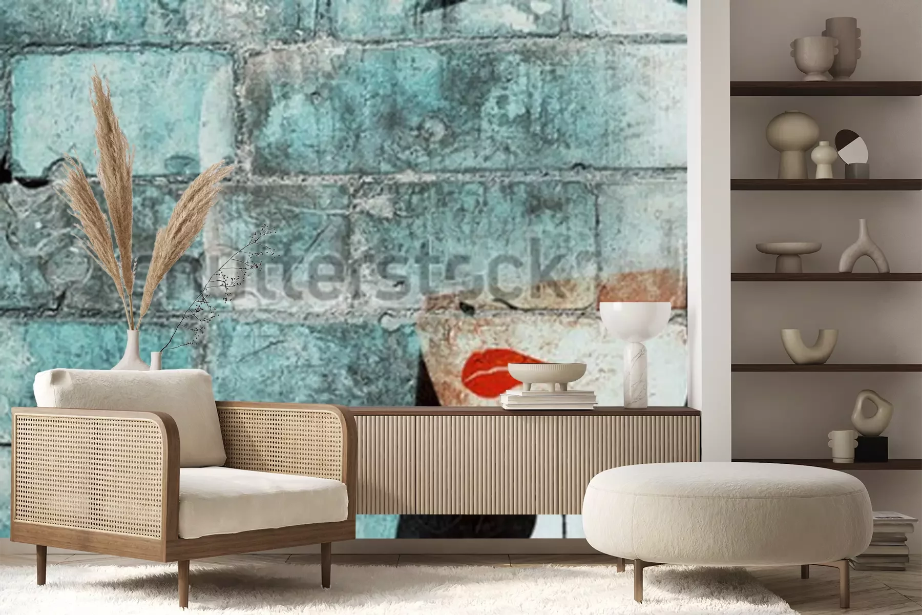 Fotobehang Het gezicht van een vrouw geschilderd op de muur