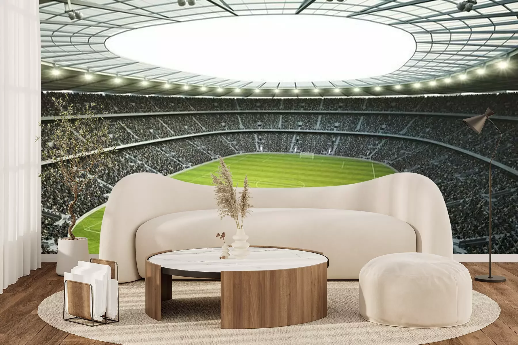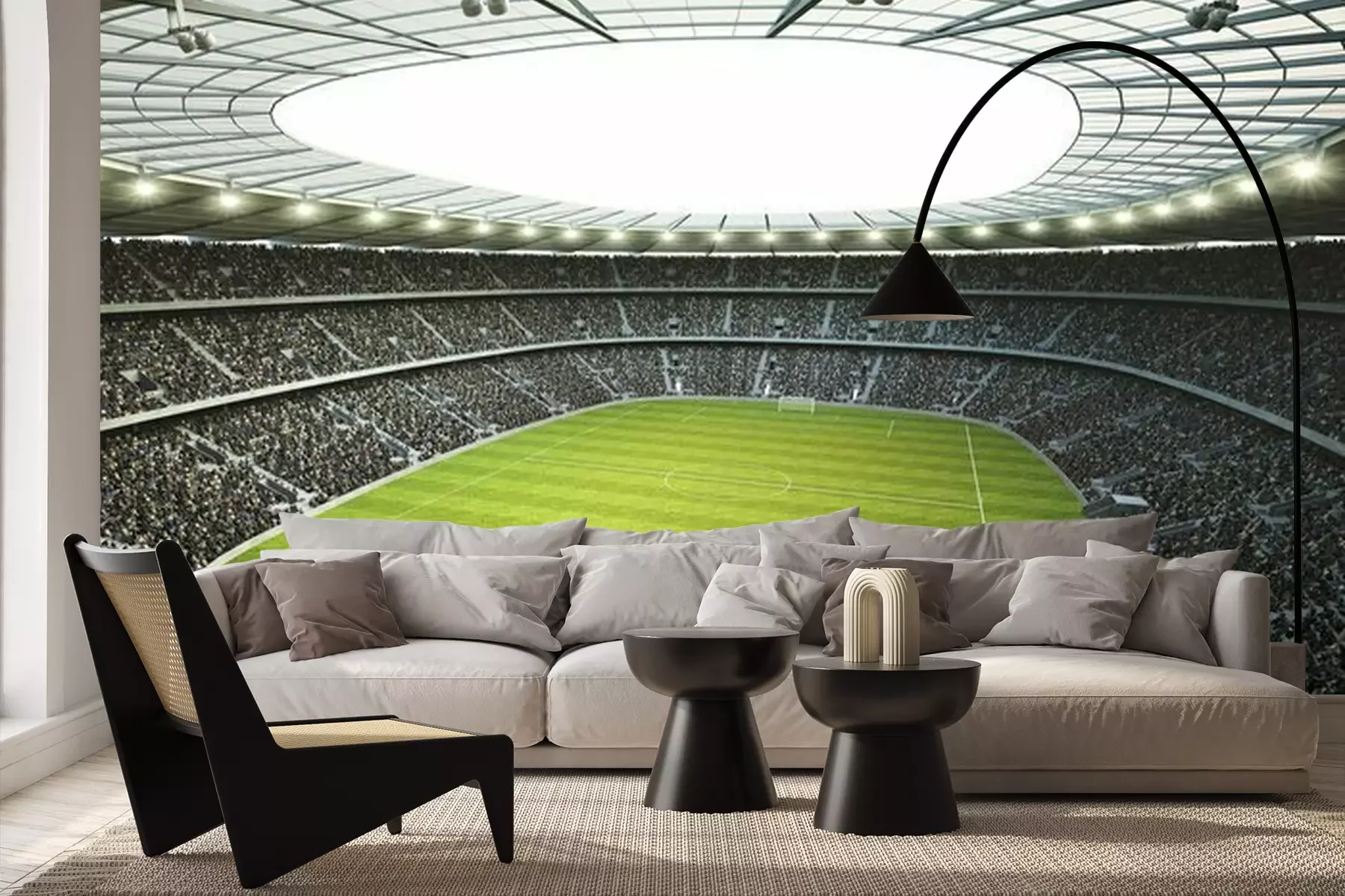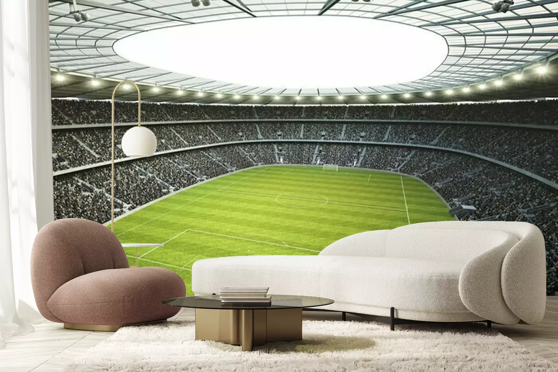 Een voetbalveld verlicht door schijnwerpersFotobehang