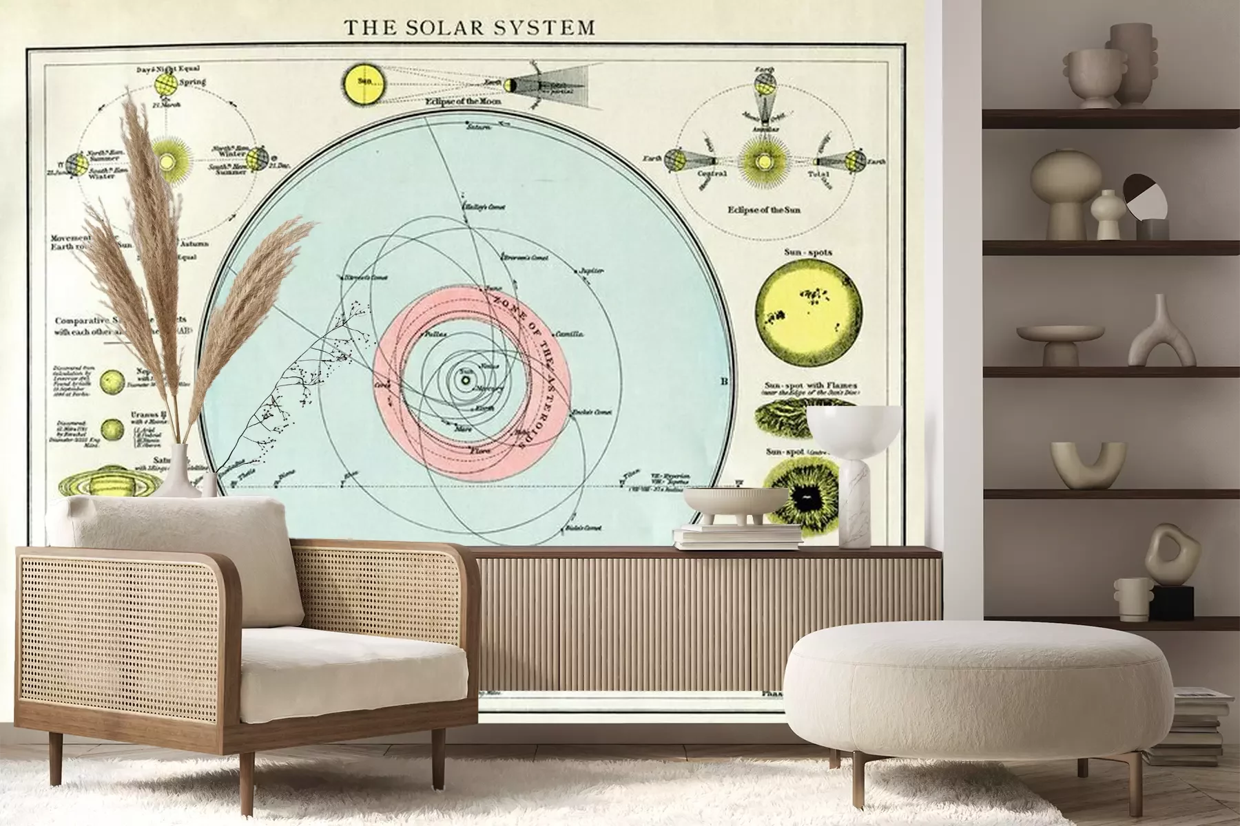 Fotobehang Het zonnestelsel circa 1895 kaart met engels tekst