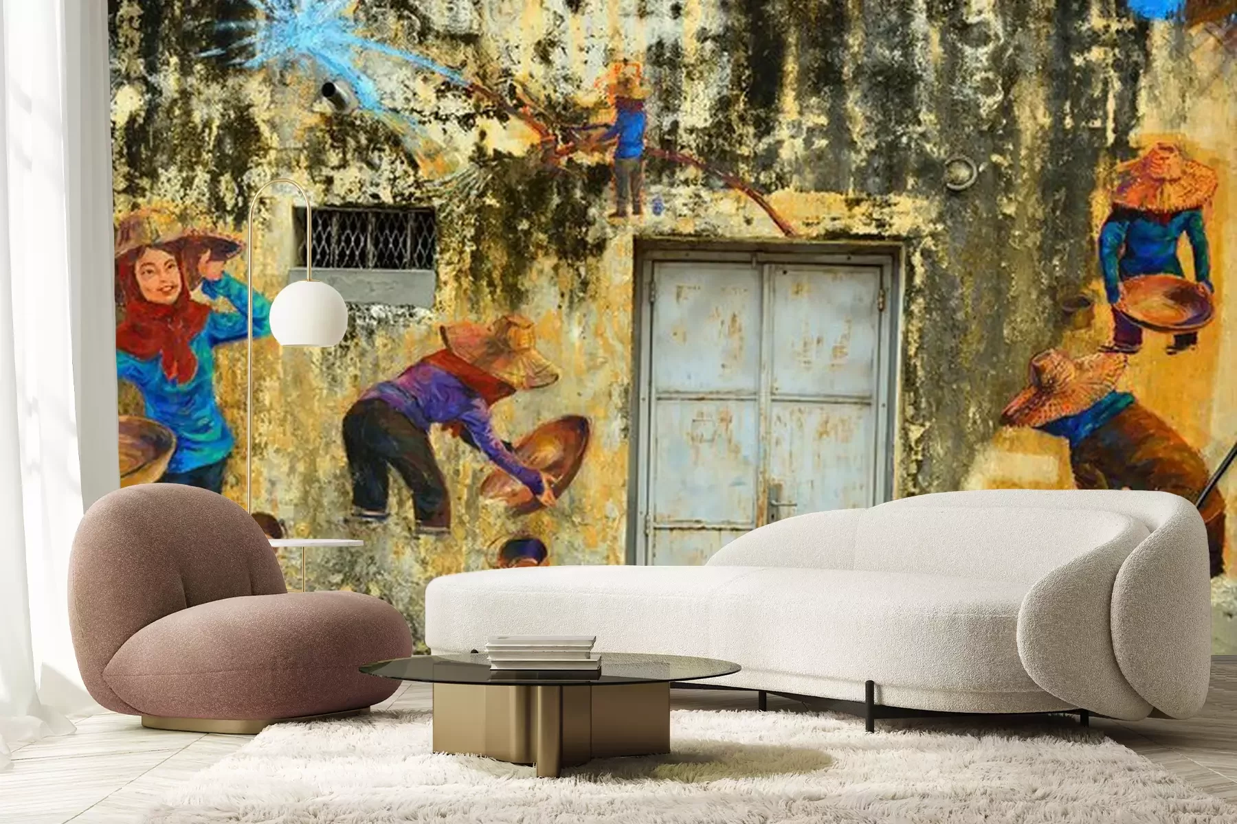 Het materiaal Premium is een glad vinyl op vlies, dat bestand is tegen uitrekken en vervorming. Het is dampdoorlatend – de muren kunnen vrij ademen – waardoor het geschikt is voor gebruik in de keuken en badkamer. Bij vervuiling kan het materiaal worden afgenomen met een vochtige doek. De maximale breedte van één baan bedraagt 95 of 105 cm, afhankelijk van de beschikbaarheid. Montage vindt plaats met de rand-aan-rand methode, wat een esthetisch resultaat zonder zichtbare naden oplevert. Omdat de lijm rechtstreeks op de muur wordt aangebracht, verloopt de installatie van het fotobehang snel en eenvoudig.
