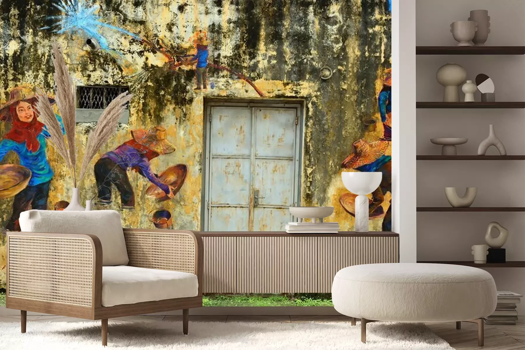 Het materiaal Premium+ is een gestructureerd vinyl op vlies met een gewicht van 255 g/m², dat kleine oneffenheden in de muur effectief camoufleert. De subtiele structuur van fijn zand geeft het oppervlak een exclusieve uitstraling, terwijl de halfmatte afwerking de diepte van de kleuren benadrukt. Het materiaal is dampdoorlatend, waardoor het ook in de keuken en badkamer kan worden gebruikt. De maximale breedte van één baan bedraagt 100 cm – bij grotere afmetingen wordt het fotobehang in meerdere gelijke banen verdeeld. De lijm wordt direct op de muur aangebracht en het behang wordt rand-aan-rand geplakt, wat zorgt voor een esthetisch resultaat zonder zichtbare naden. Het oppervlak kan gemakkelijk worden schoongemaakt door het voorzichtig af te nemen met een vochtige doek.