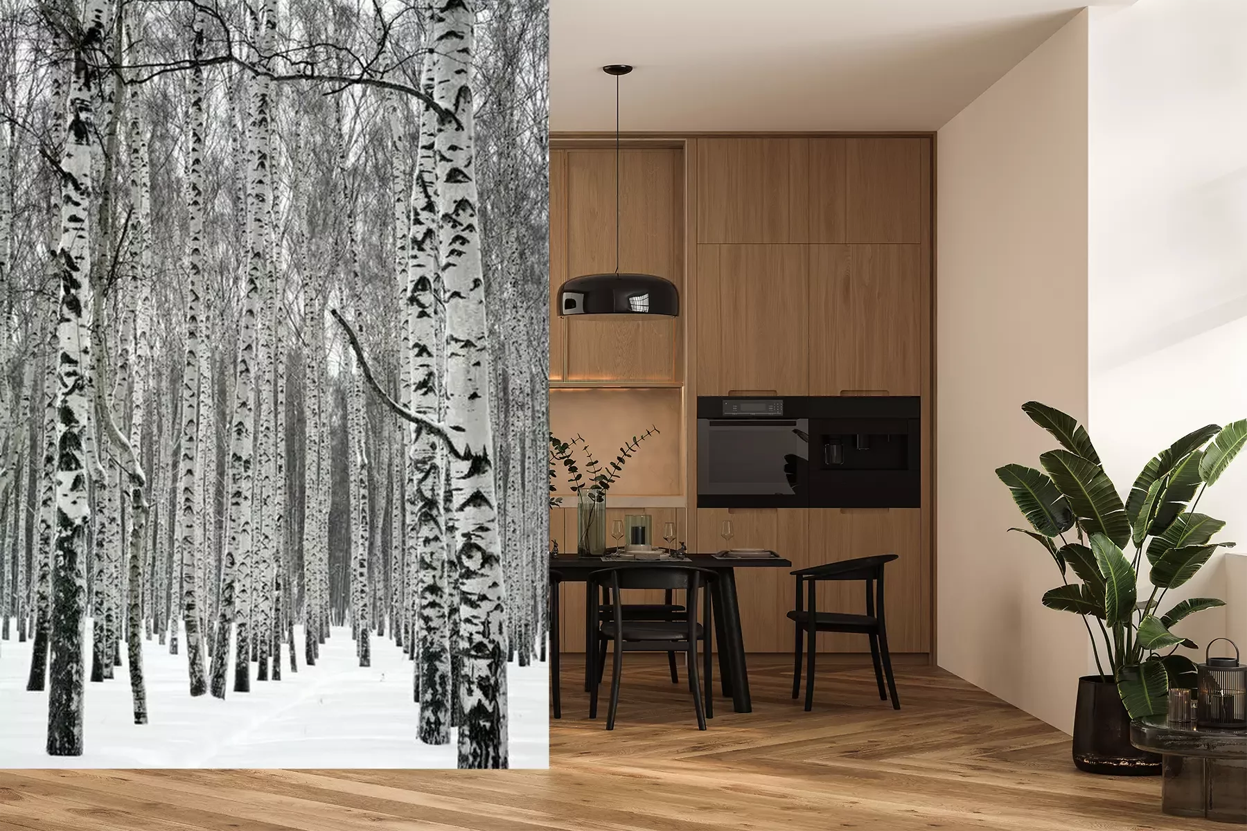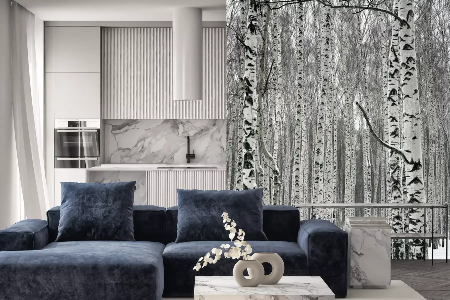 Zwart-witte berkenstammetjesFotobehang