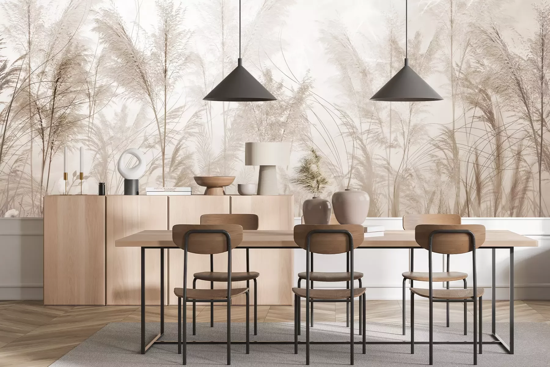 Het materiaal Premium+ is een gestructureerd vinyl op vlies met een gewicht van 255 g/m², dat kleine oneffenheden in de muur effectief camoufleert. De subtiele structuur van fijn zand geeft het oppervlak een exclusieve uitstraling, terwijl de halfmatte afwerking de diepte van de kleuren benadrukt. Het materiaal is dampdoorlatend, waardoor het ook in de keuken en badkamer kan worden gebruikt. De maximale breedte van één baan bedraagt 100 cm – bij grotere afmetingen wordt het fotobehang in meerdere gelijke banen verdeeld. De lijm wordt direct op de muur aangebracht en het behang wordt rand-aan-rand geplakt, wat zorgt voor een esthetisch resultaat zonder zichtbare naden. Het oppervlak kan gemakkelijk worden schoongemaakt door het voorzichtig af te nemen met een vochtige doek.