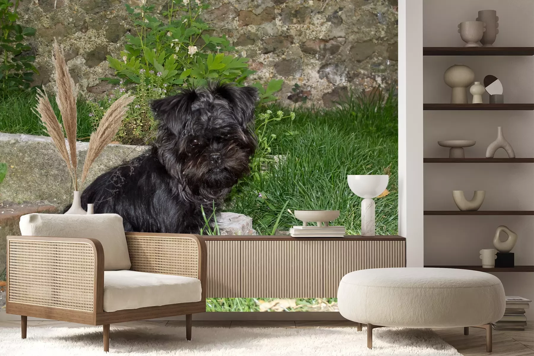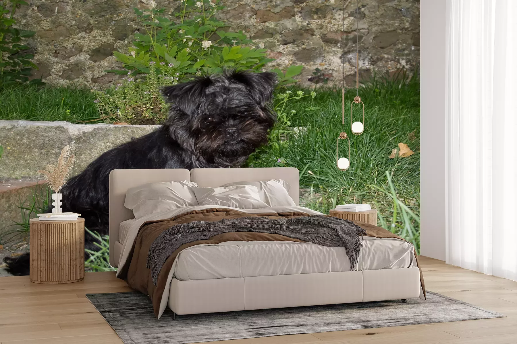 Het materiaal Premium+ is een gestructureerd vinyl op vlies met een gewicht van 255 g/m², dat kleine oneffenheden in de muur effectief camoufleert. De subtiele structuur van fijn zand geeft het oppervlak een exclusieve uitstraling, terwijl de halfmatte afwerking de diepte van de kleuren benadrukt. Het materiaal is dampdoorlatend, waardoor het ook in de keuken en badkamer kan worden gebruikt. De maximale breedte van één baan bedraagt 100 cm – bij grotere afmetingen wordt het fotobehang in meerdere gelijke banen verdeeld. De lijm wordt direct op de muur aangebracht en het behang wordt rand-aan-rand geplakt, wat zorgt voor een esthetisch resultaat zonder zichtbare naden. Het oppervlak kan gemakkelijk worden schoongemaakt door het voorzichtig af te nemen met een vochtige doek.