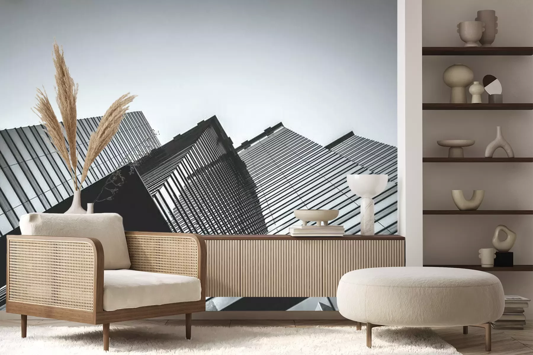 Fotobehang Hong Kong Commercial Building Close Up; Black and White style