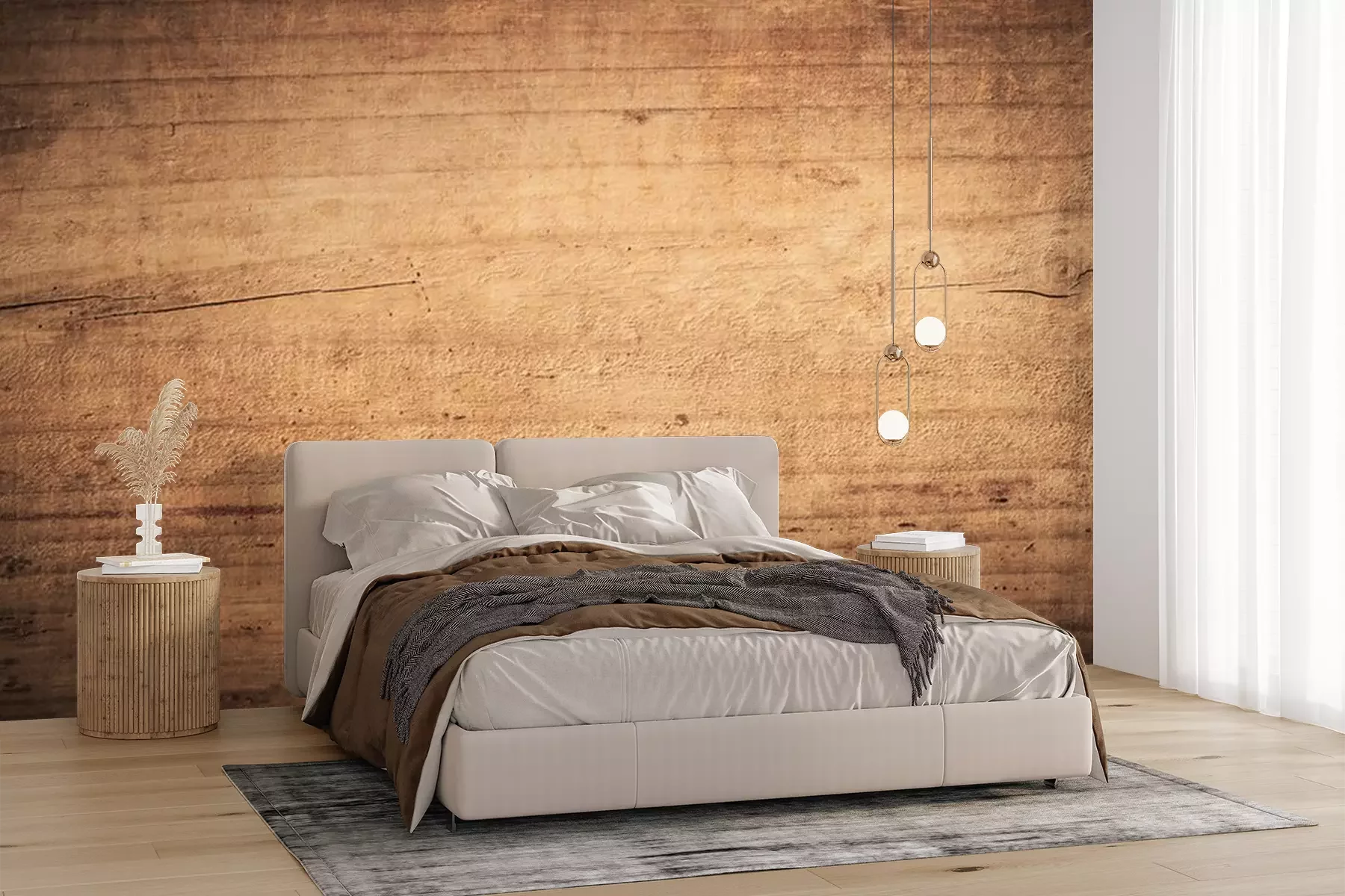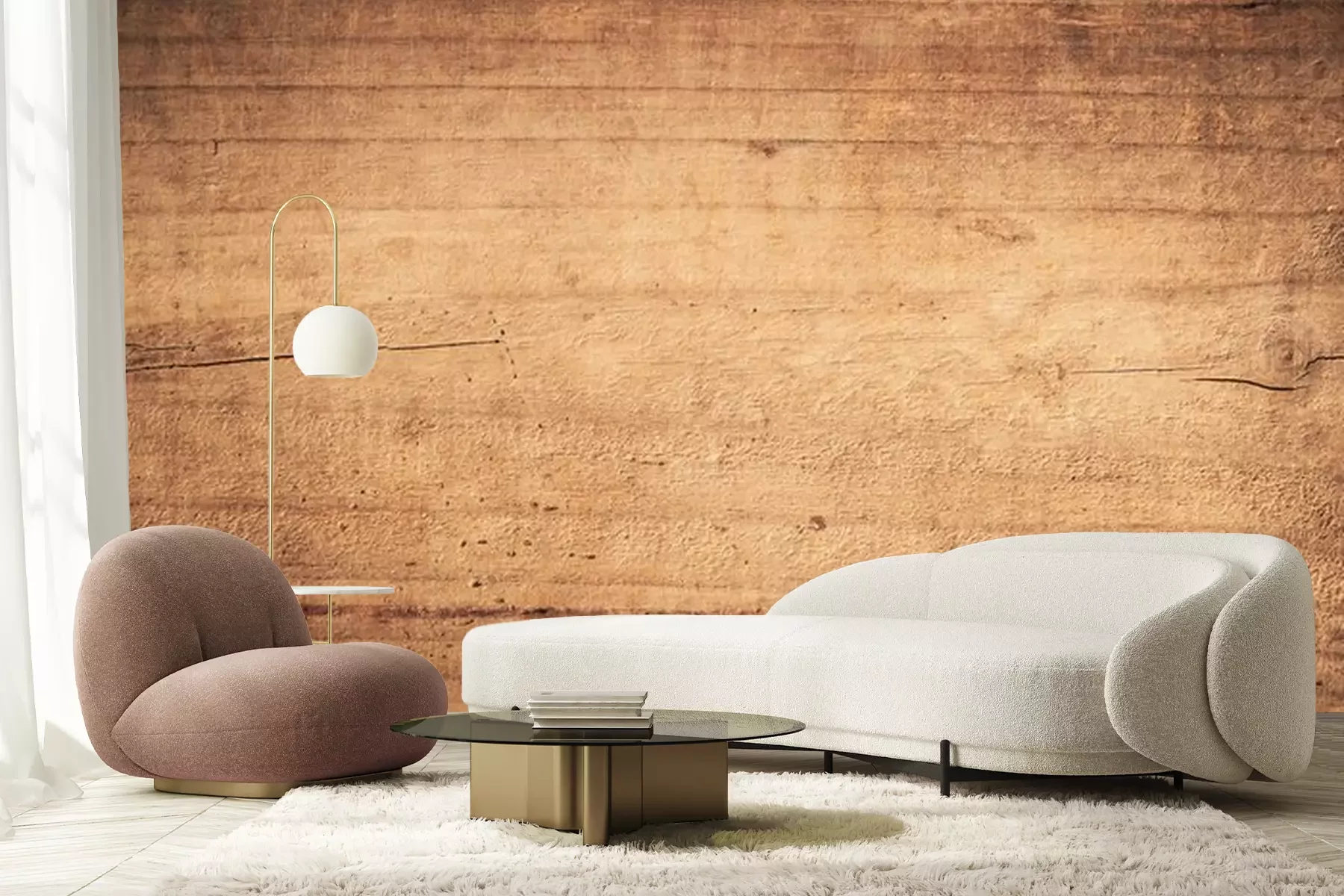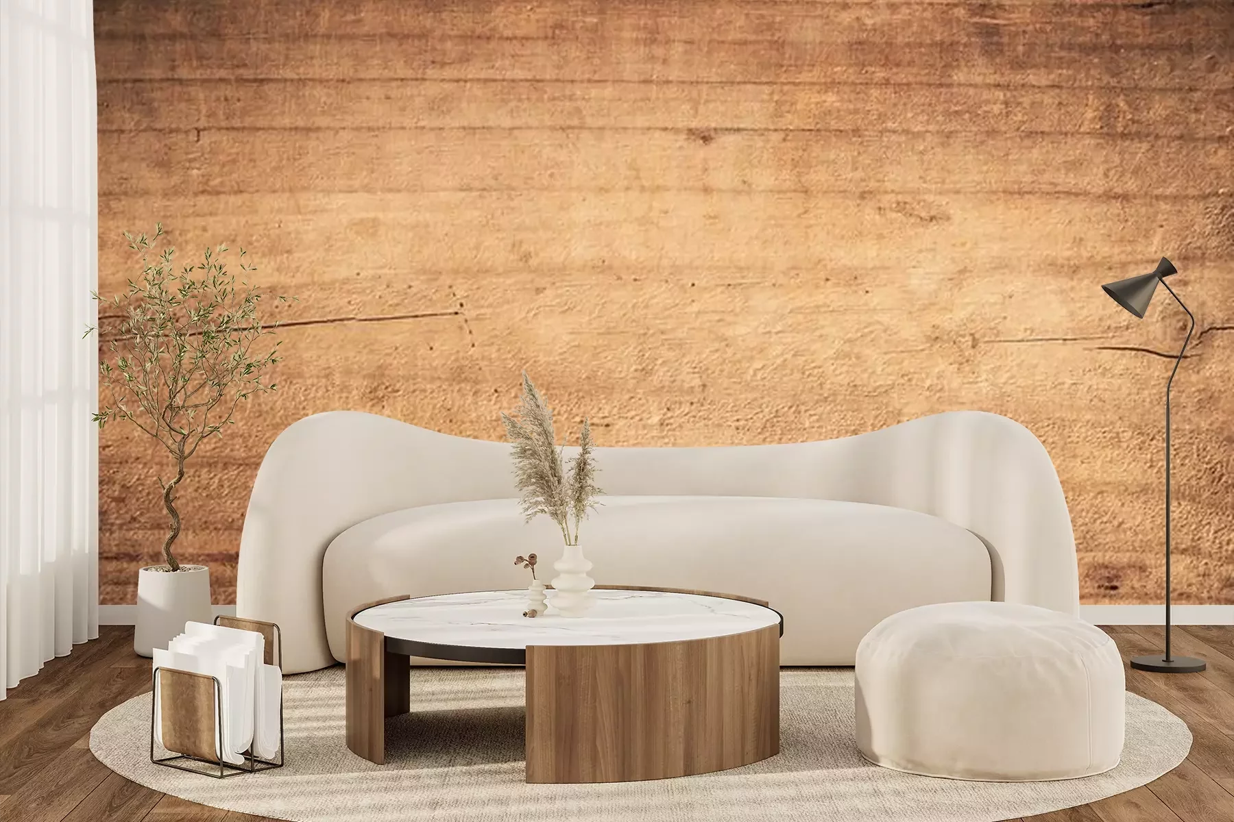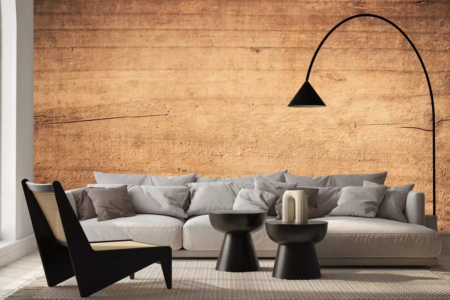 Fotobehang Hout gegeten door houtwormen