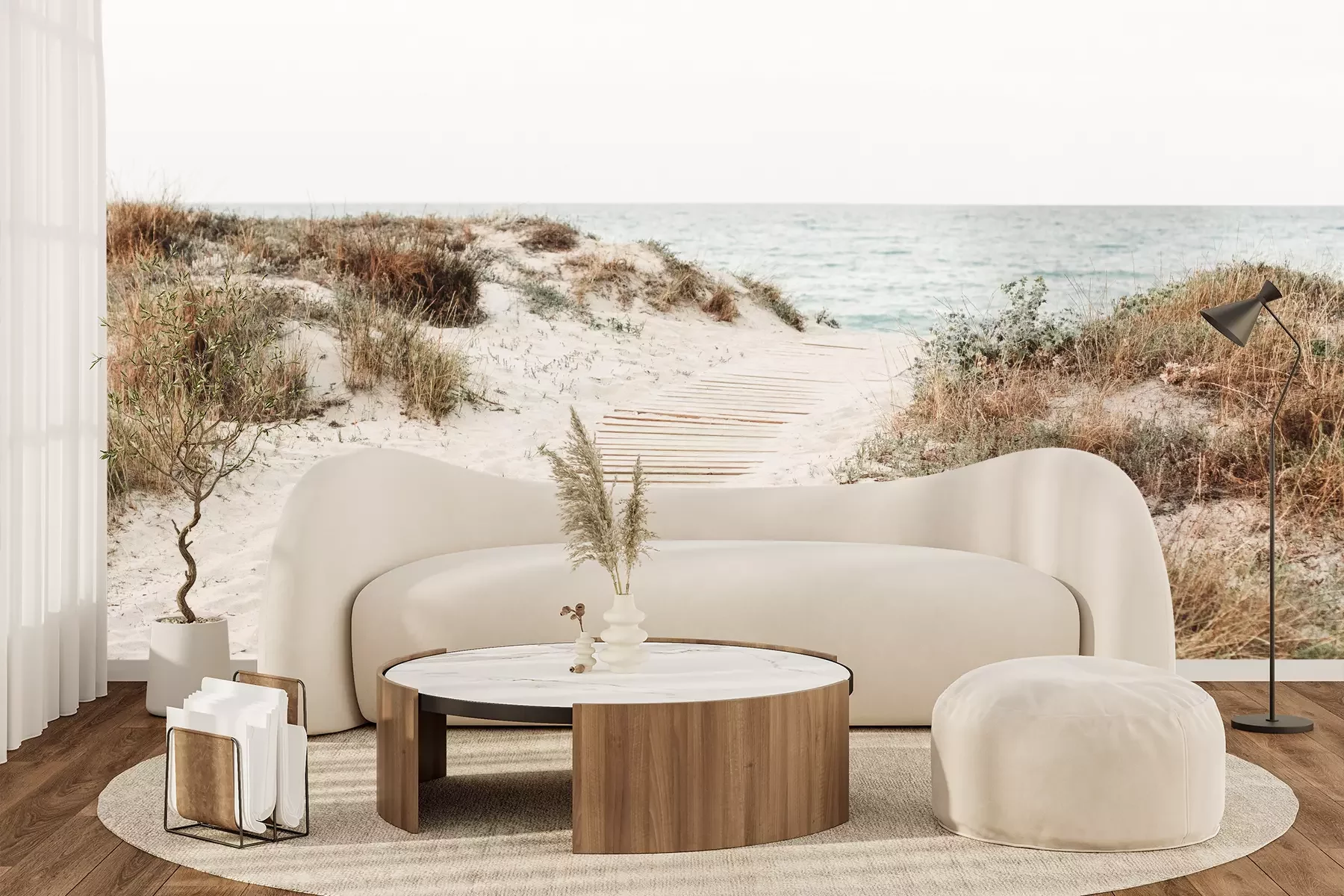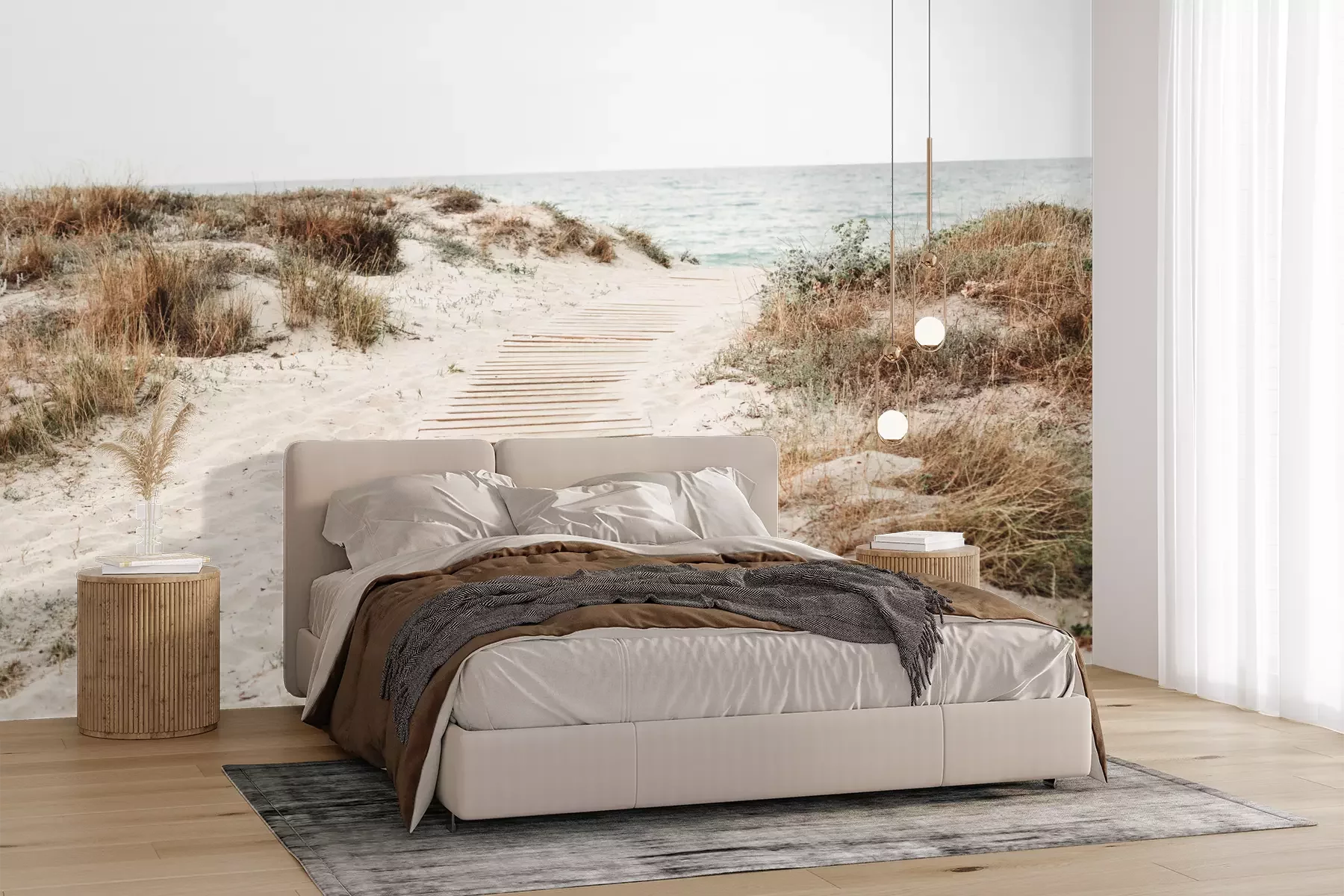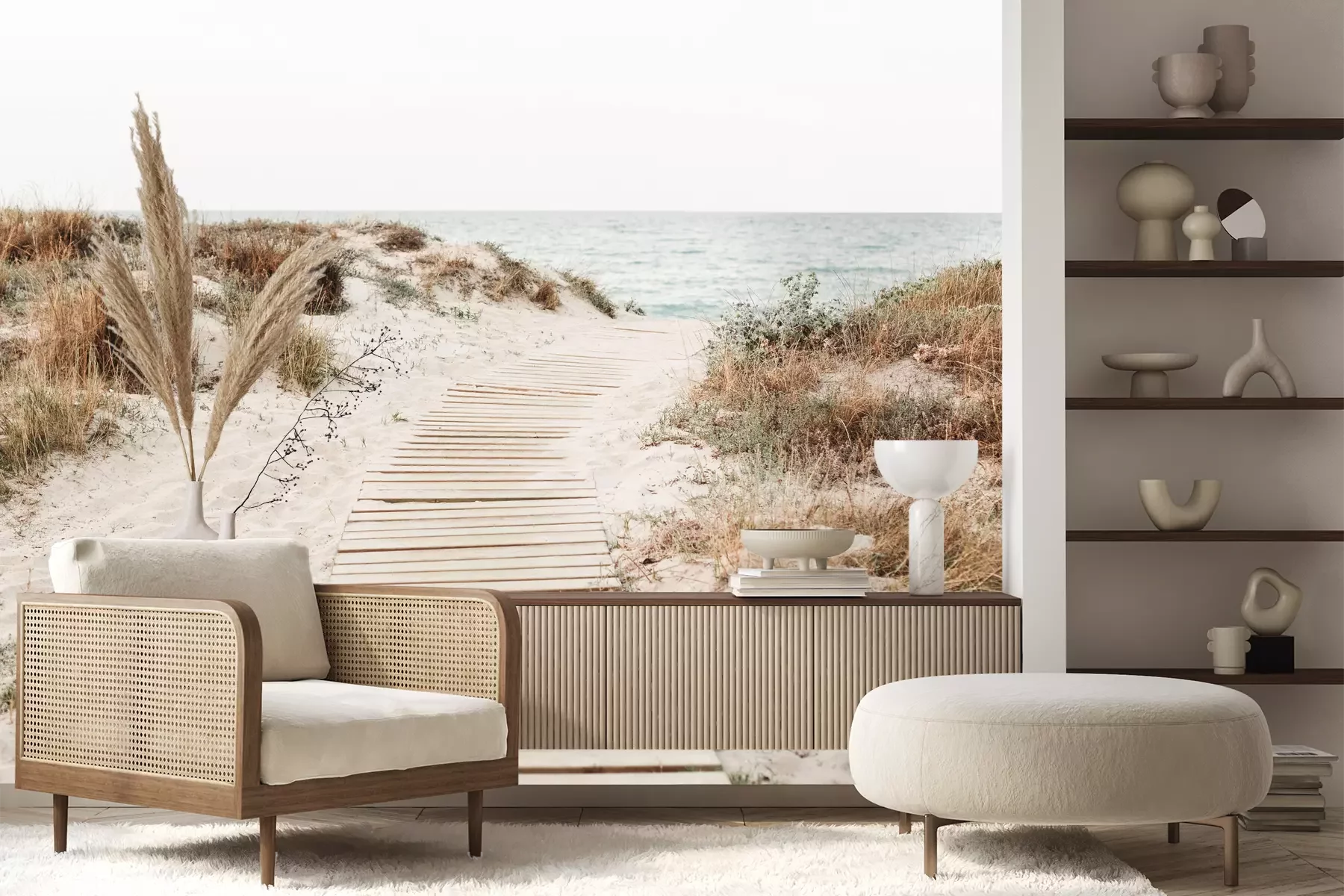 Het materiaal Premium+ is een gestructureerd vinyl op vlies met een gewicht van 255 g/m², dat kleine oneffenheden in de muur effectief camoufleert. De subtiele structuur van fijn zand geeft het oppervlak een exclusieve uitstraling, terwijl de halfmatte afwerking de diepte van de kleuren benadrukt. Het materiaal is dampdoorlatend, waardoor het ook in de keuken en badkamer kan worden gebruikt. De maximale breedte van één baan bedraagt 100 cm – bij grotere afmetingen wordt het fotobehang in meerdere gelijke banen verdeeld. De lijm wordt direct op de muur aangebracht en het behang wordt rand-aan-rand geplakt, wat zorgt voor een esthetisch resultaat zonder zichtbare naden. Het oppervlak kan gemakkelijk worden schoongemaakt door het voorzichtig af te nemen met een vochtige doek.