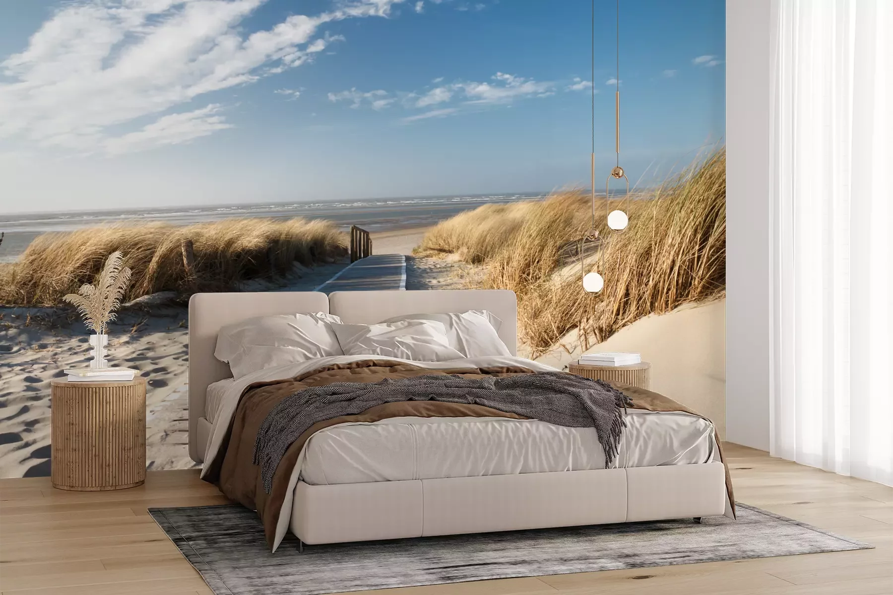 Het materiaal Premium+ is een gestructureerd vinyl op vlies met een gewicht van 255 g/m², dat kleine oneffenheden in de muur effectief camoufleert. De subtiele structuur van fijn zand geeft het oppervlak een exclusieve uitstraling, terwijl de halfmatte afwerking de diepte van de kleuren benadrukt. Het materiaal is dampdoorlatend, waardoor het ook in de keuken en badkamer kan worden gebruikt. De maximale breedte van één baan bedraagt 100 cm – bij grotere afmetingen wordt het fotobehang in meerdere gelijke banen verdeeld. De lijm wordt direct op de muur aangebracht en het behang wordt rand-aan-rand geplakt, wat zorgt voor een esthetisch resultaat zonder zichtbare naden. Het oppervlak kan gemakkelijk worden schoongemaakt door het voorzichtig af te nemen met een vochtige doek.