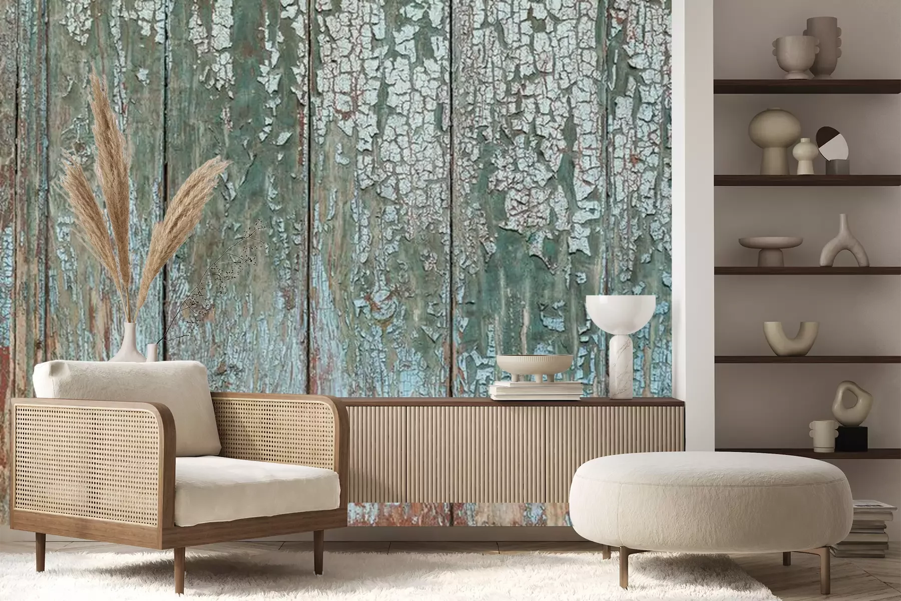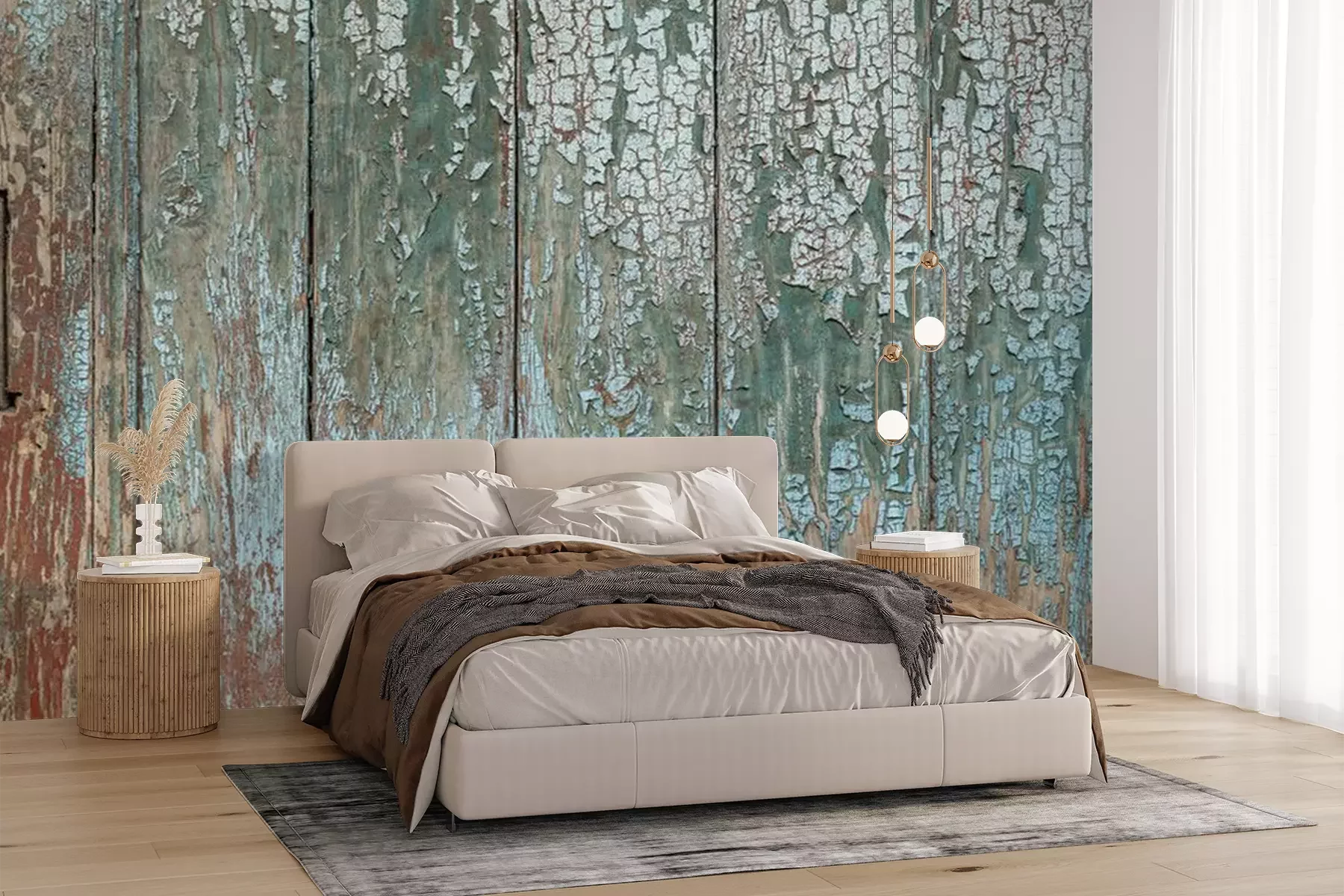 Het materiaal Premium+ is een gestructureerd vinyl op vlies met een gewicht van 255 g/m², dat kleine oneffenheden in de muur effectief camoufleert. De subtiele structuur van fijn zand geeft het oppervlak een exclusieve uitstraling, terwijl de halfmatte afwerking de diepte van de kleuren benadrukt. Het materiaal is dampdoorlatend, waardoor het ook in de keuken en badkamer kan worden gebruikt. De maximale breedte van één baan bedraagt 100 cm – bij grotere afmetingen wordt het fotobehang in meerdere gelijke banen verdeeld. De lijm wordt direct op de muur aangebracht en het behang wordt rand-aan-rand geplakt, wat zorgt voor een esthetisch resultaat zonder zichtbare naden. Het oppervlak kan gemakkelijk worden schoongemaakt door het voorzichtig af te nemen met een vochtige doek.