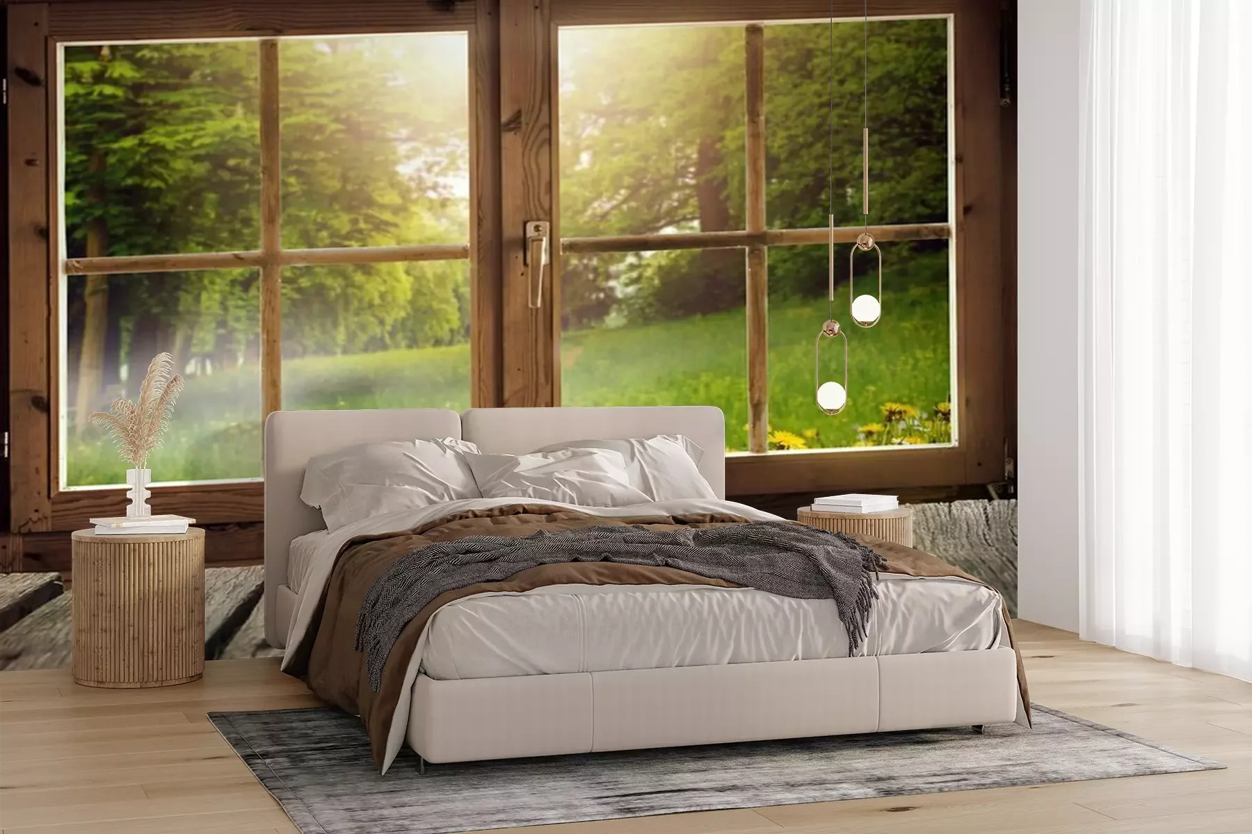 Het materiaal Premium+ is een gestructureerd vinyl op vlies met een gewicht van 255 g/m², dat kleine oneffenheden in de muur effectief camoufleert. De subtiele structuur van fijn zand geeft het oppervlak een exclusieve uitstraling, terwijl de halfmatte afwerking de diepte van de kleuren benadrukt. Het materiaal is dampdoorlatend, waardoor het ook in de keuken en badkamer kan worden gebruikt. De maximale breedte van één baan bedraagt 100 cm – bij grotere afmetingen wordt het fotobehang in meerdere gelijke banen verdeeld. De lijm wordt direct op de muur aangebracht en het behang wordt rand-aan-rand geplakt, wat zorgt voor een esthetisch resultaat zonder zichtbare naden. Het oppervlak kan gemakkelijk worden schoongemaakt door het voorzichtig af te nemen met een vochtige doek.