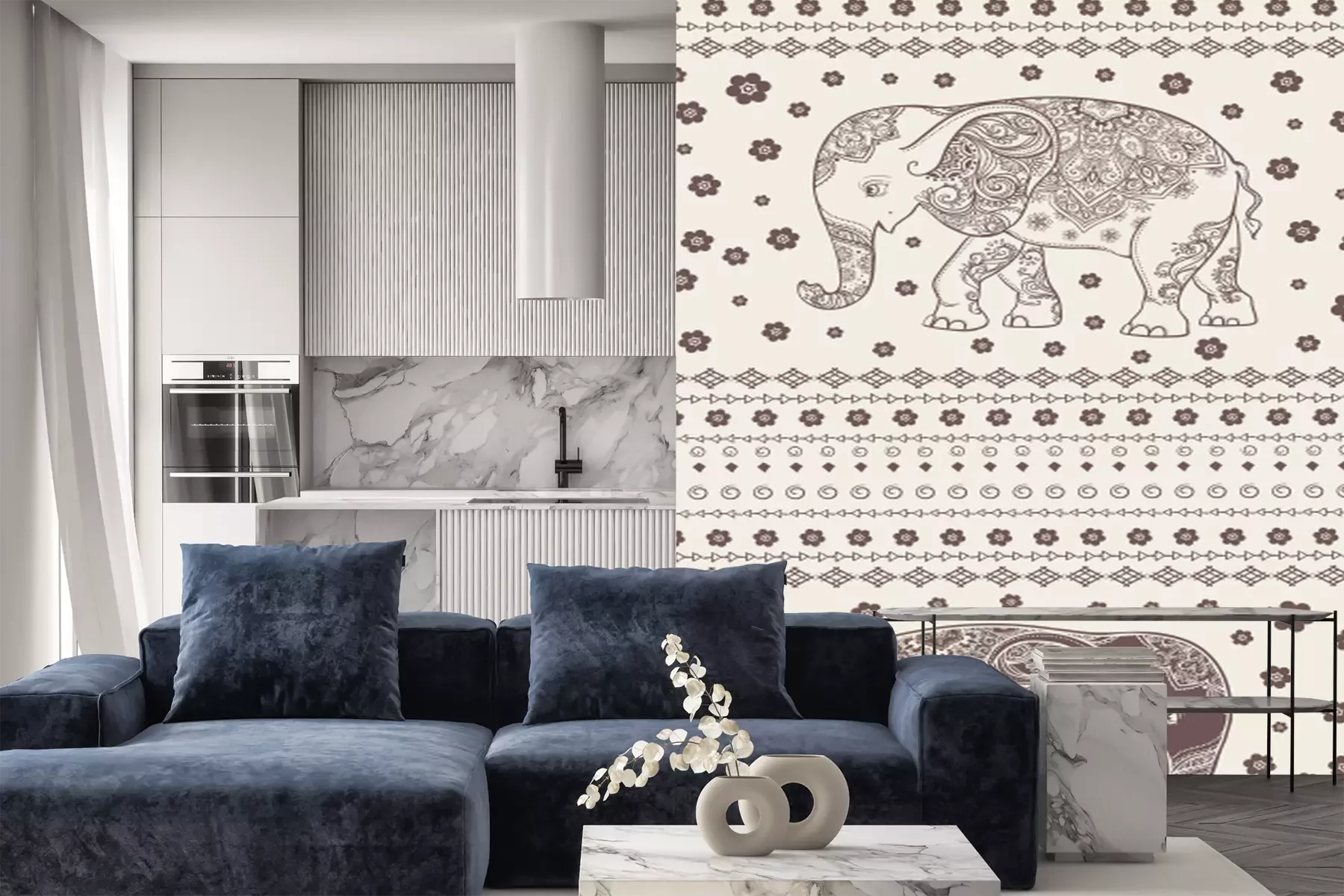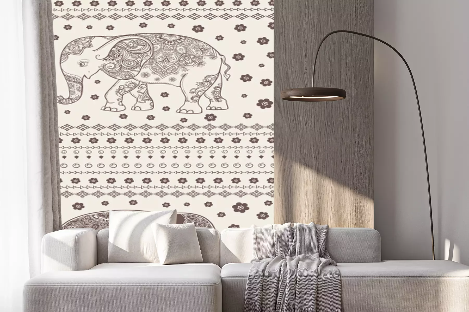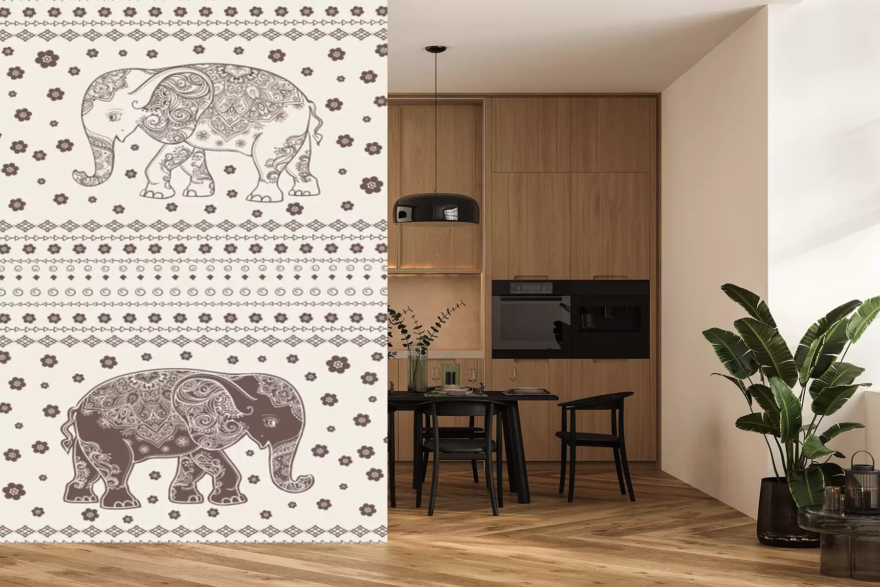 Illustratie van olifanten in retrostijl