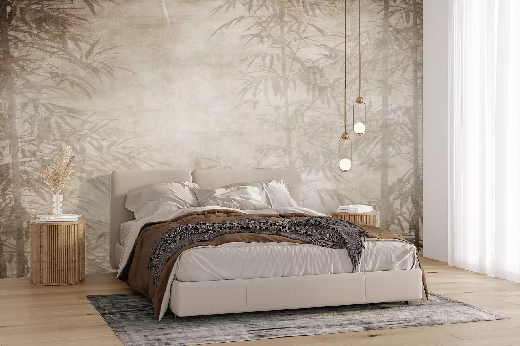 Het materiaal Premium+ is een gestructureerd vinyl op vlies met een gewicht van 255 g/m², dat kleine oneffenheden in de muur effectief camoufleert. De subtiele structuur van fijn zand geeft het oppervlak een exclusieve uitstraling, terwijl de halfmatte afwerking de diepte van de kleuren benadrukt. Het materiaal is dampdoorlatend, waardoor het ook in de keuken en badkamer kan worden gebruikt. De maximale breedte van één baan bedraagt 100 cm – bij grotere afmetingen wordt het fotobehang in meerdere gelijke banen verdeeld. De lijm wordt direct op de muur aangebracht en het behang wordt rand-aan-rand geplakt, wat zorgt voor een esthetisch resultaat zonder zichtbare naden. Het oppervlak kan gemakkelijk worden schoongemaakt door het voorzichtig af te nemen met een vochtige doek.