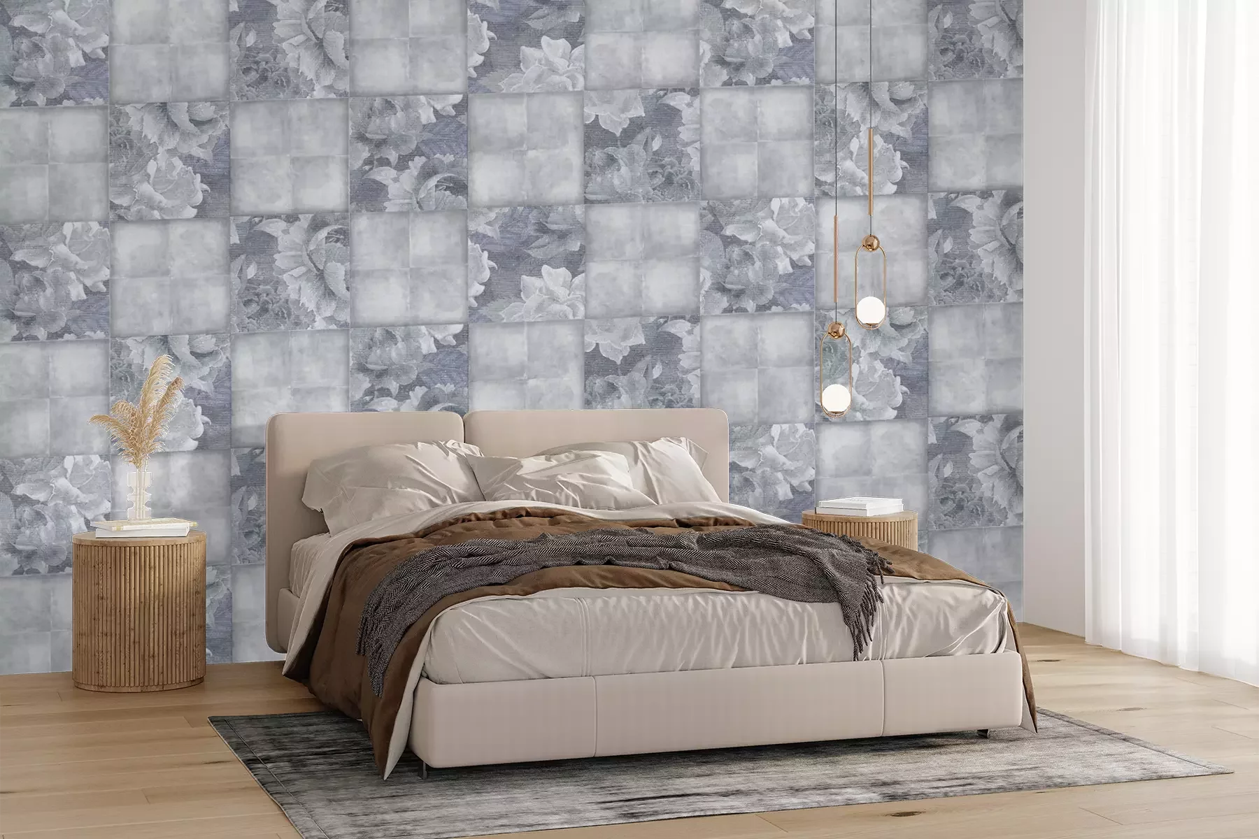 Het materiaal Standard is een hoogwaardig latexmateriaal met een glad, mat oppervlak. Dankzij de HP Latex-printtechnologie zijn de kleuren intens, duurzaam en UV-bestendig, waardoor het patroon jarenlang een onberispelijke uitstraling behoudt. Vervuilde oppervlakken kunnen voorzichtig worden afgeveegd met een droge doek. De maximale breedte van één baan bedraagt 95 cm of 105 cm – afhankelijk van de bestelde fotobehangbreedte. Bij grotere afmetingen wordt het patroon verdeeld over meerdere gelijkmatige banen. Het fotobehang wordt rand-aan-randaangebracht, wat vrijwel onzichtbare naden mogelijk maakt.