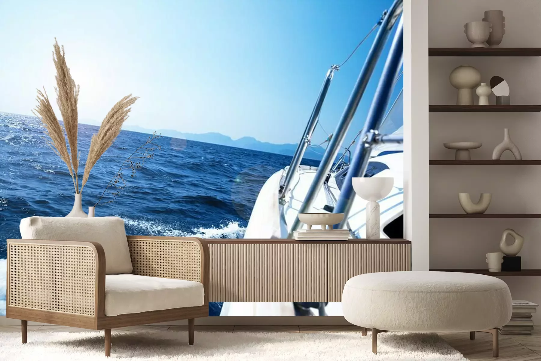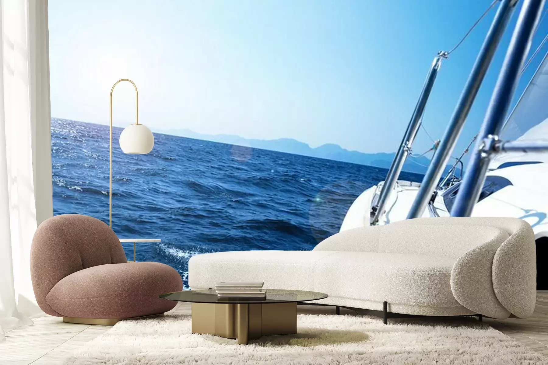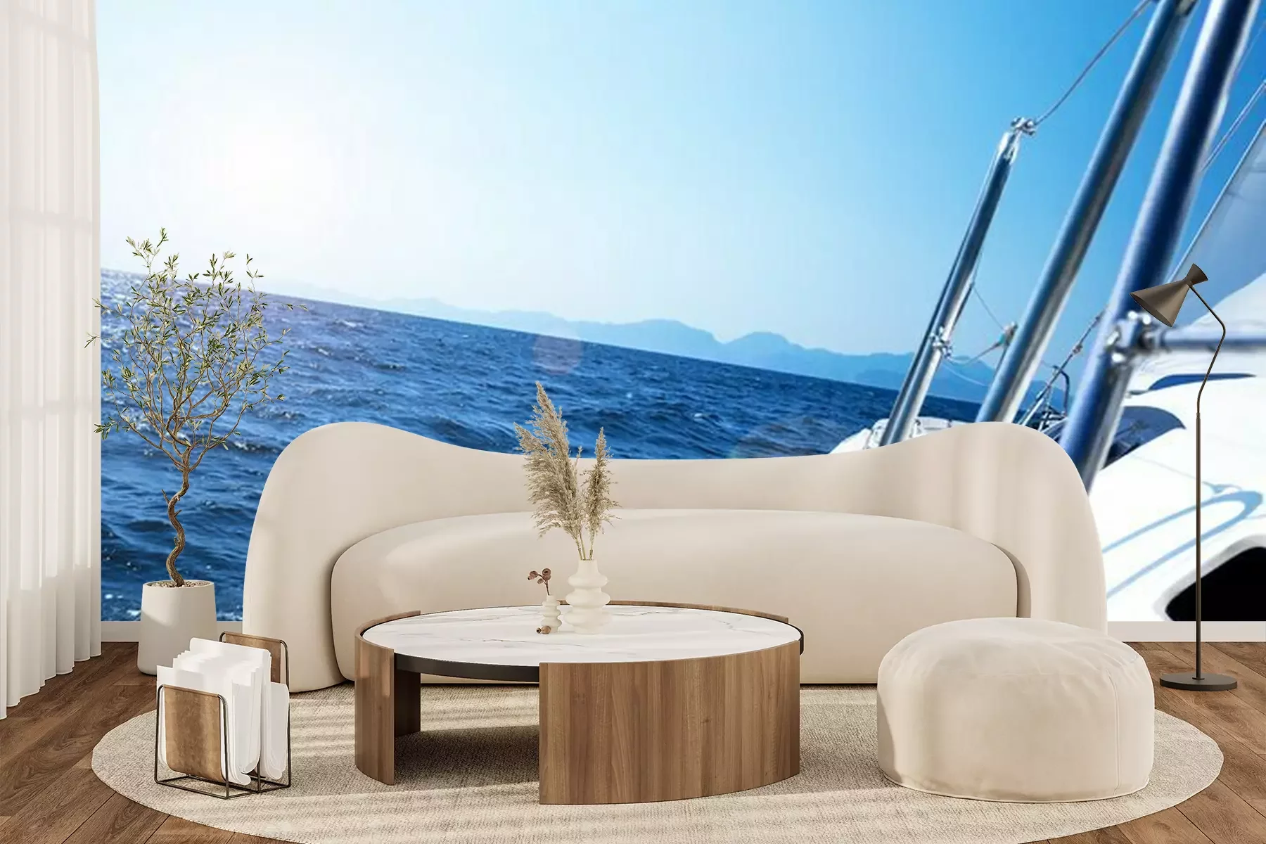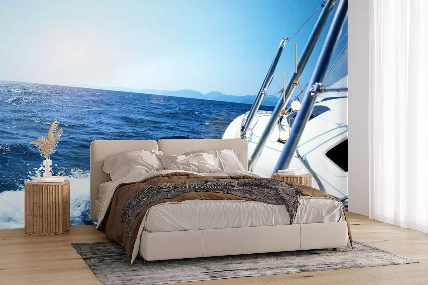 Zeilboot en bergachtig eilandProbleemloze bezorging verzorgd door vertrouwde vervoerders
