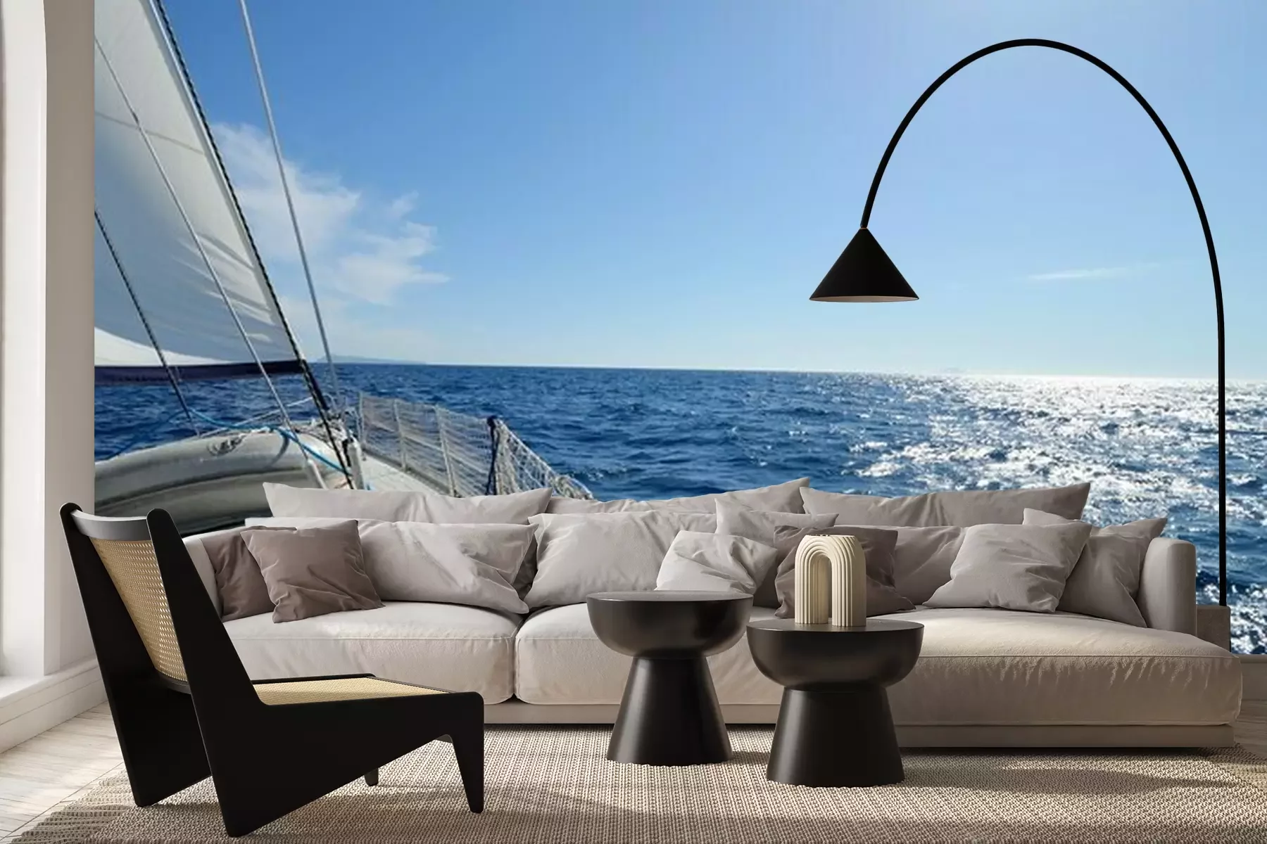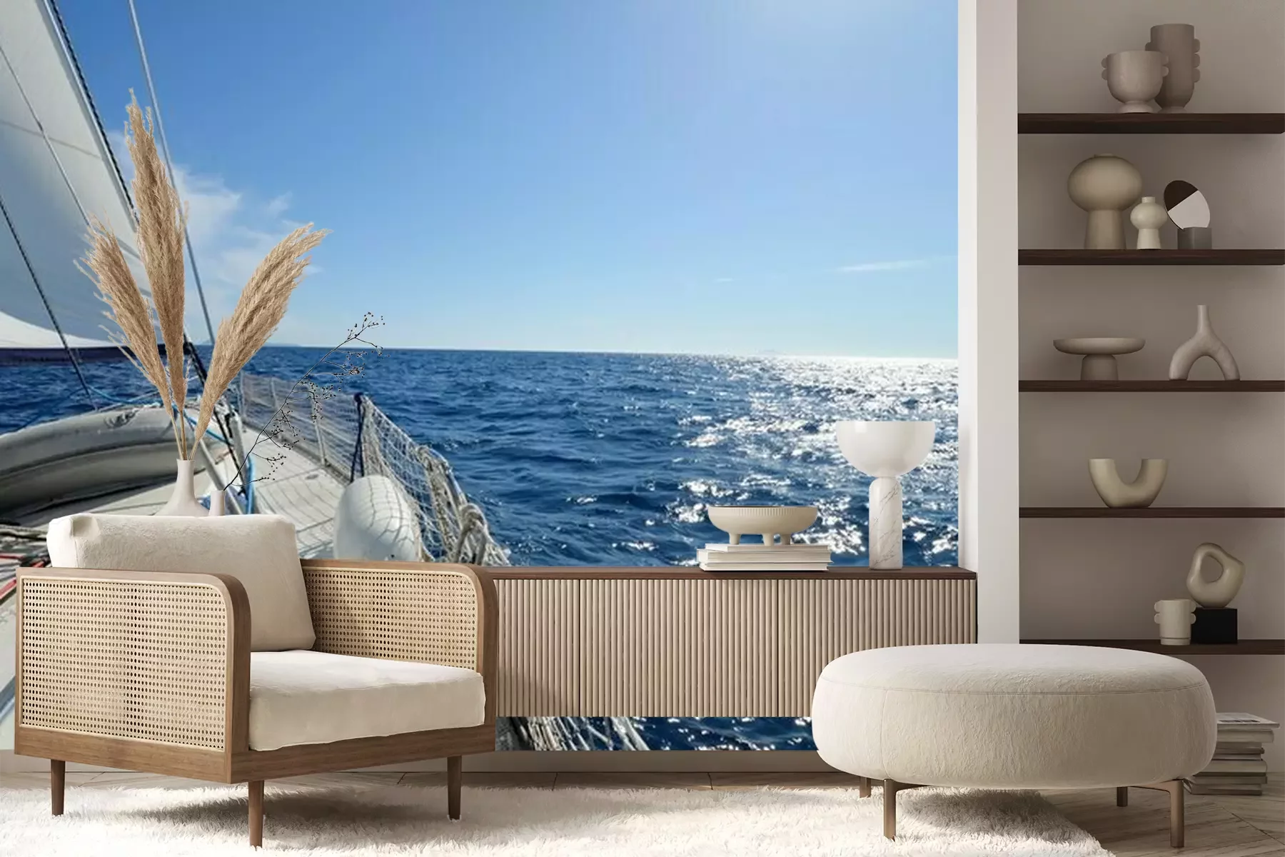Het materiaal Premium+ is een gestructureerd vinyl op vlies met een gewicht van 255 g/m², dat kleine oneffenheden in de muur effectief camoufleert. De subtiele structuur van fijn zand geeft het oppervlak een exclusieve uitstraling, terwijl de halfmatte afwerking de diepte van de kleuren benadrukt. Het materiaal is dampdoorlatend, waardoor het ook in de keuken en badkamer kan worden gebruikt. De maximale breedte van één baan bedraagt 100 cm – bij grotere afmetingen wordt het fotobehang in meerdere gelijke banen verdeeld. De lijm wordt direct op de muur aangebracht en het behang wordt rand-aan-rand geplakt, wat zorgt voor een esthetisch resultaat zonder zichtbare naden. Het oppervlak kan gemakkelijk worden schoongemaakt door het voorzichtig af te nemen met een vochtige doek.