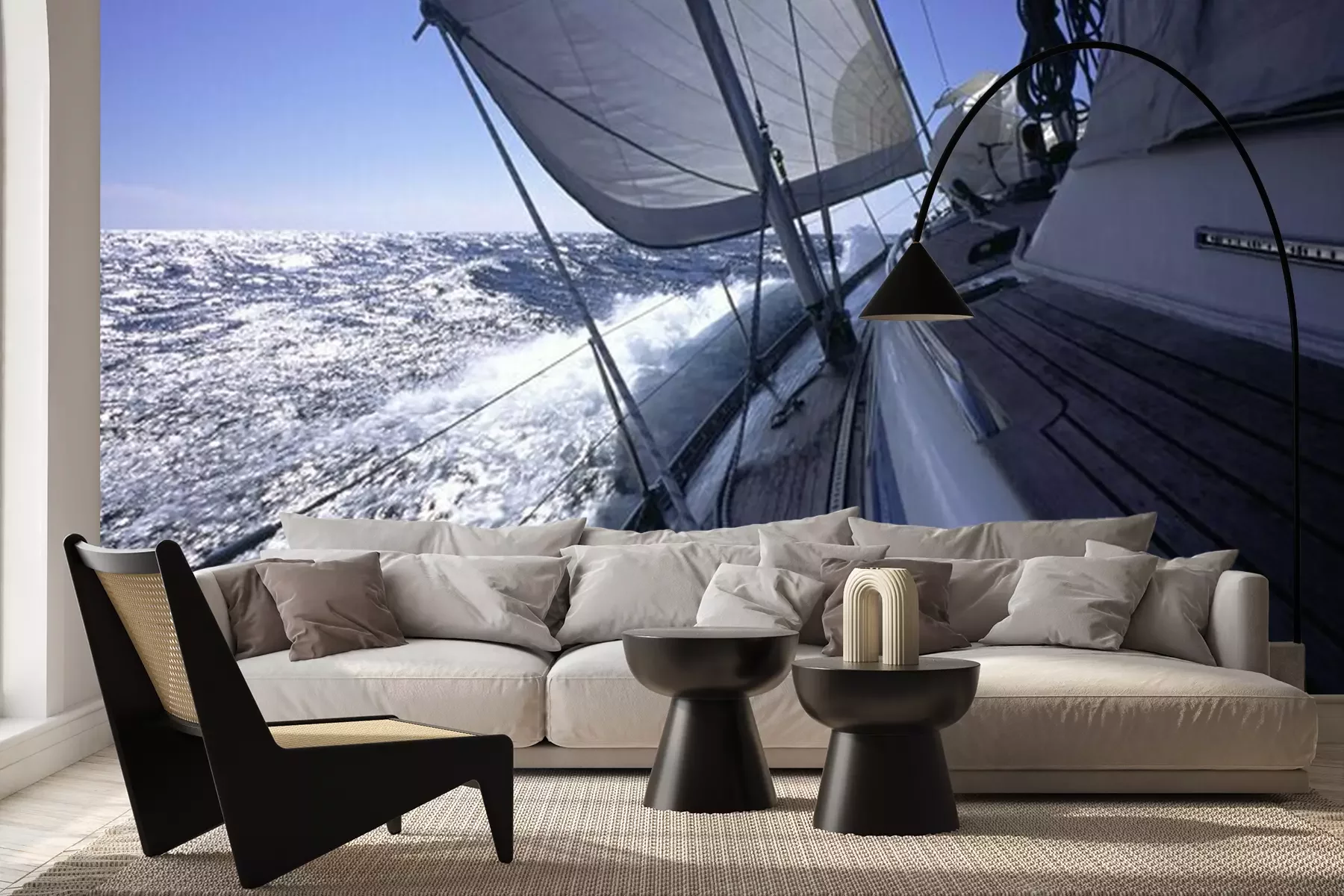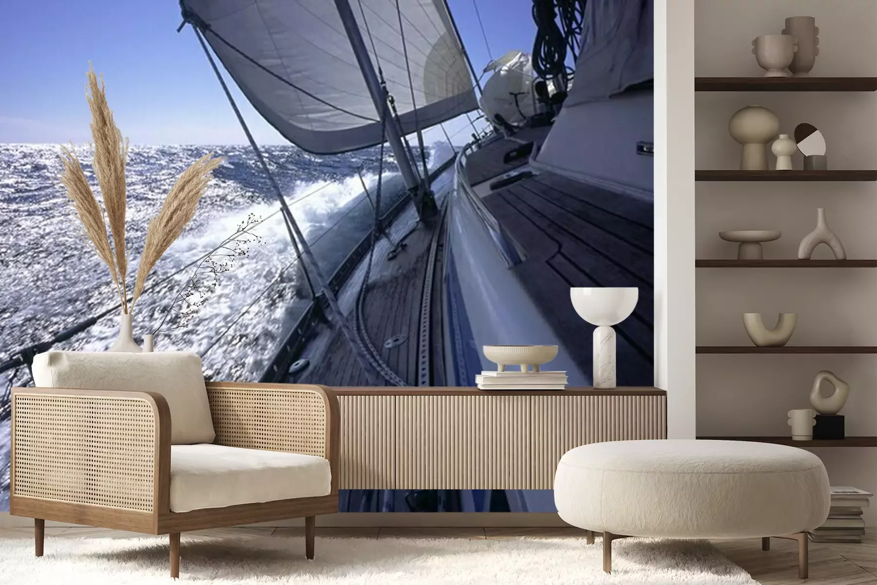 Het materiaal Premium+ is een gestructureerd vinyl op vlies met een gewicht van 255 g/m², dat kleine oneffenheden in de muur effectief camoufleert. De subtiele structuur van fijn zand geeft het oppervlak een exclusieve uitstraling, terwijl de halfmatte afwerking de diepte van de kleuren benadrukt. Het materiaal is dampdoorlatend, waardoor het ook in de keuken en badkamer kan worden gebruikt. De maximale breedte van één baan bedraagt 100 cm – bij grotere afmetingen wordt het fotobehang in meerdere gelijke banen verdeeld. De lijm wordt direct op de muur aangebracht en het behang wordt rand-aan-rand geplakt, wat zorgt voor een esthetisch resultaat zonder zichtbare naden. Het oppervlak kan gemakkelijk worden schoongemaakt door het voorzichtig af te nemen met een vochtige doek.