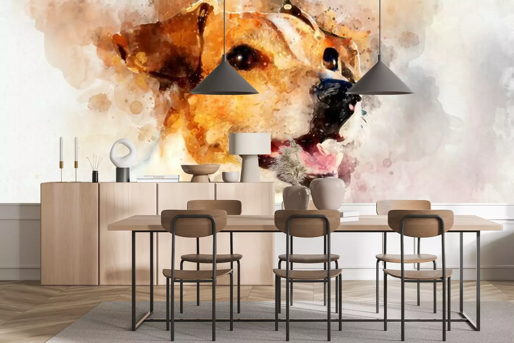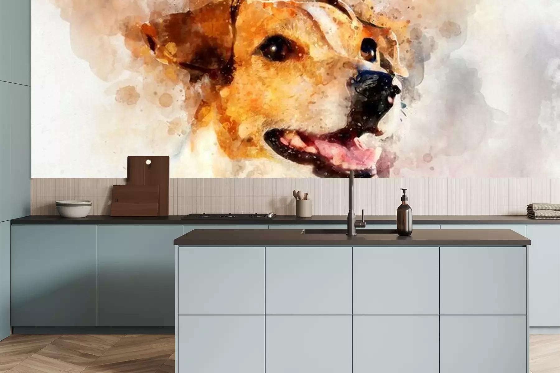 Fotobehang Jack Russell Terrier op aquarel achtergrond