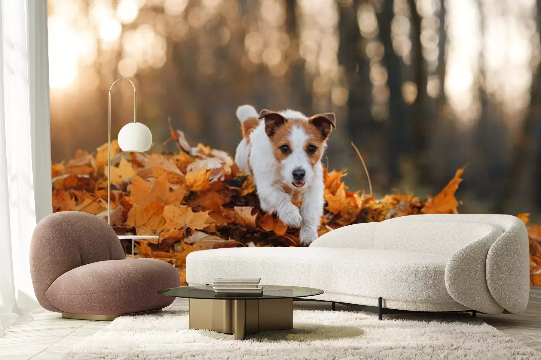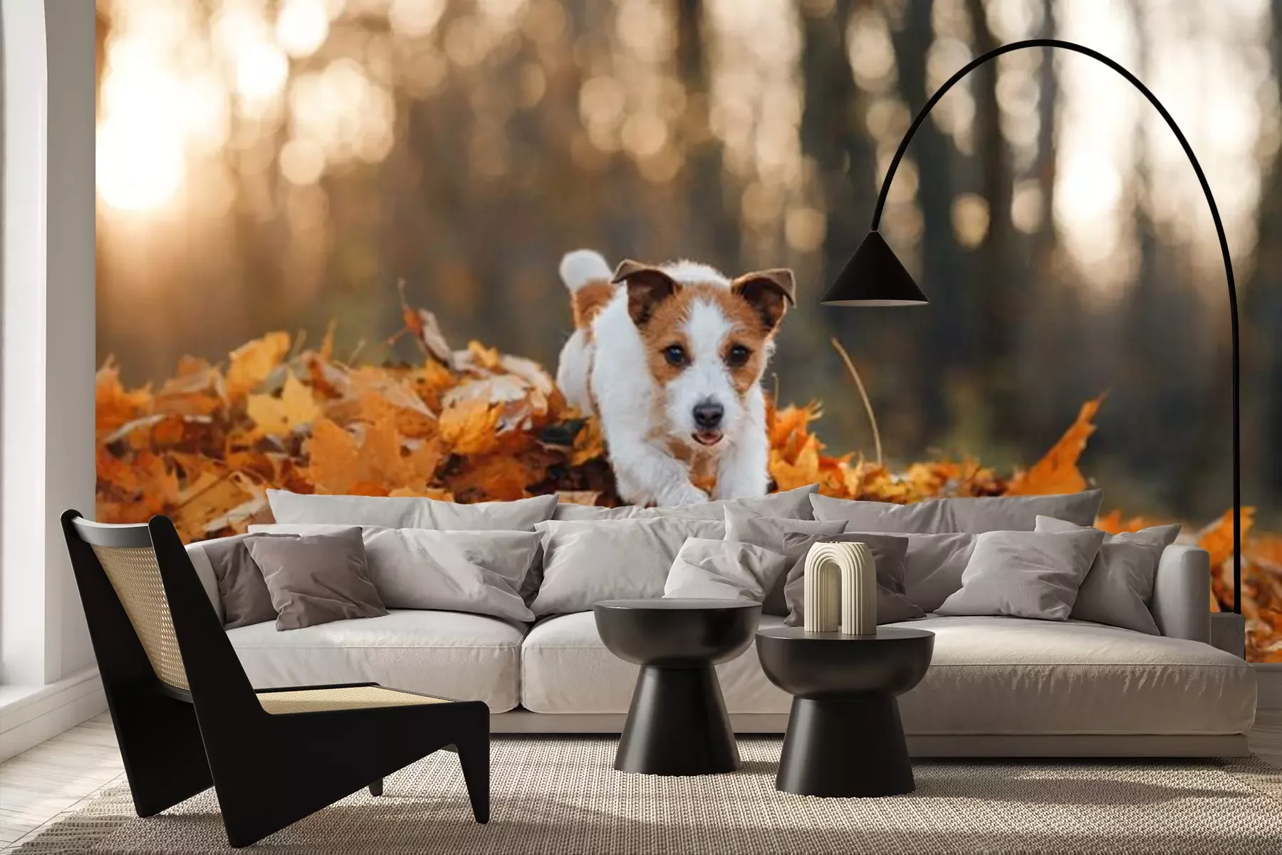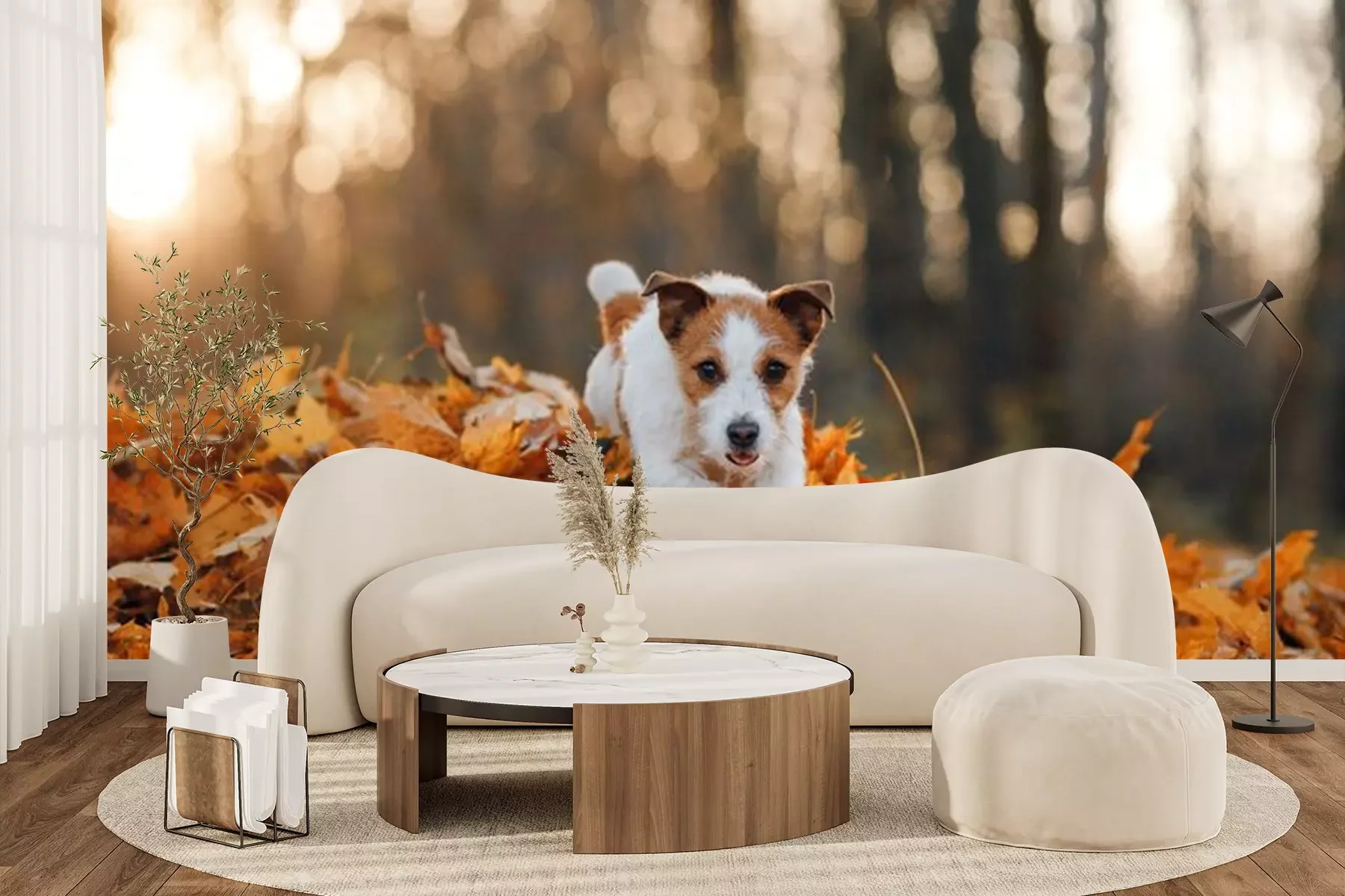Fotobehang Jack russell terriër rent in een park in de herfst