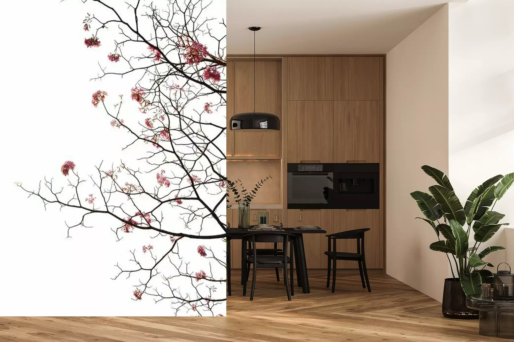 Het materiaal Premium is een glad vinyl op vlies, dat bestand is tegen uitrekken en vervorming. Het is dampdoorlatend – de muren kunnen vrij ademen – waardoor het geschikt is voor gebruik in de keuken en badkamer. Bij vervuiling kan het materiaal worden afgenomen met een vochtige doek. De maximale breedte van één baan bedraagt 95 of 105 cm, afhankelijk van de beschikbaarheid. Montage vindt plaats met de rand-aan-rand methode, wat een esthetisch resultaat zonder zichtbare naden oplevert. Omdat de lijm rechtstreeks op de muur wordt aangebracht, verloopt de installatie van het fotobehang snel en eenvoudig.