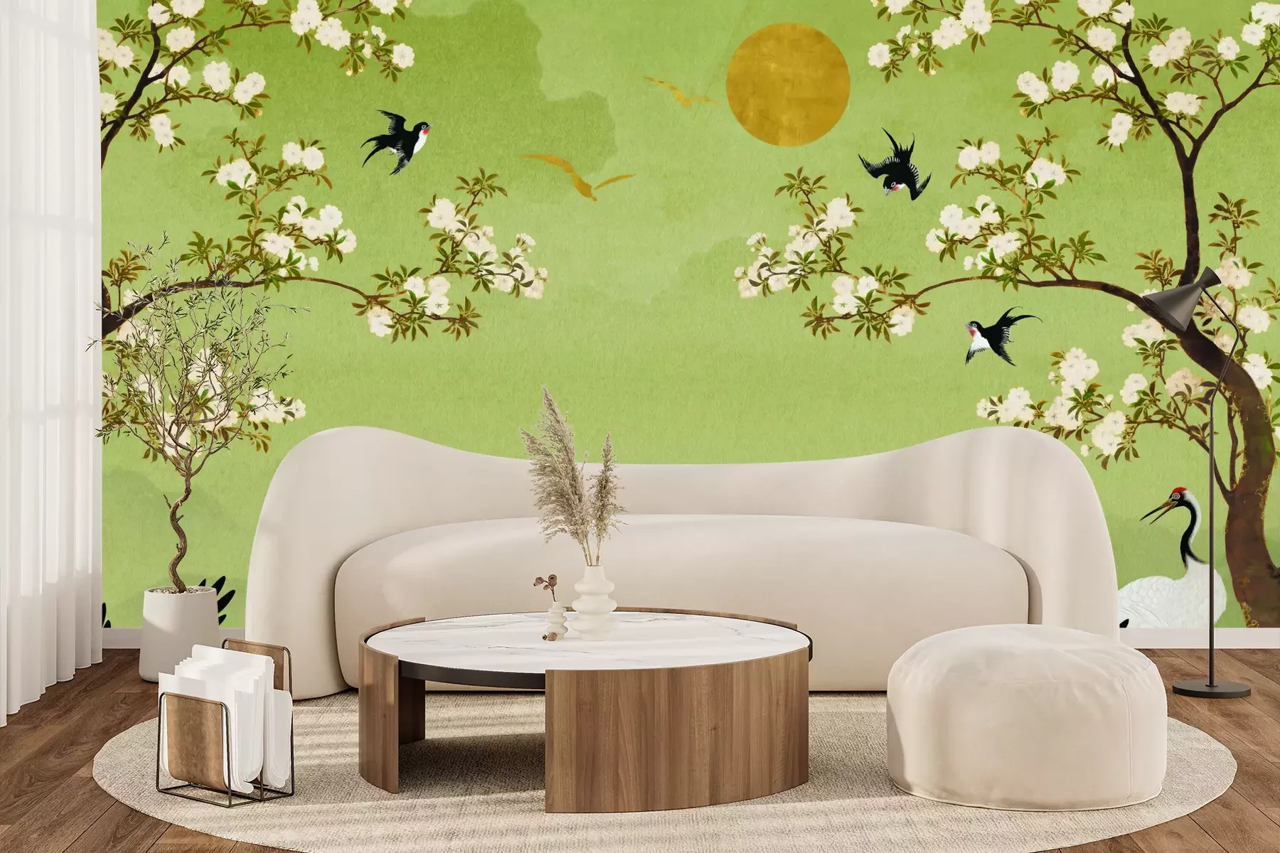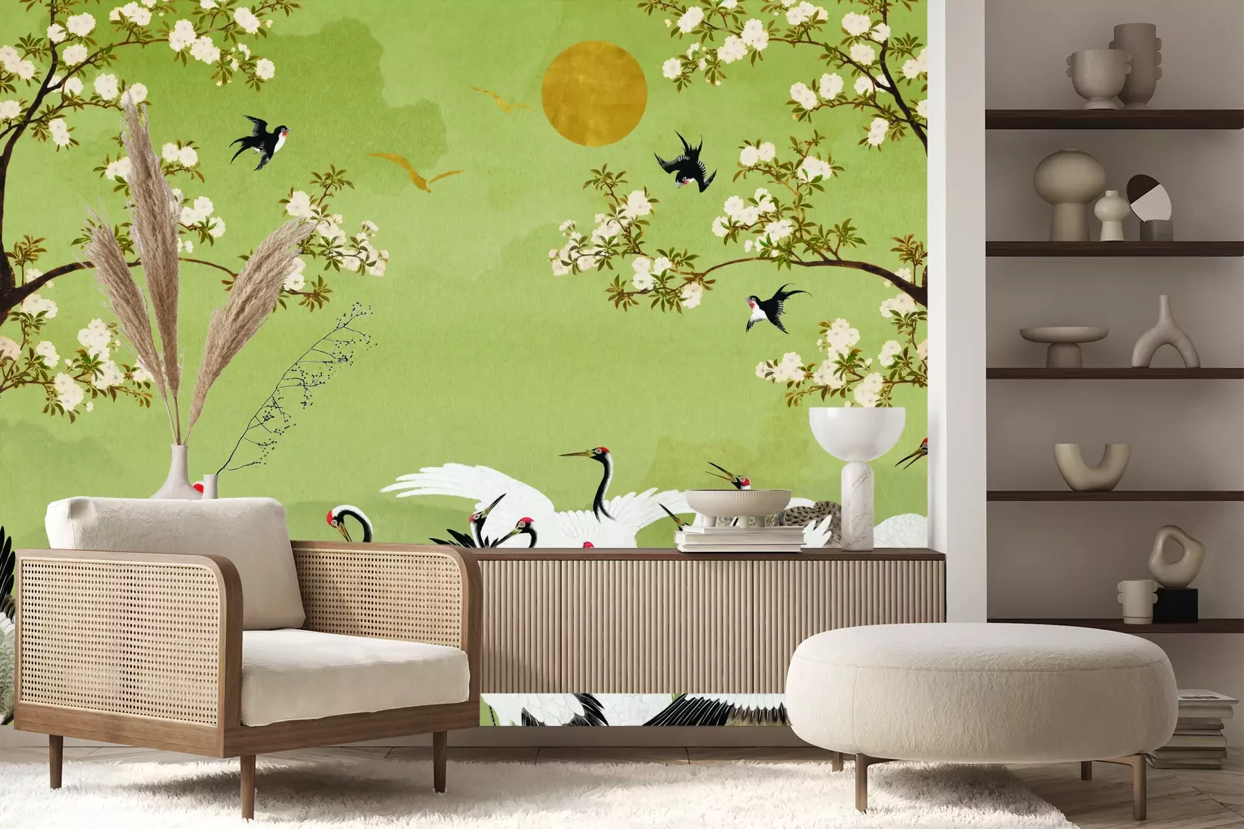 Het materiaal Standard is een hoogwaardig latexmateriaal met een glad, mat oppervlak. Dankzij de HP Latex-printtechnologie zijn de kleuren intens, duurzaam en UV-bestendig, waardoor het patroon jarenlang een onberispelijke uitstraling behoudt. Vervuilde oppervlakken kunnen voorzichtig worden afgeveegd met een droge doek. De maximale breedte van één baan bedraagt 95 cm of 105 cm – afhankelijk van de bestelde fotobehangbreedte. Bij grotere afmetingen wordt het patroon verdeeld over meerdere gelijkmatige banen. Het fotobehang wordt rand-aan-randaangebracht, wat vrijwel onzichtbare naden mogelijk maakt.