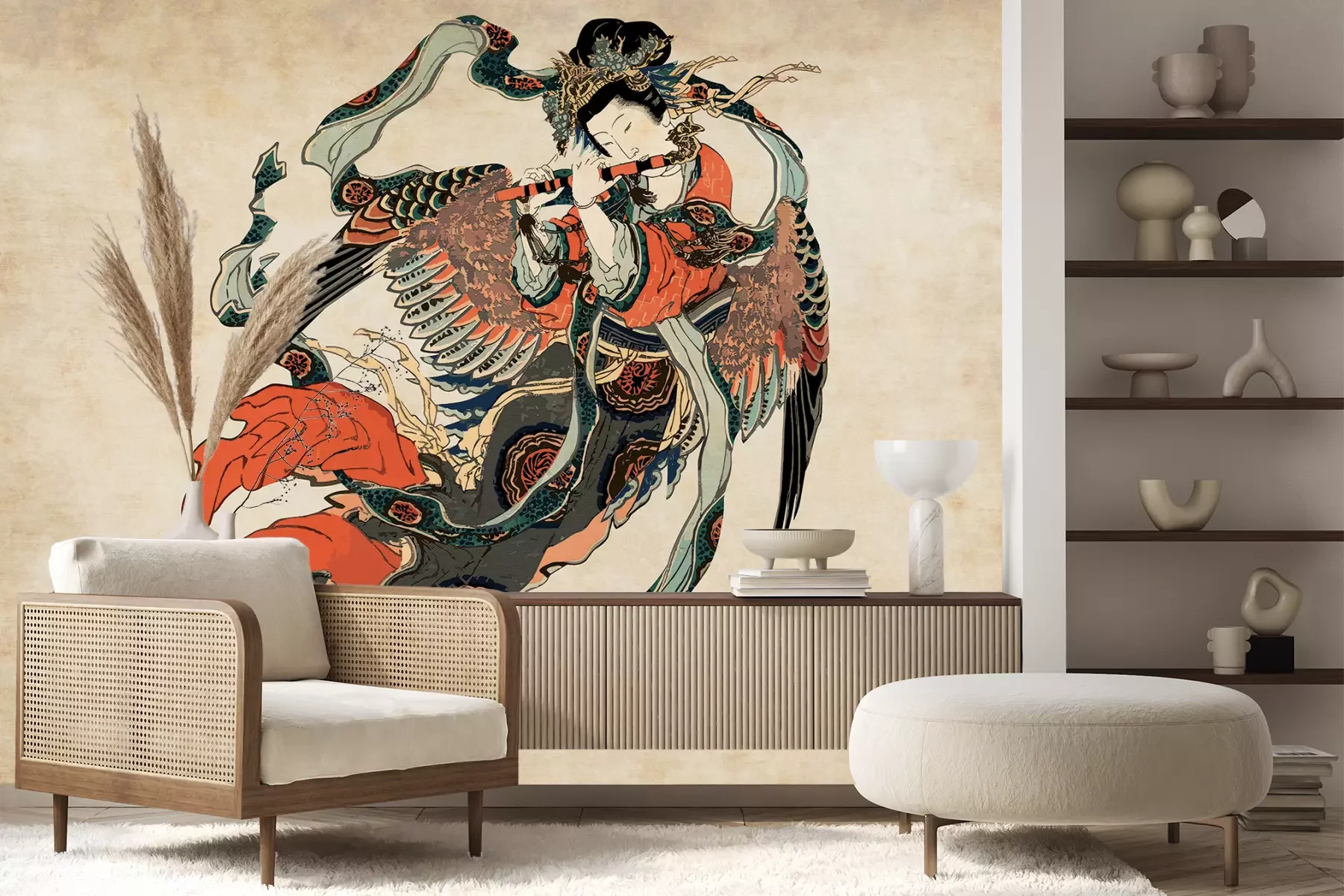 Het materiaal Premium+ is een gestructureerd vinyl op vlies met een gewicht van 255 g/m², dat kleine oneffenheden in de muur effectief camoufleert. De subtiele structuur van fijn zand geeft het oppervlak een exclusieve uitstraling, terwijl de halfmatte afwerking de diepte van de kleuren benadrukt. Het materiaal is dampdoorlatend, waardoor het ook in de keuken en badkamer kan worden gebruikt. De maximale breedte van één baan bedraagt 100 cm – bij grotere afmetingen wordt het fotobehang in meerdere gelijke banen verdeeld. De lijm wordt direct op de muur aangebracht en het behang wordt rand-aan-rand geplakt, wat zorgt voor een esthetisch resultaat zonder zichtbare naden. Het oppervlak kan gemakkelijk worden schoongemaakt door het voorzichtig af te nemen met een vochtige doek.