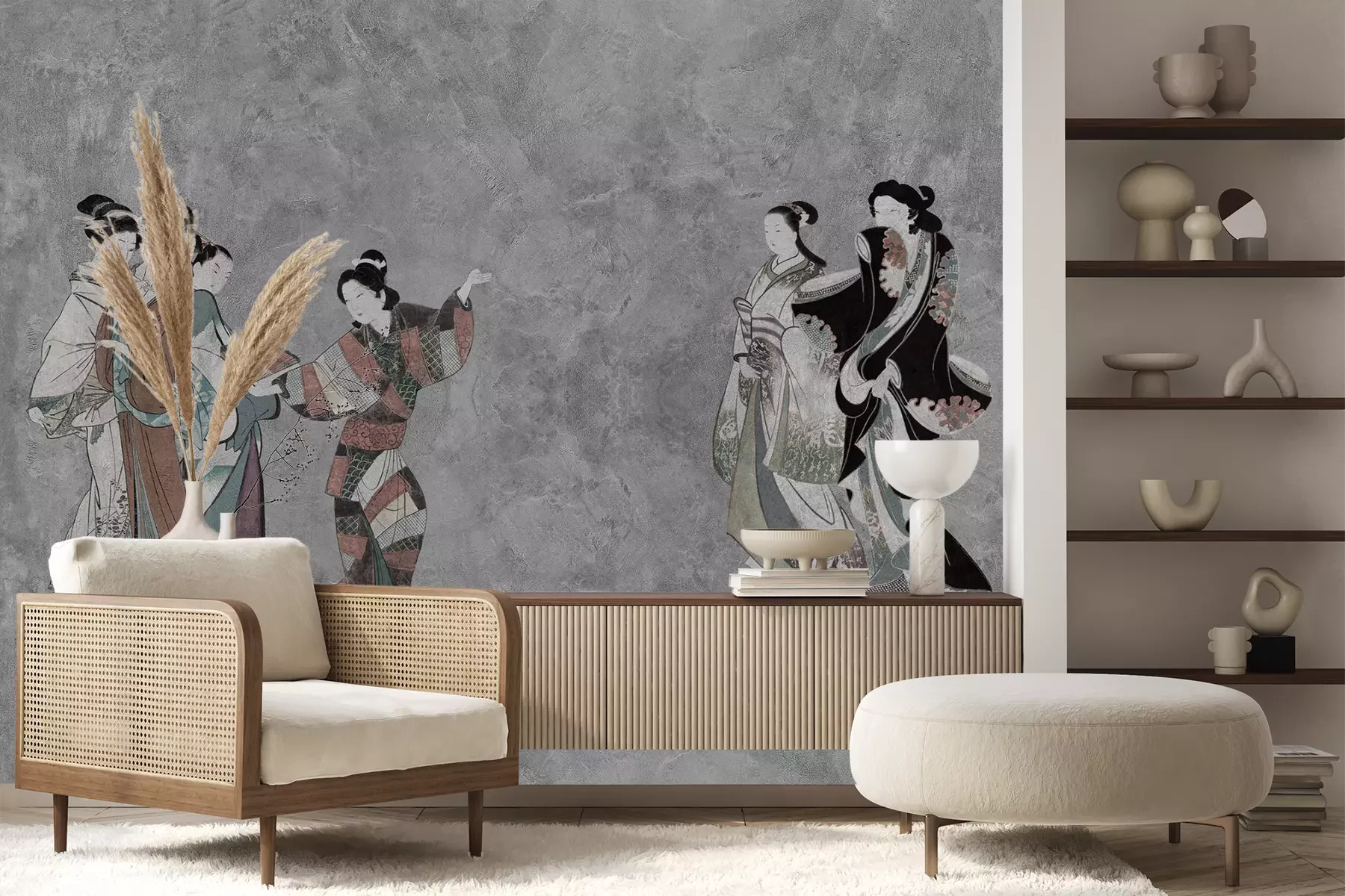 Het materiaal Premium+ is een gestructureerd vinyl op vlies met een gewicht van 255 g/m², dat kleine oneffenheden in de muur effectief camoufleert. De subtiele structuur van fijn zand geeft het oppervlak een exclusieve uitstraling, terwijl de halfmatte afwerking de diepte van de kleuren benadrukt. Het materiaal is dampdoorlatend, waardoor het ook in de keuken en badkamer kan worden gebruikt. De maximale breedte van één baan bedraagt 100 cm – bij grotere afmetingen wordt het fotobehang in meerdere gelijke banen verdeeld. De lijm wordt direct op de muur aangebracht en het behang wordt rand-aan-rand geplakt, wat zorgt voor een esthetisch resultaat zonder zichtbare naden. Het oppervlak kan gemakkelijk worden schoongemaakt door het voorzichtig af te nemen met een vochtige doek.