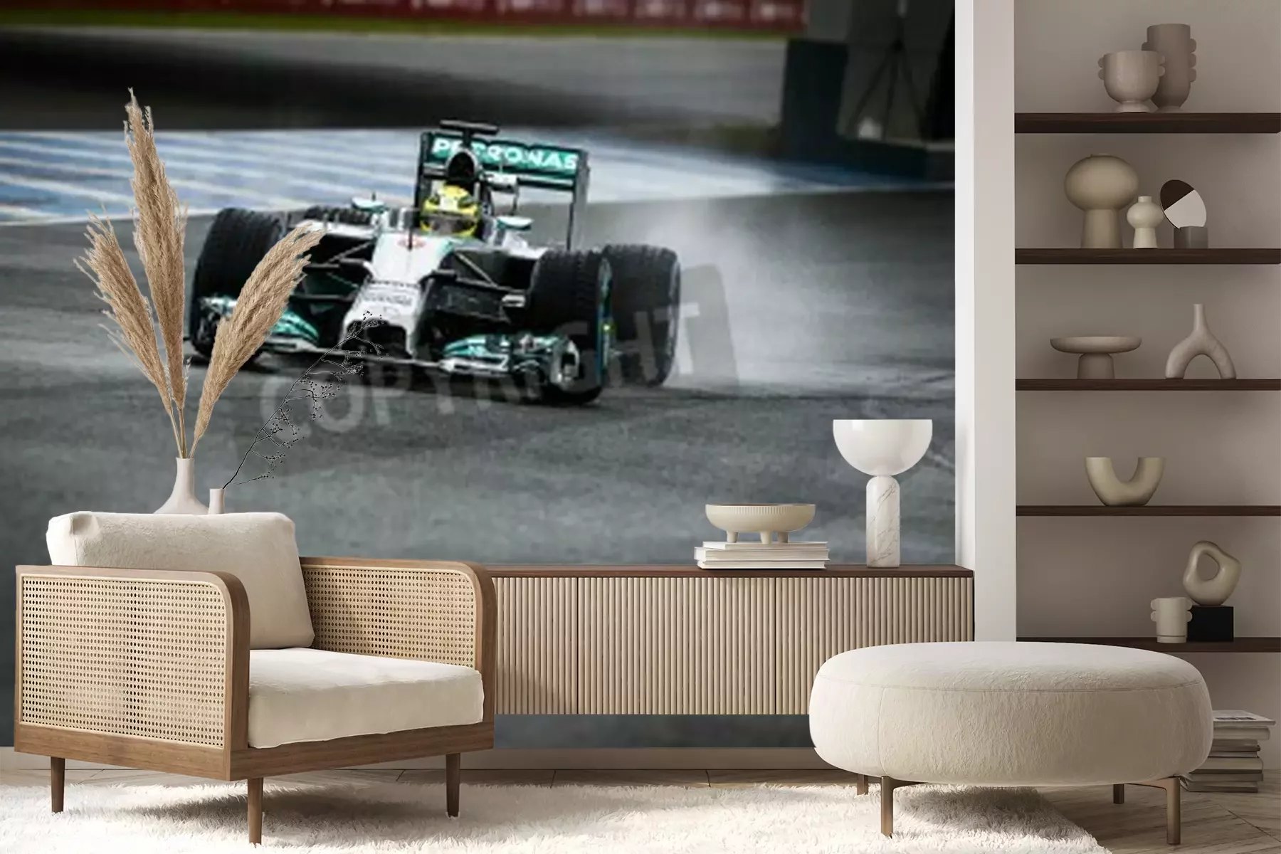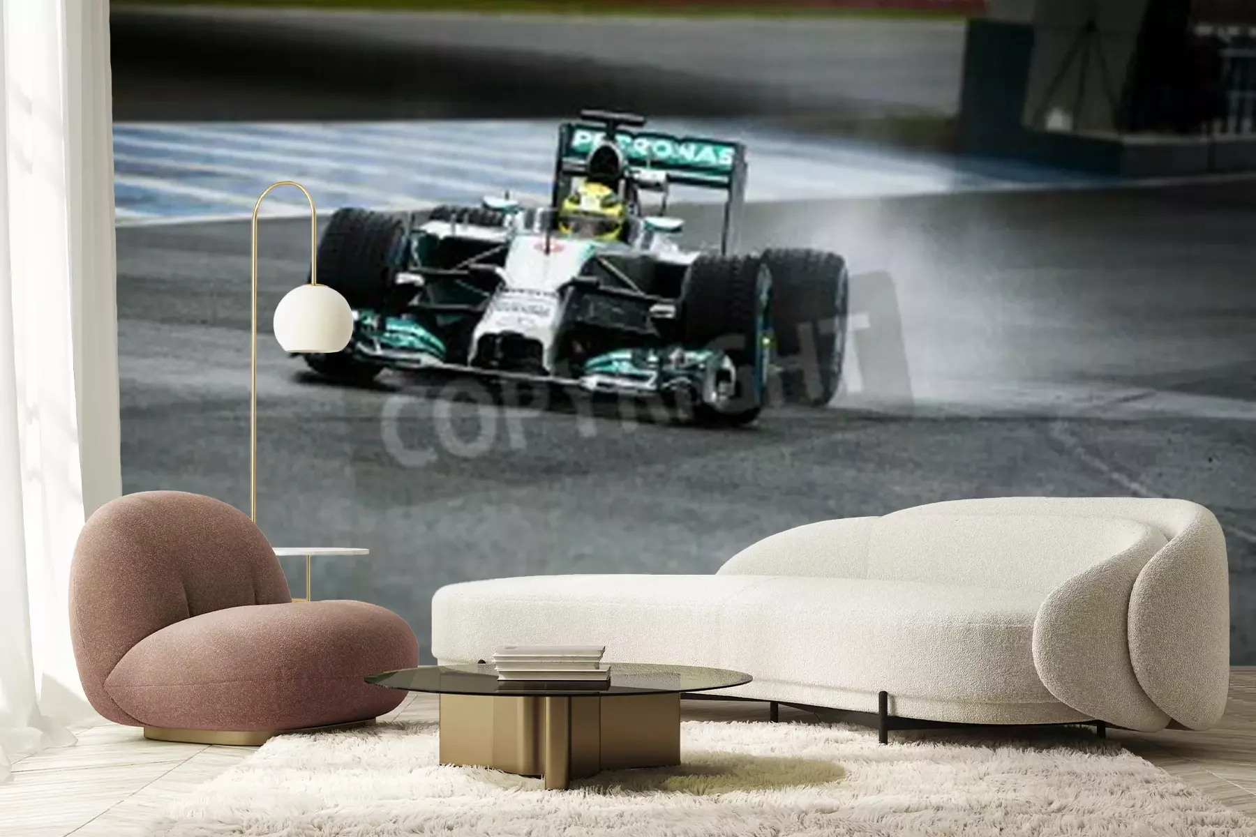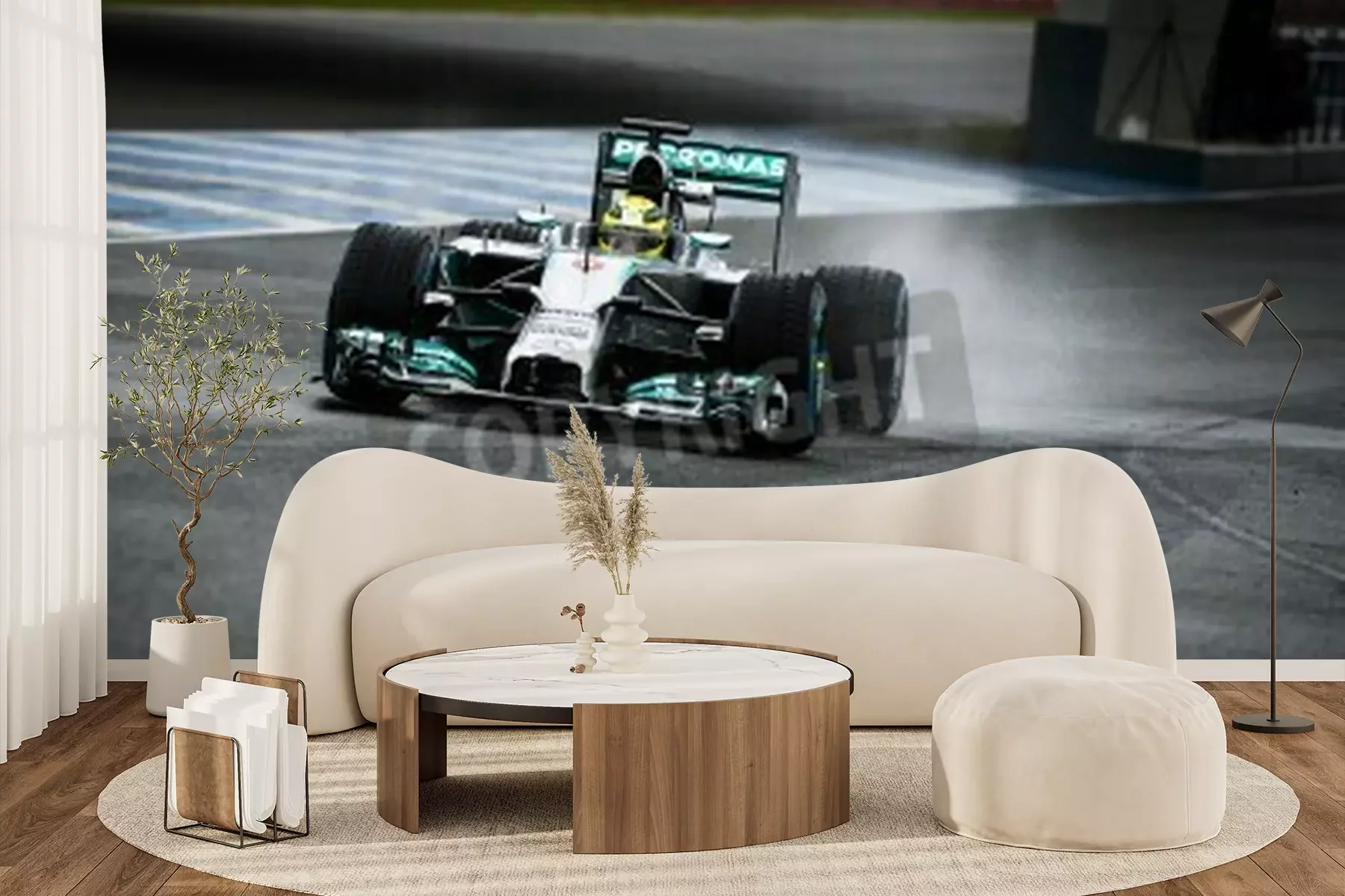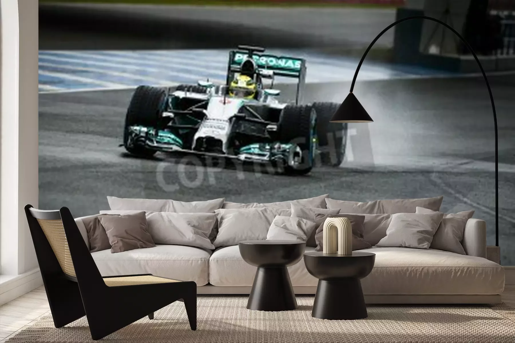 Fotobehang JEREZ, SPANJE - 31 januari: Nico Rosberg Mercedes W05 testen zijn nieuwe F1-auto op de eerste test op het circuit van Jerez in Jerez, Andalusië, Spanje op 31 januari 2014