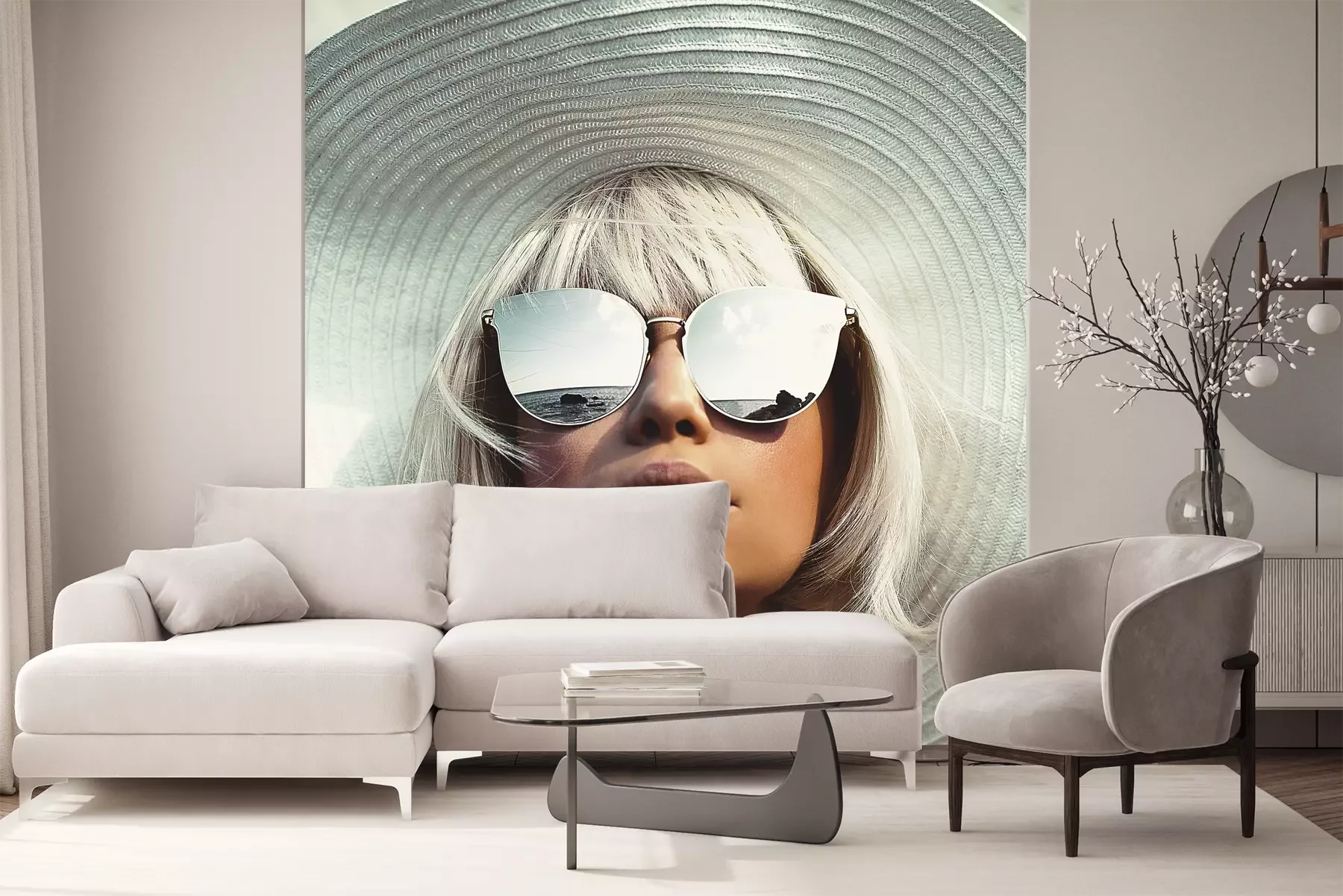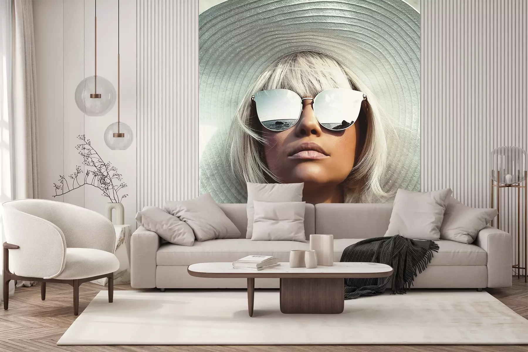 Het materiaal Premium+ is een gestructureerd vinyl op vlies met een gewicht van 255 g/m², dat kleine oneffenheden in de muur effectief camoufleert. De subtiele structuur van fijn zand geeft het oppervlak een exclusieve uitstraling, terwijl de halfmatte afwerking de diepte van de kleuren benadrukt. Het materiaal is dampdoorlatend, waardoor het ook in de keuken en badkamer kan worden gebruikt. De maximale breedte van één baan bedraagt 100 cm – bij grotere afmetingen wordt het fotobehang in meerdere gelijke banen verdeeld. De lijm wordt direct op de muur aangebracht en het behang wordt rand-aan-rand geplakt, wat zorgt voor een esthetisch resultaat zonder zichtbare naden. Het oppervlak kan gemakkelijk worden schoongemaakt door het voorzichtig af te nemen met een vochtige doek.